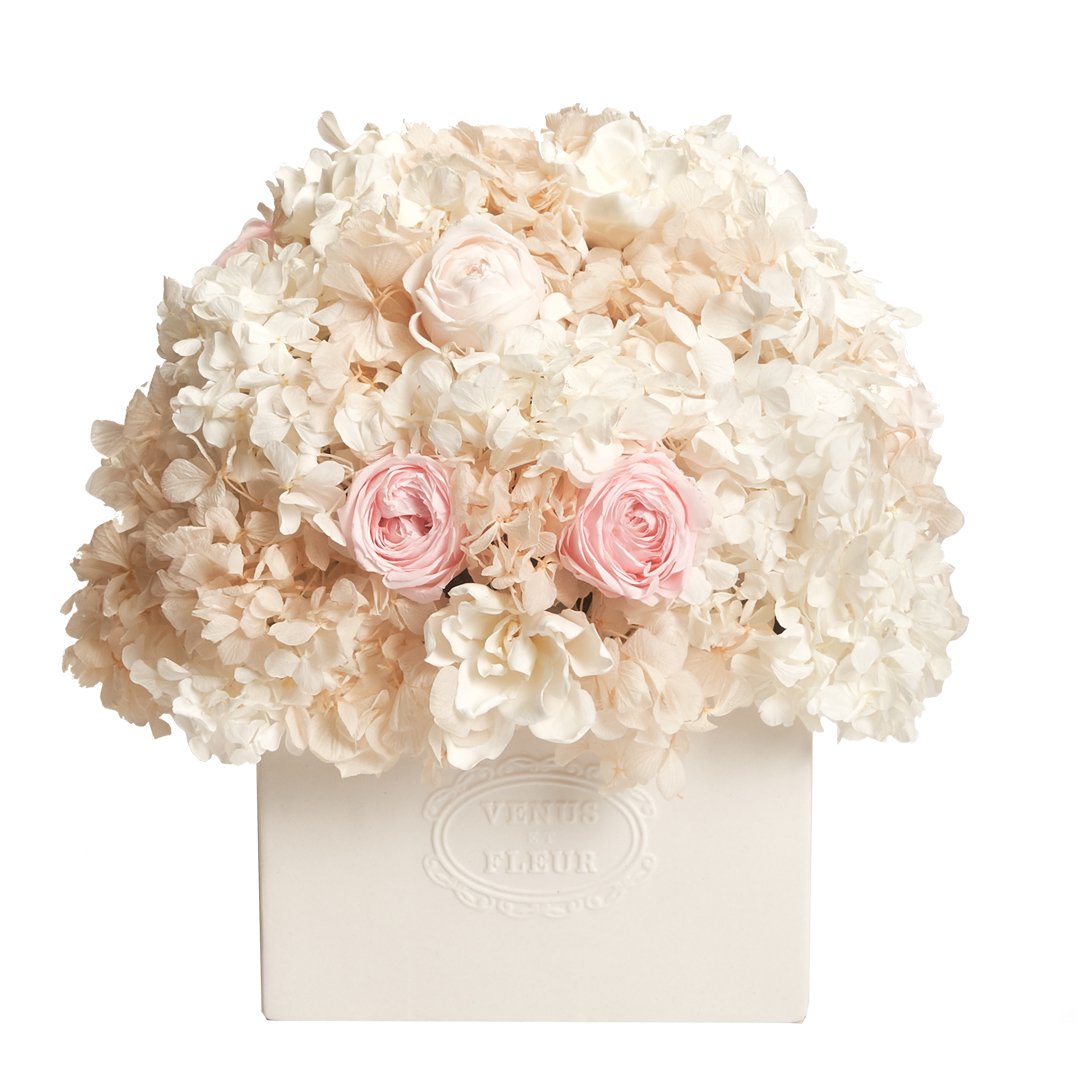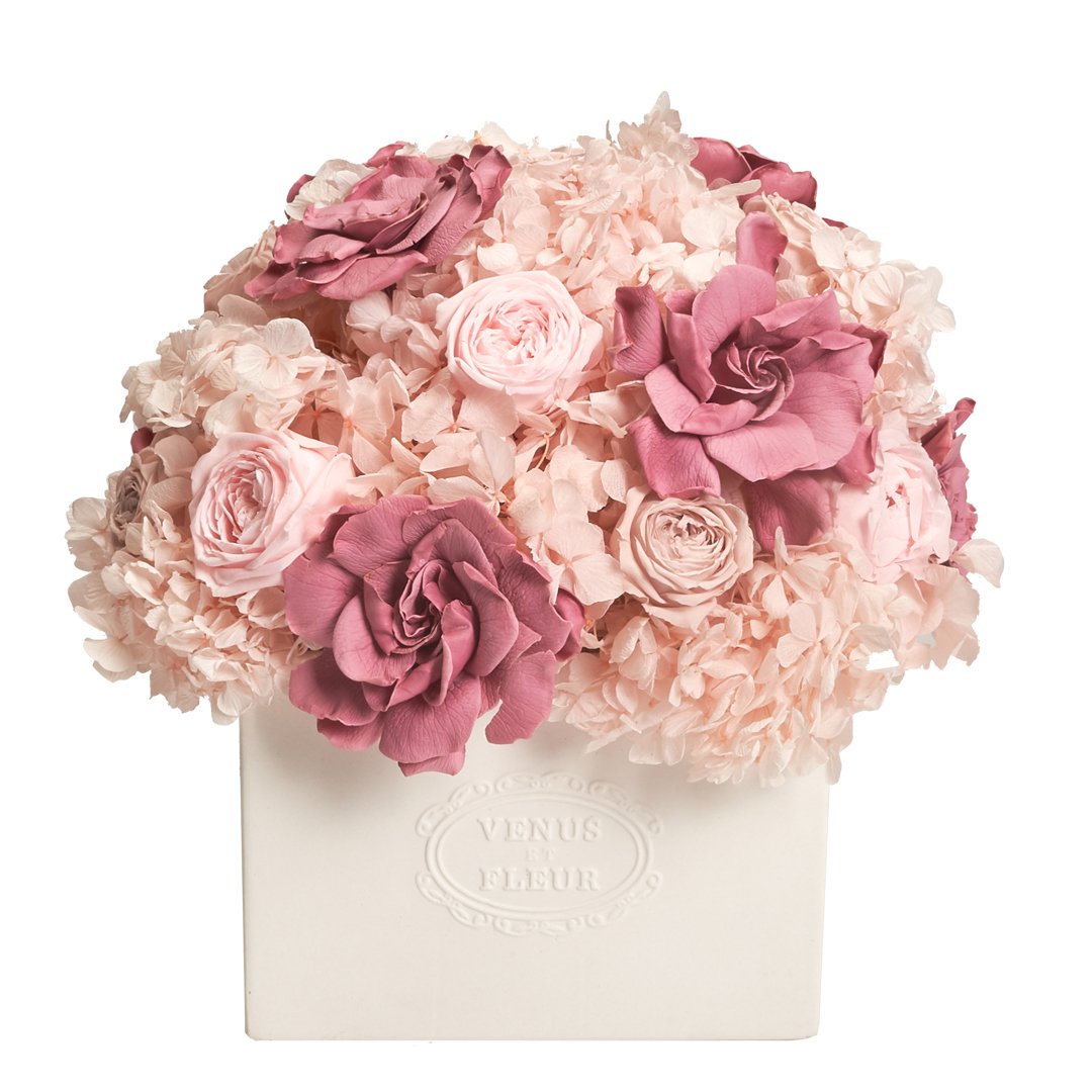 Bursting with bold hues and vigor, the Allura Vase energizes any room with its vivid and abundant mixed blooms. Featuring a mix of roses, hydrangea and gardenia, every arrangement is meticulously arranged by our skilled floral designer into our exclusive handcrafted porcelain vases.