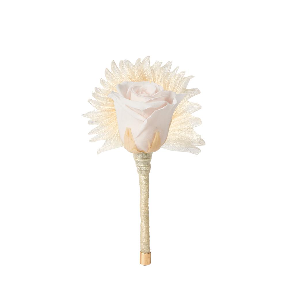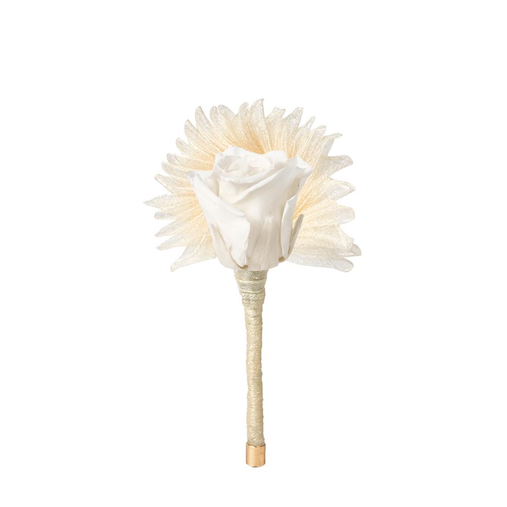 Our elegant boutonnieres feature a stunning Eternity Rose set against a starburst of silk. Each is an elevated version of the classic wedding accessory that will last long after your monumental occasion has passed, serving as a a gorgeous reminder of your everlasting adoration.