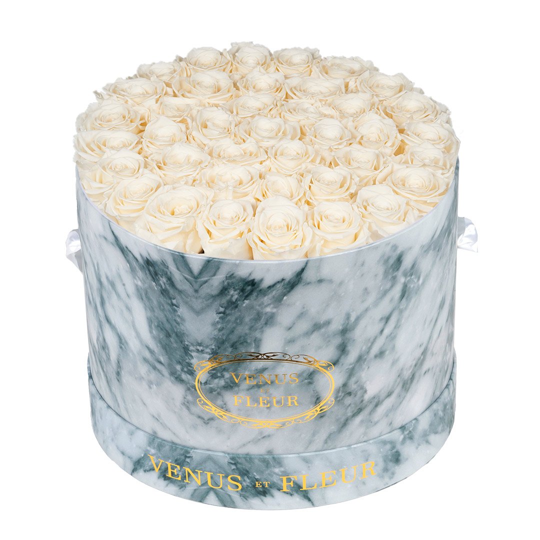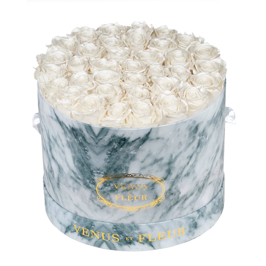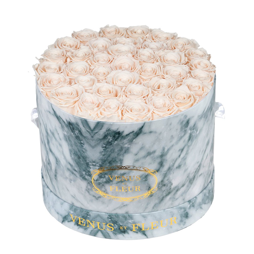 Our luxurious Large Round arrangements are comprised of 39-52 gorgeous Eternity Roses set in Parisian hat box-inspired vases. The classic arrangements will elevate any space with grace and majesty. Our beautiful Grandir collection features a subtle embossed texture in ivory and honors our fifth anniversary. Our marble collection has a legacy of sophistication edging back generations and will be sure to elevate your space.