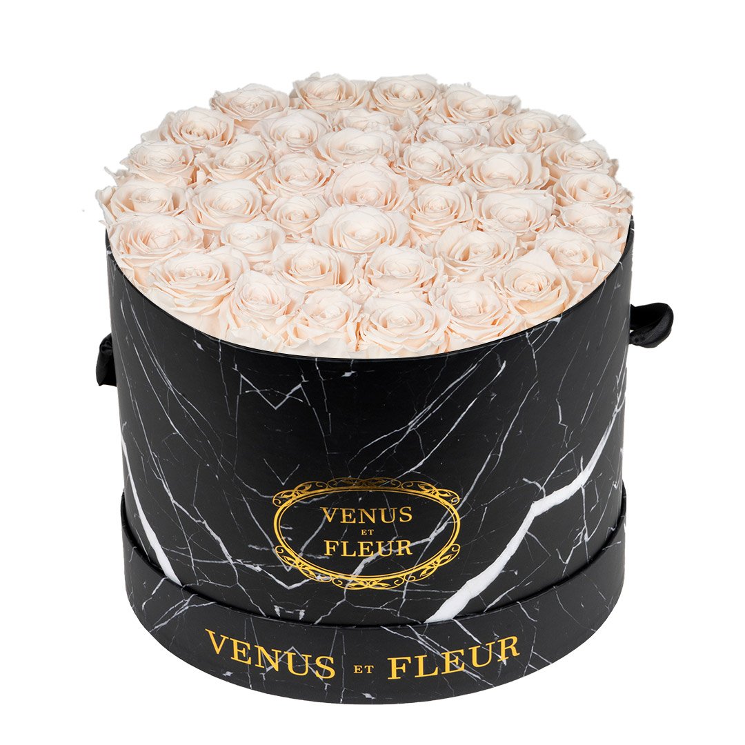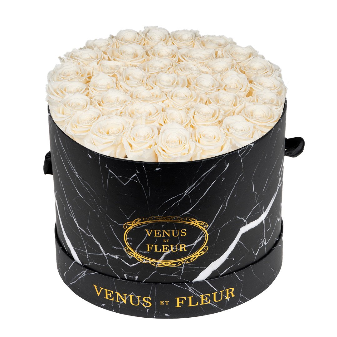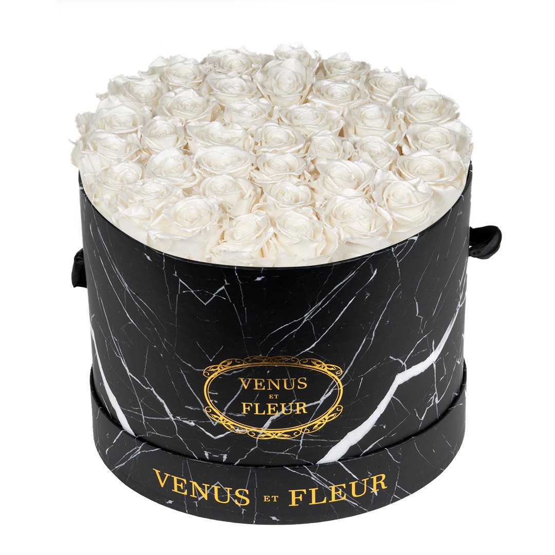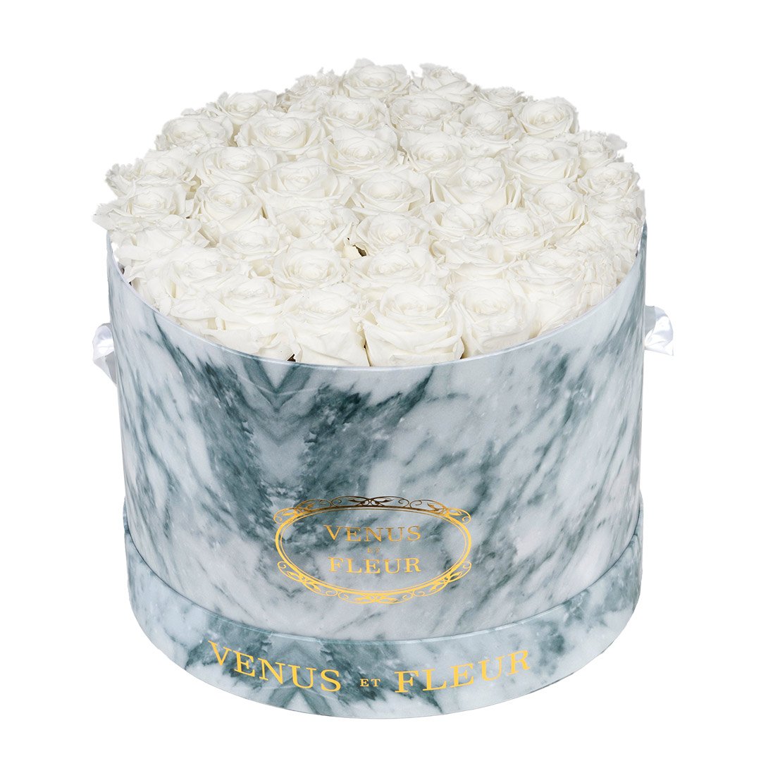 Our luxurious Large Round arrangements are comprised of 39-52 gorgeous Eternity Roses set in Parisian hat box-inspired vases. The classic arrangements will elevate any space with grace and majesty. Our beautiful Grandir collection features a subtle embossed texture in ivory and honors our fifth anniversary. Our marble collection has a legacy of sophistication edging back generations and will be sure to elevate your space.
