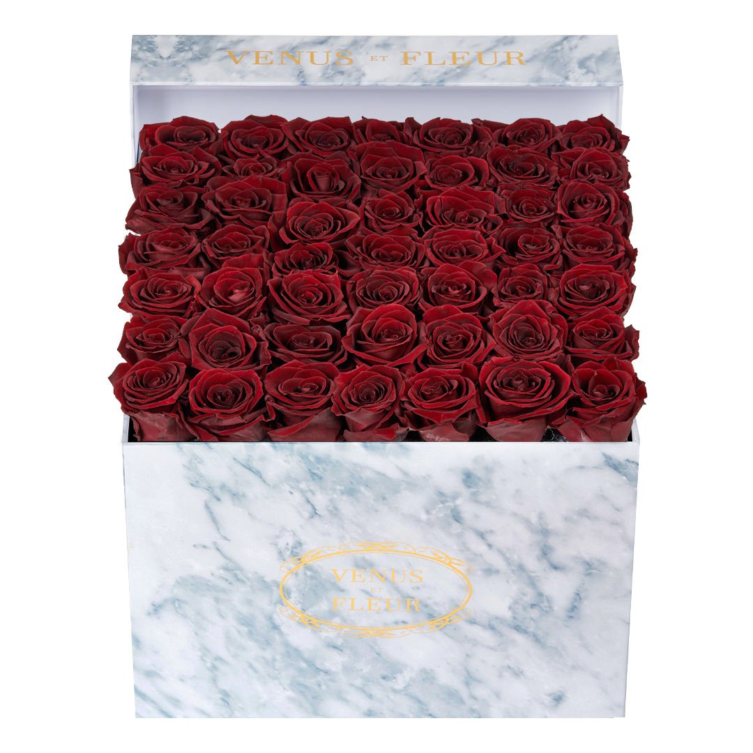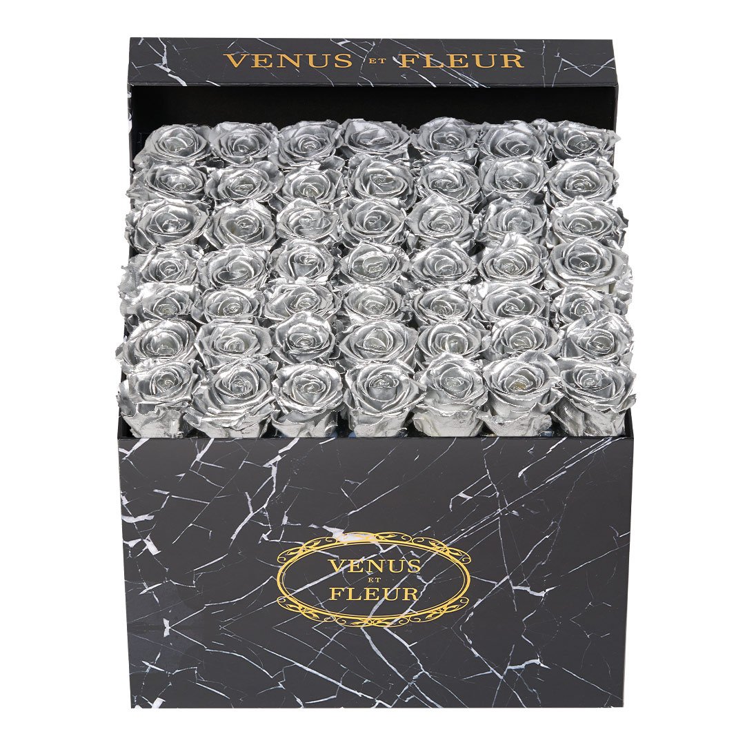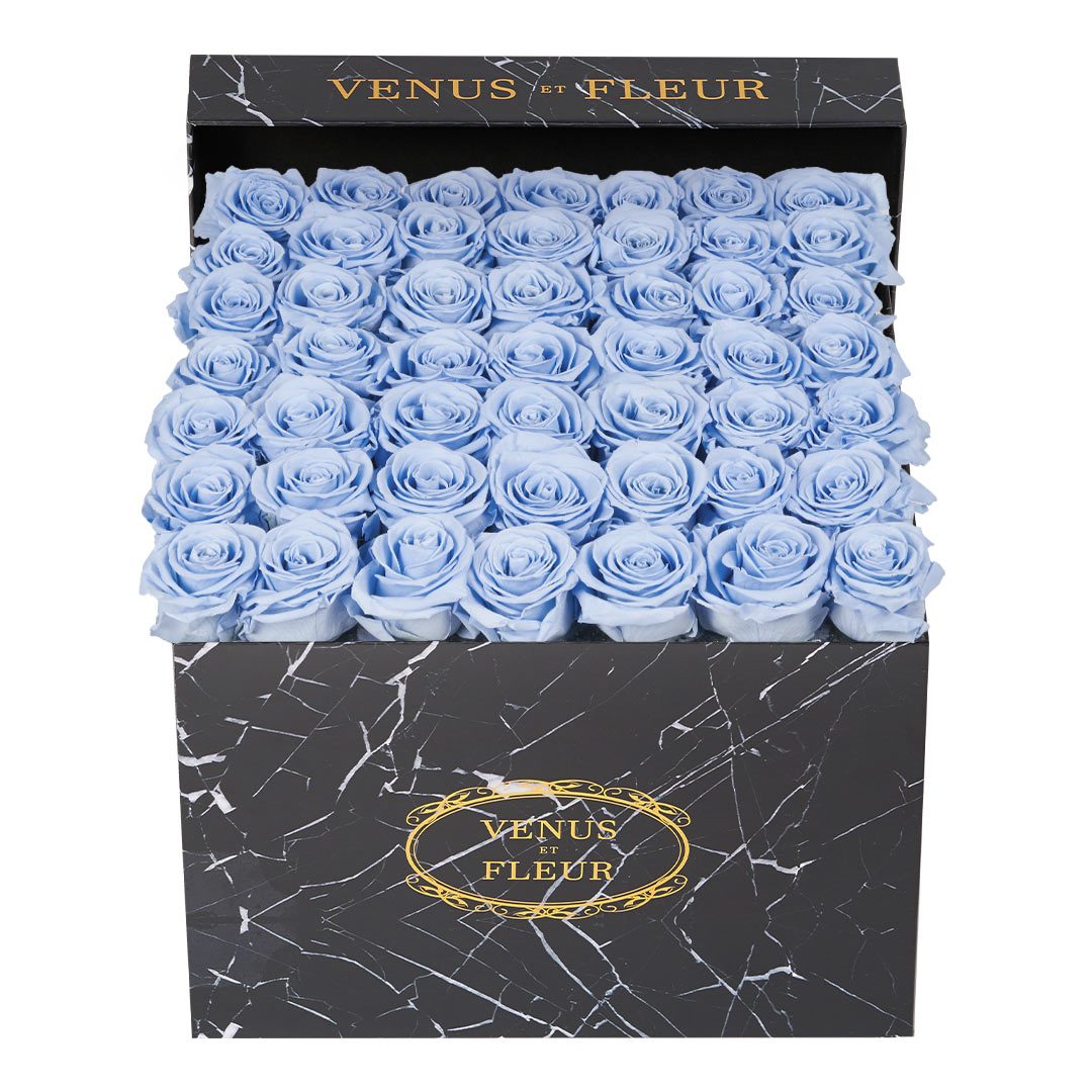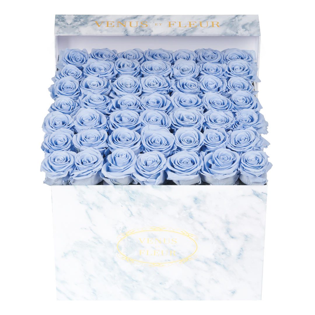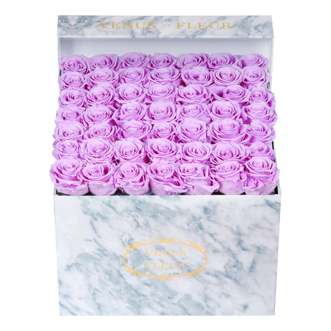 Our timeless Large Square arrangements are comprised of 42-49 exquisite Eternity Roses set in elegant, tremendous square vases that will introduce an element of luxury to any space. Our beautiful Grandir collection features a subtle embossed texture in ivory and honors our fifth anniversary. Our marble collection has a legacy of sophistication edging back generations and will be sure to elevate your space.