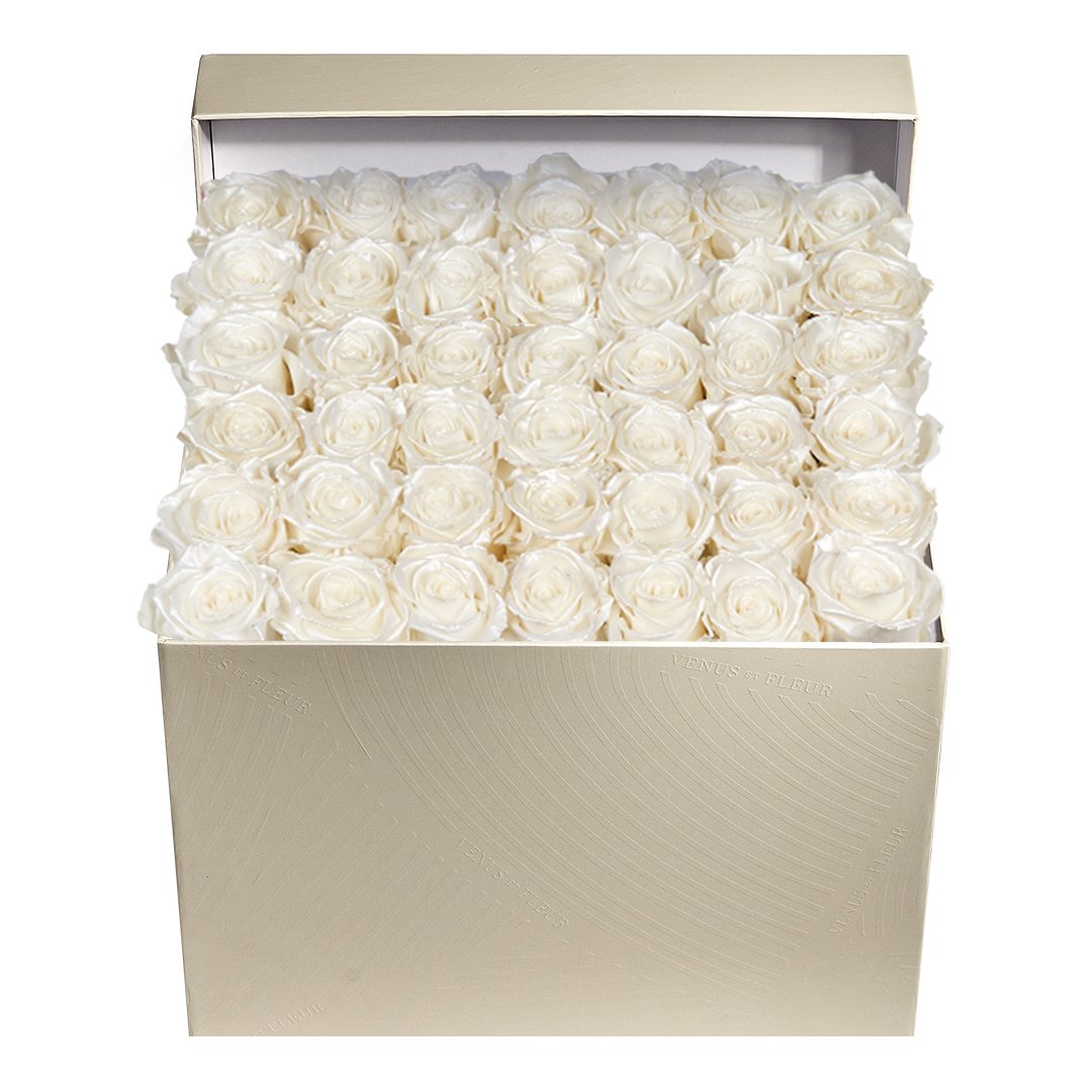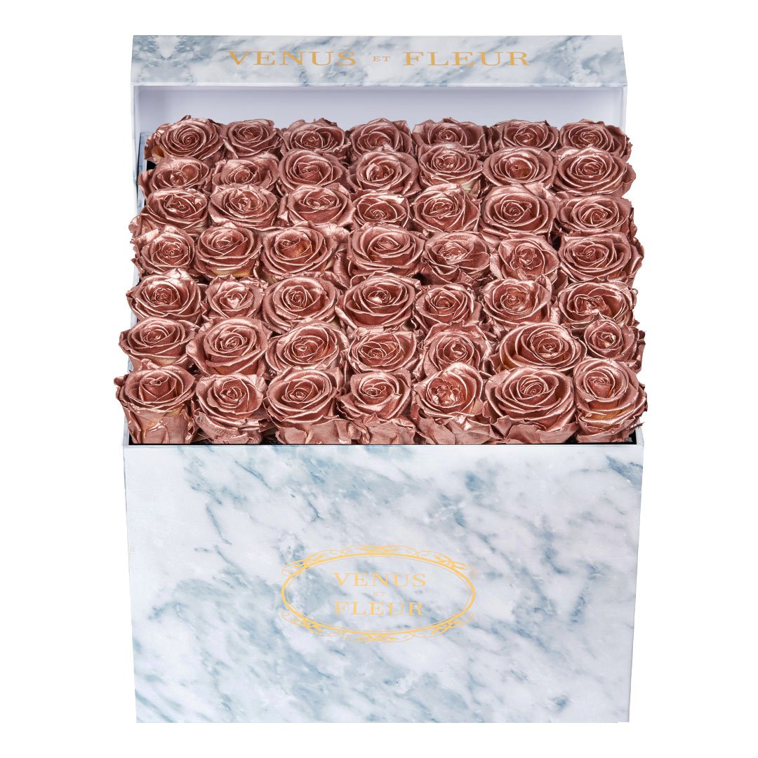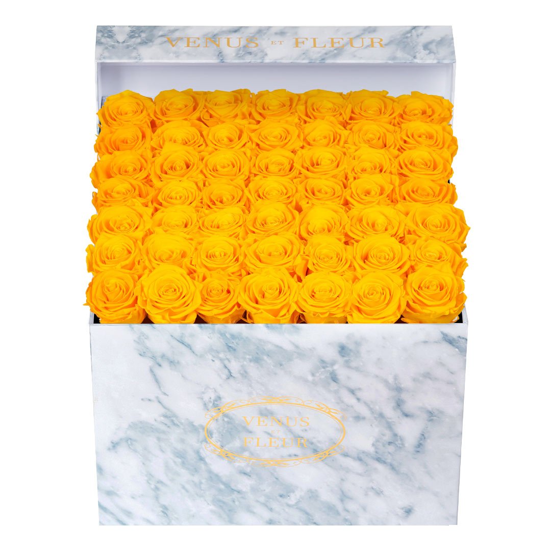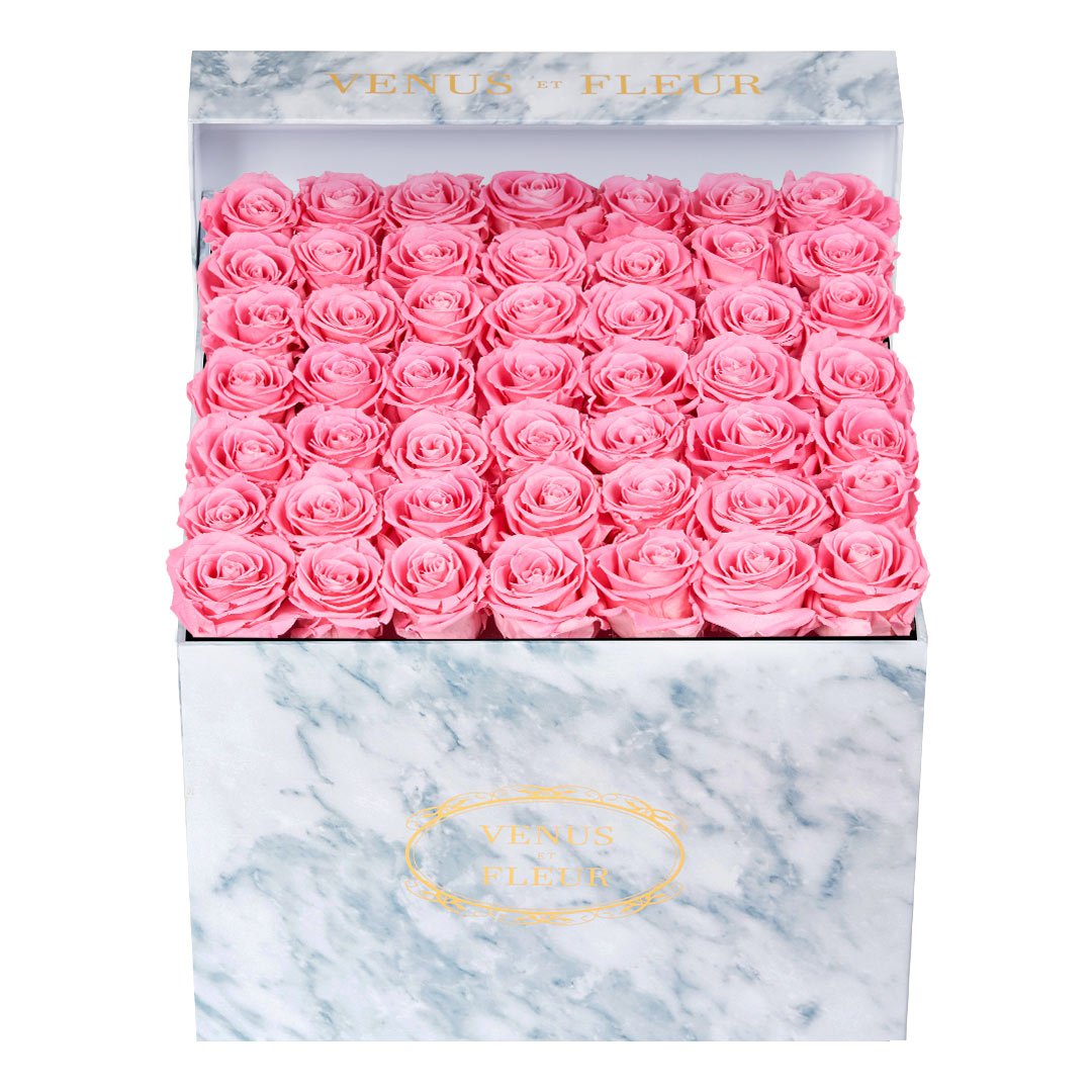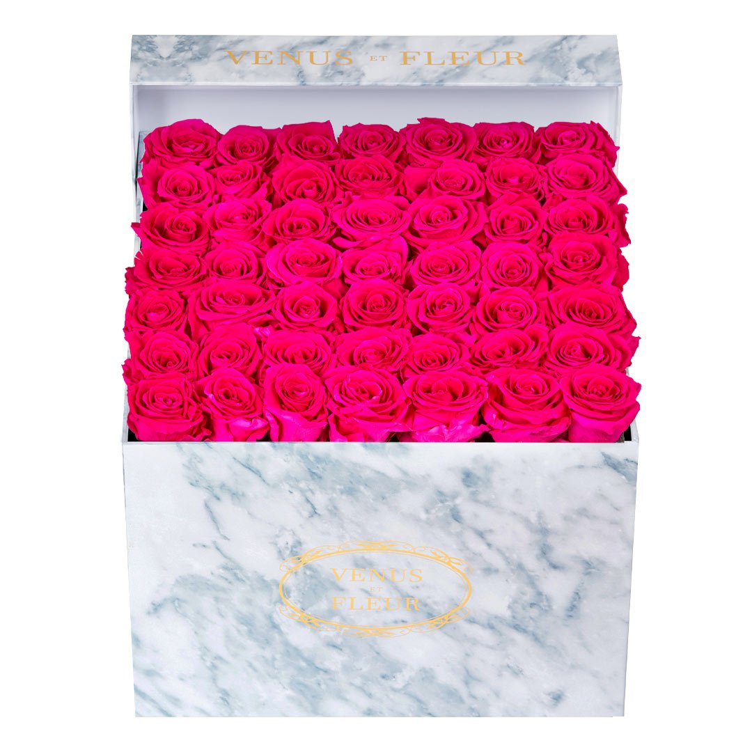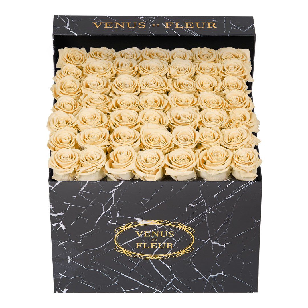 Our timeless Large Square arrangements are comprised of 42-49 exquisite Eternity Roses set in elegant, tremendous square vases that will introduce an element of luxury to any space. Our beautiful Grandir collection features a subtle embossed texture in ivory and honors our fifth anniversary. Our marble collection has a legacy of sophistication edging back generations and will be sure to elevate your space.
