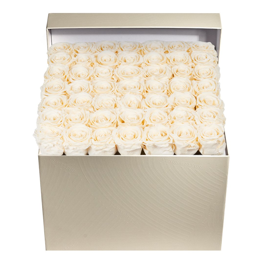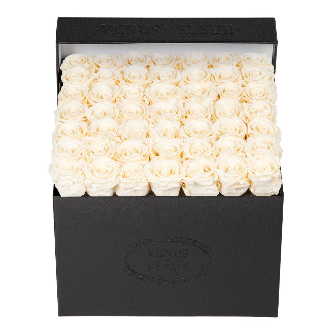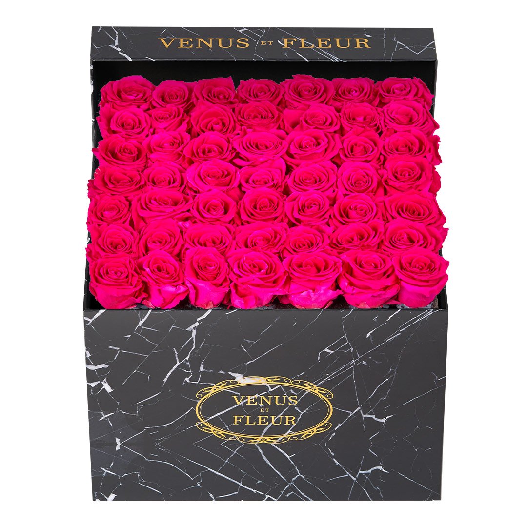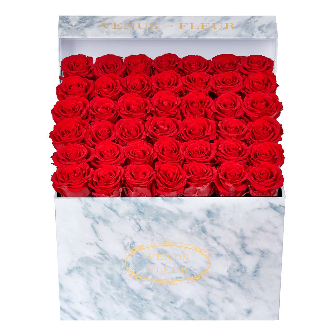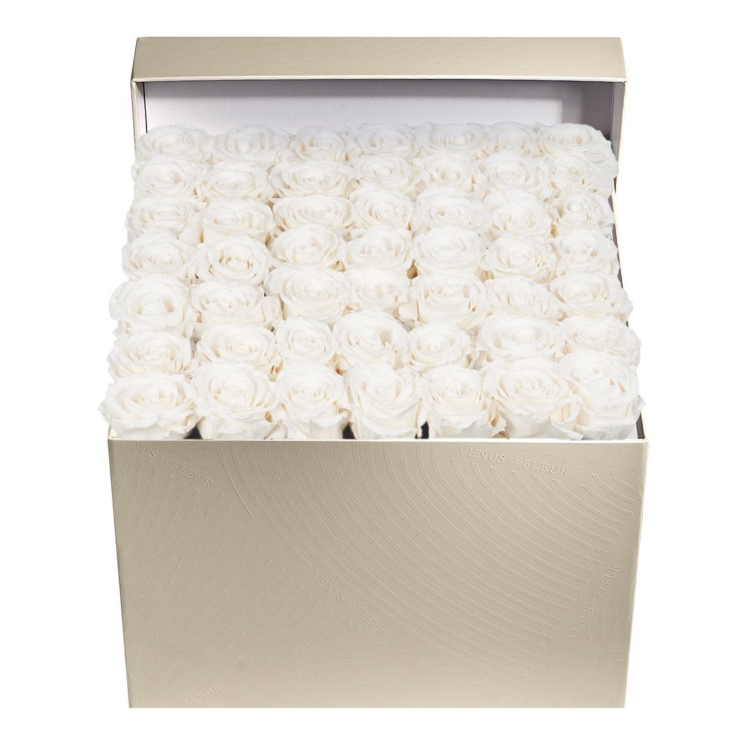 Our timeless Large Square arrangements are comprised of 42-49 exquisite Eternity Roses set in elegant, tremendous square vases that will introduce an element of luxury to any space. Our beautiful Grandir collection features a subtle embossed texture in ivory and honors our fifth anniversary. Our marble collection has a legacy of sophistication edging back generations and will be sure to elevate your space.