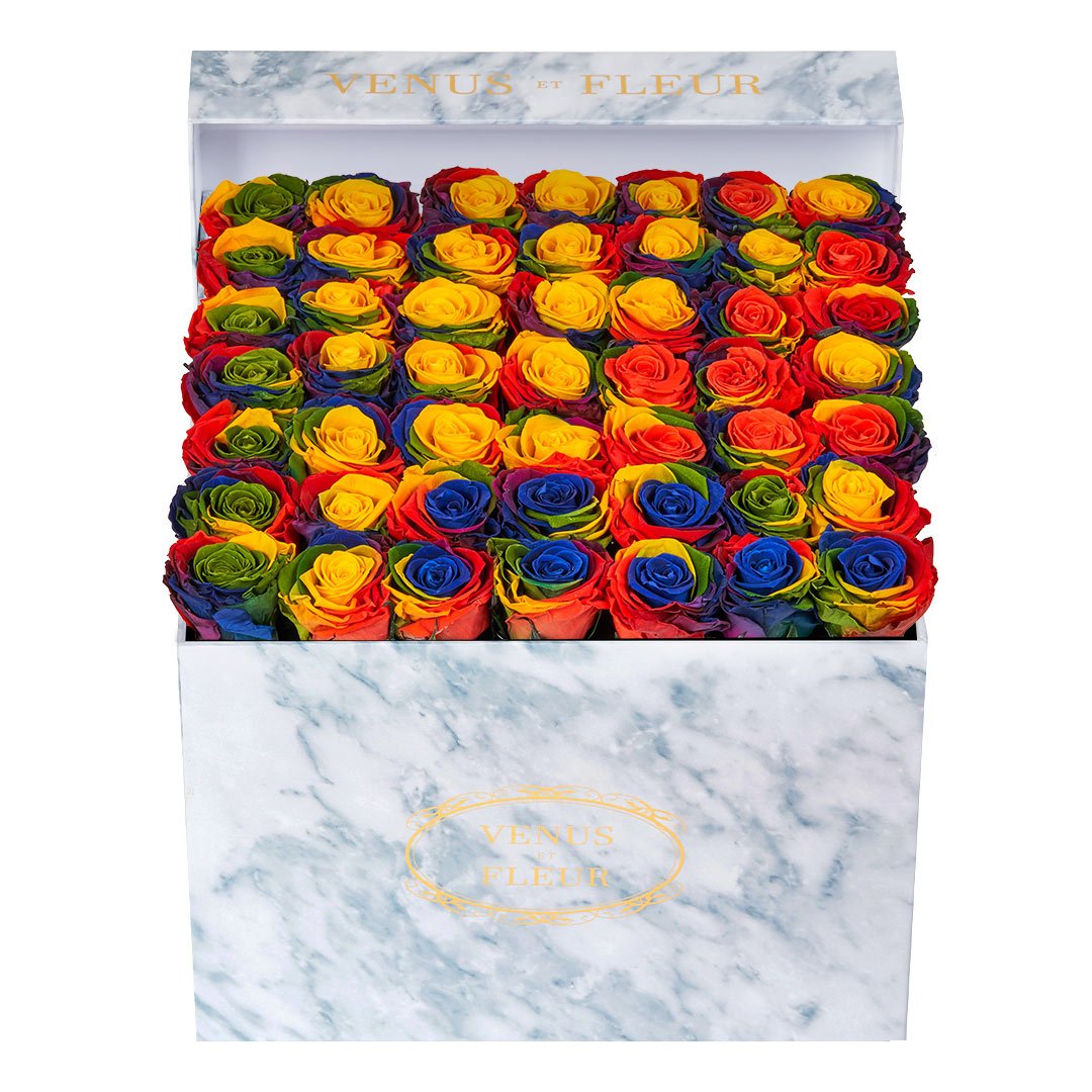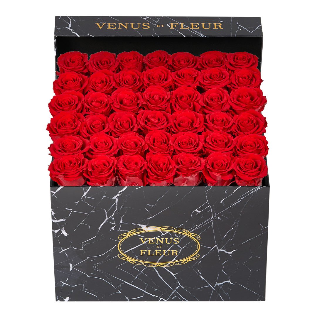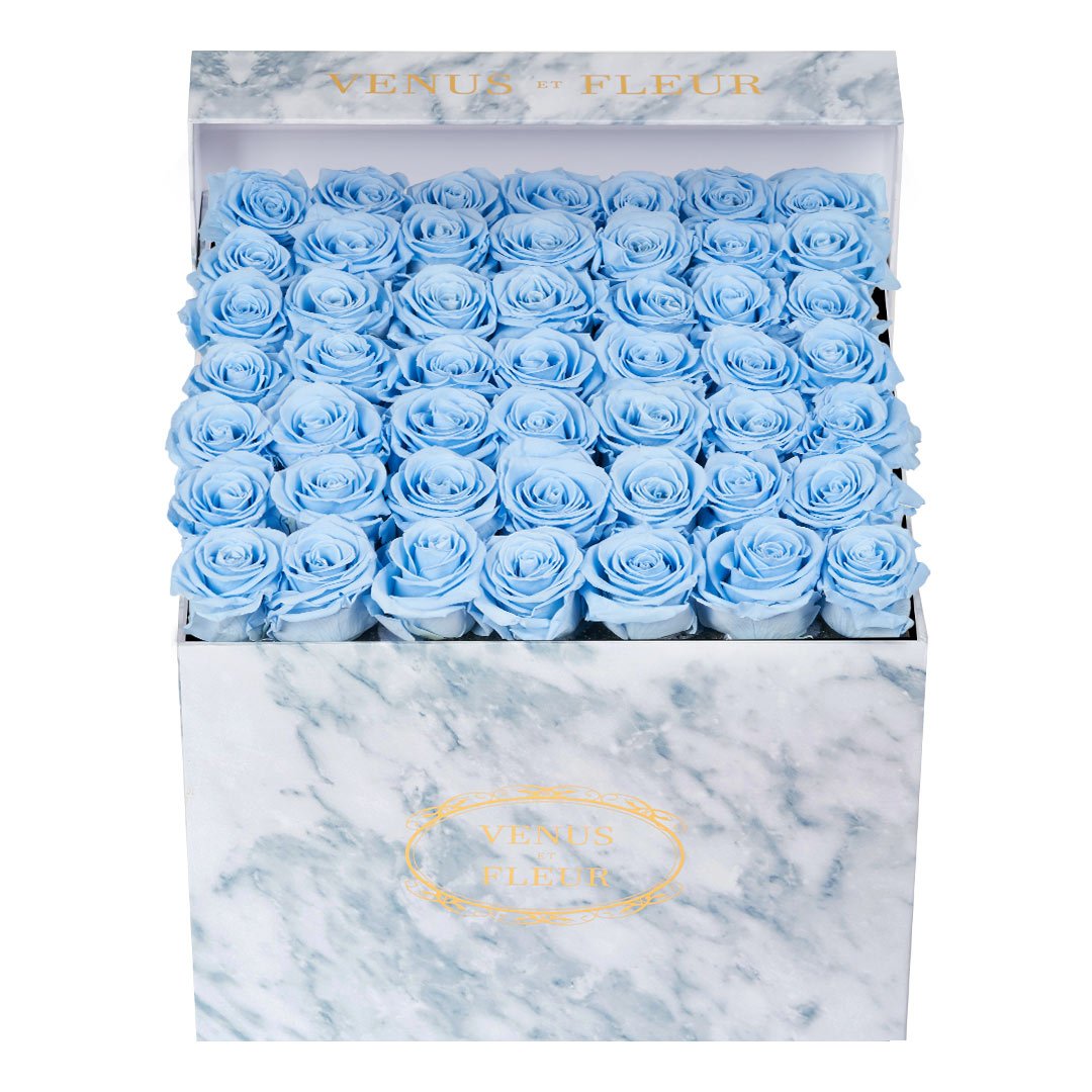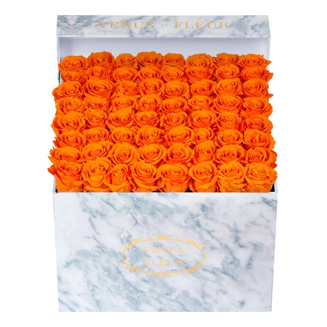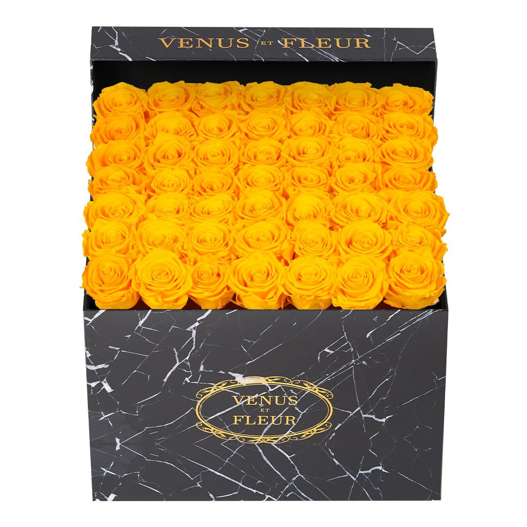 Our timeless Large Square arrangements are comprised of 42-49 exquisite Eternity Roses set in elegant, tremendous square vases that will introduce an element of luxury to any space. Our beautiful Grandir collection features a subtle embossed texture in ivory and honors our fifth anniversary. Our marble collection has a legacy of sophistication edging back generations and will be sure to elevate your space.