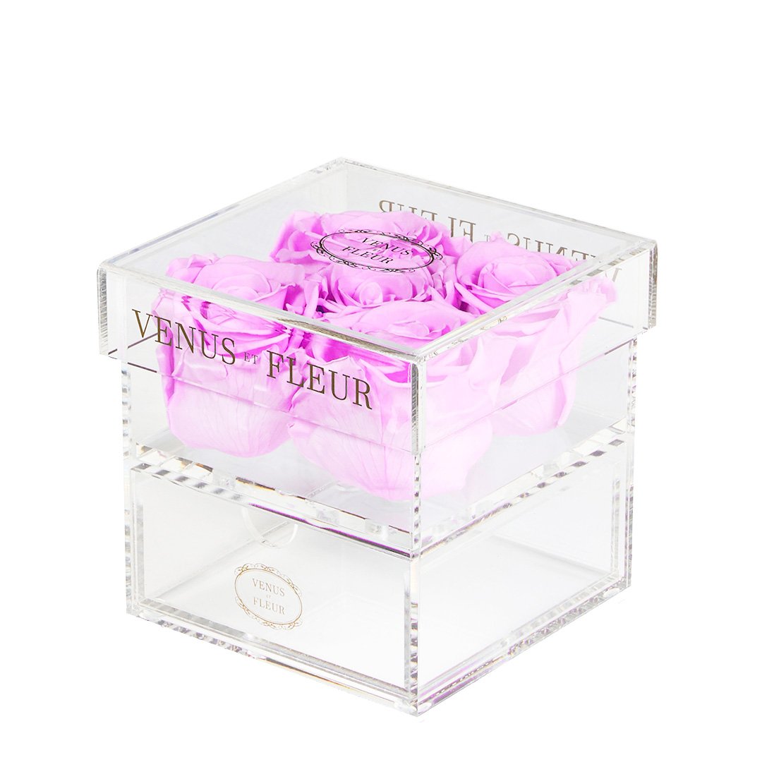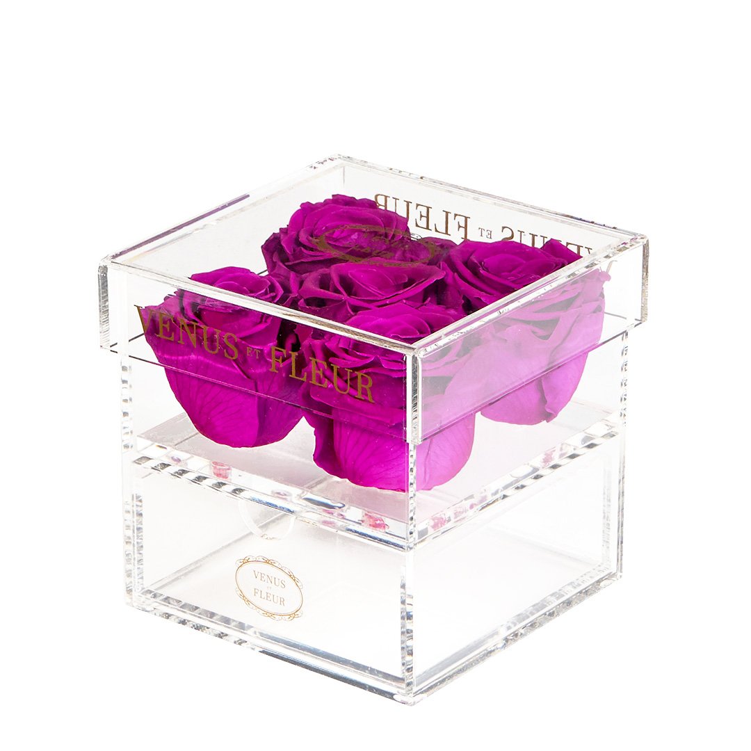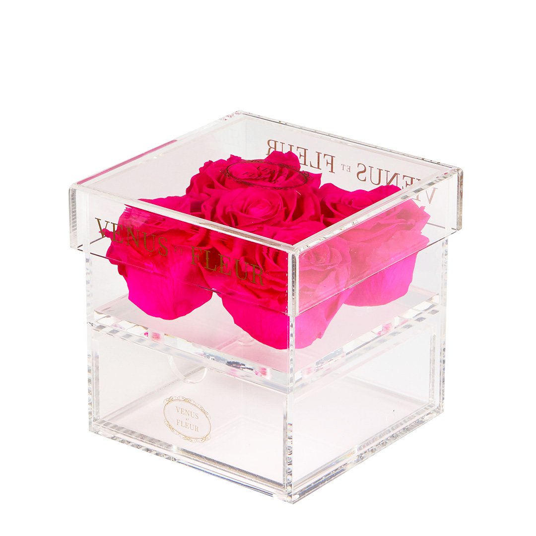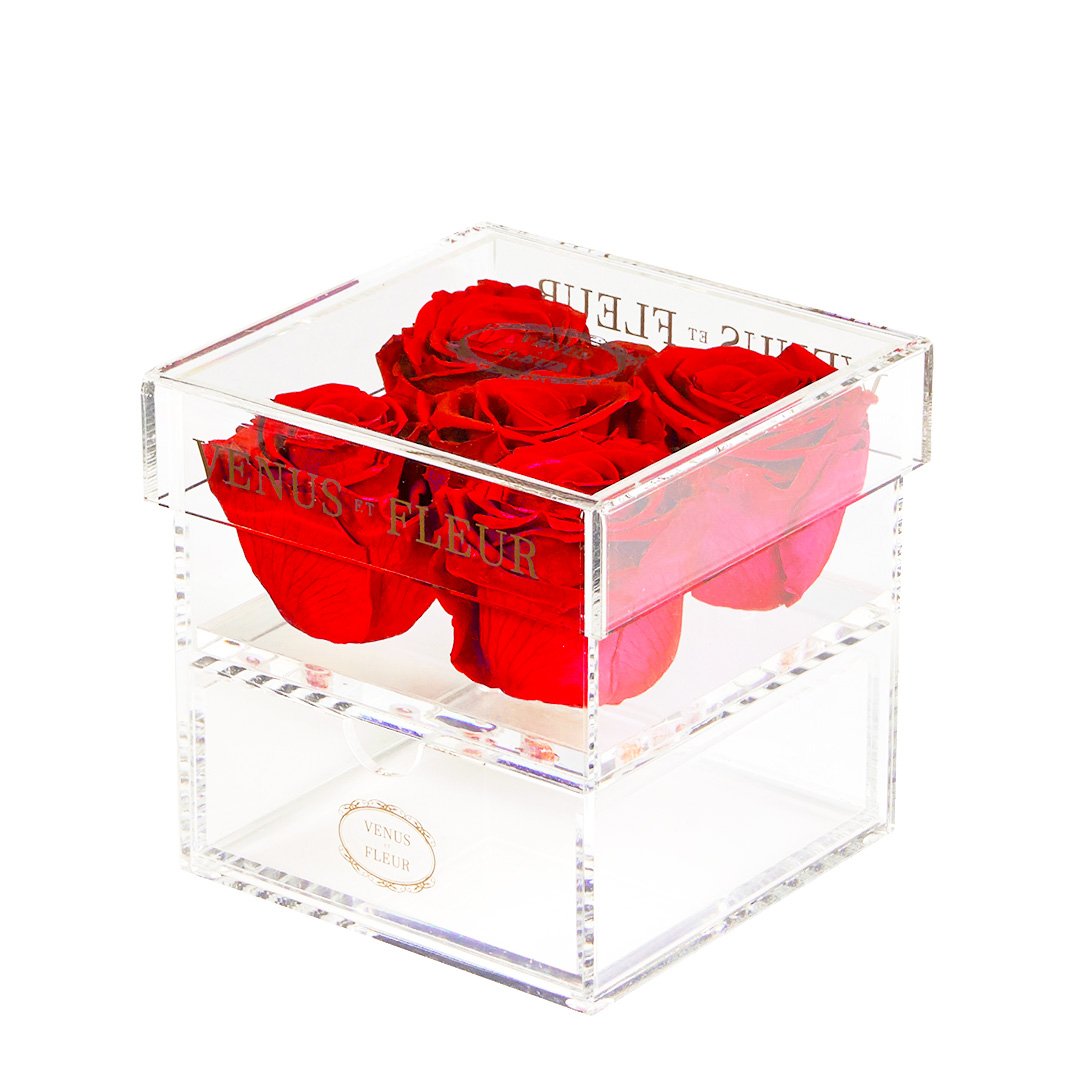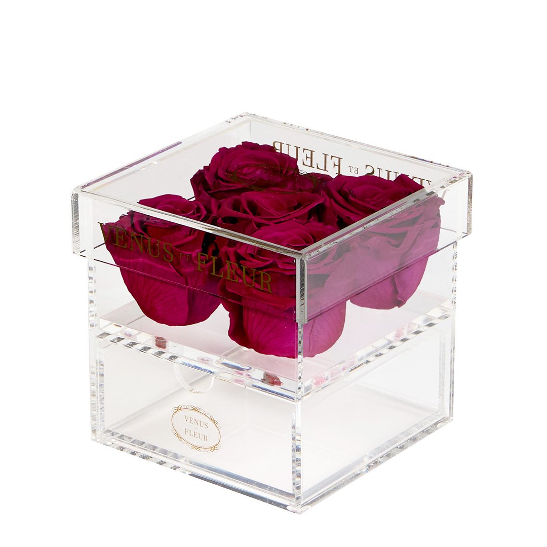 The Le Clair Cinq features five stunning Eternity® Roses encased in a sleek, clear acrylic case that protects the roses while displaying their true beauty. A hidden storage drawer beneath a top layer of roses makes this arrangement of boxed roses as functional as it is gorgeous.