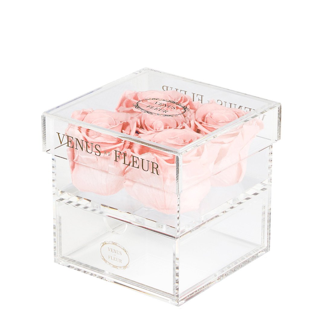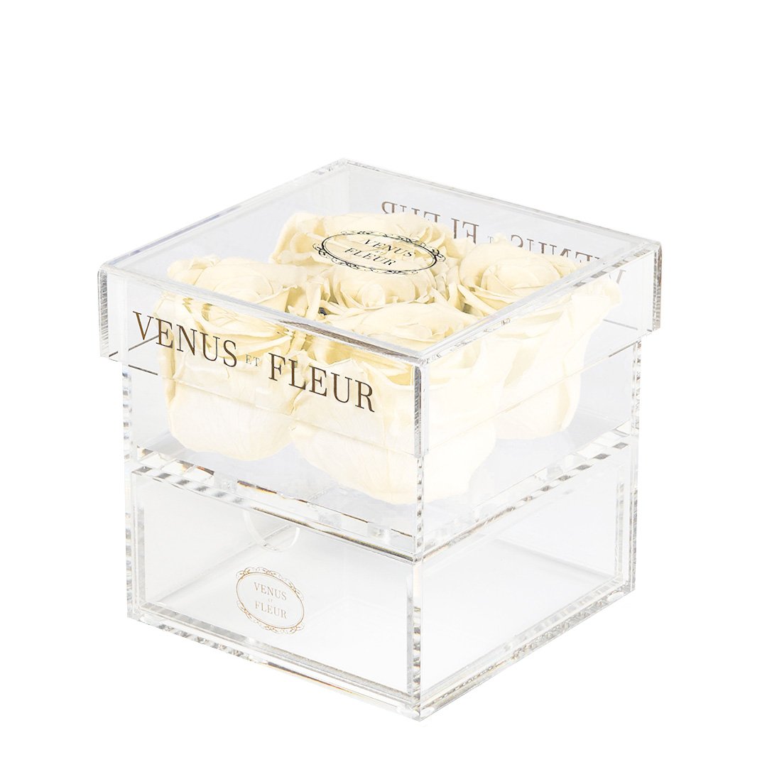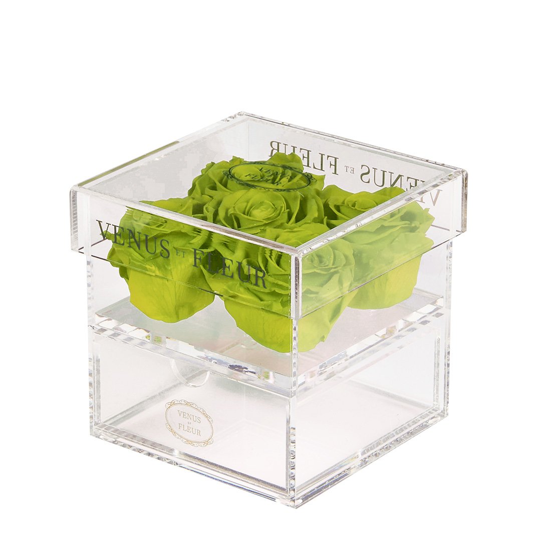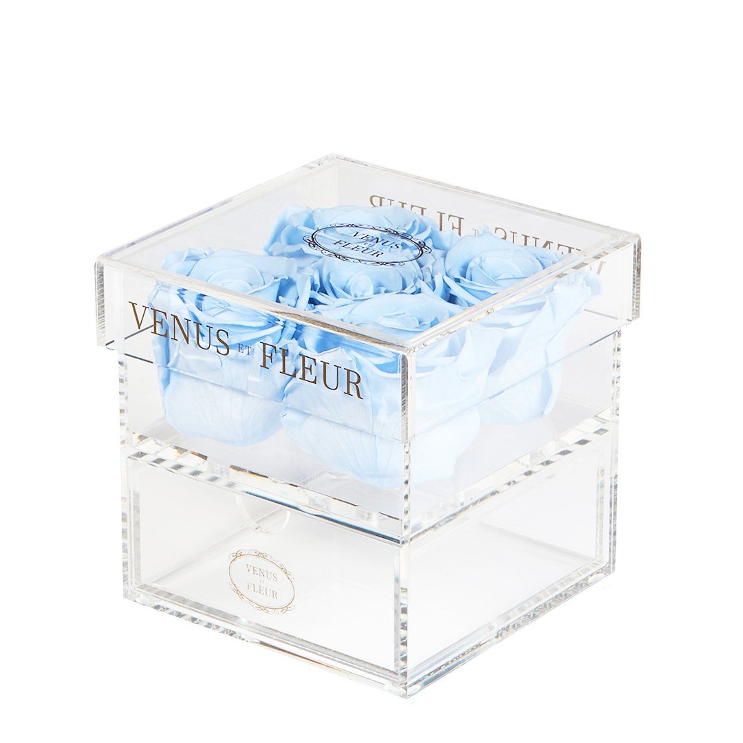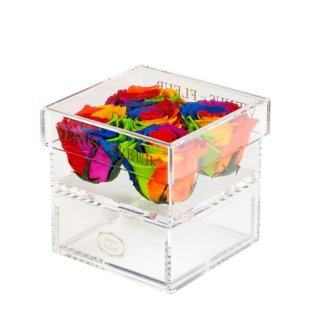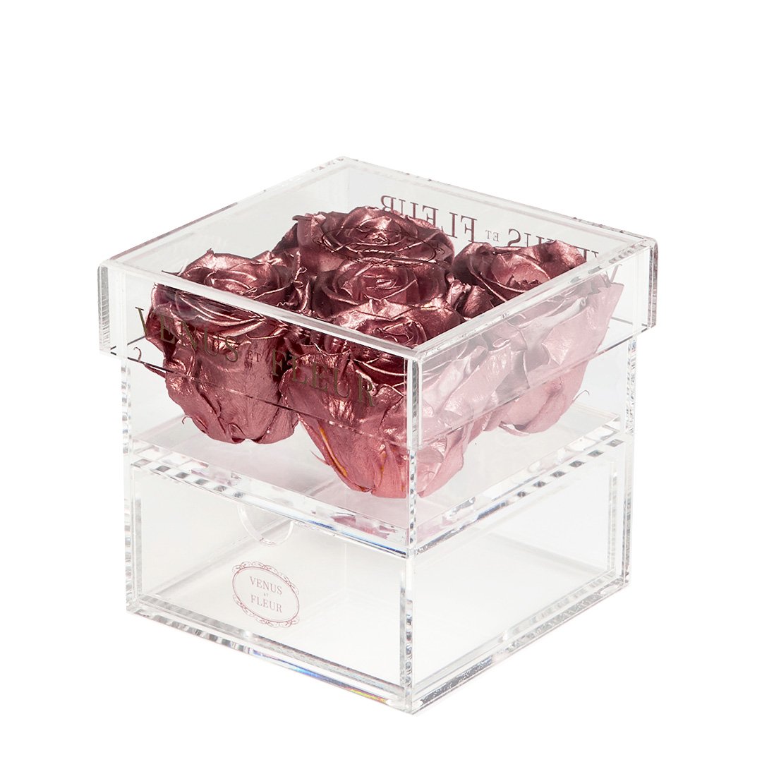 The Le Clair Cinq features five stunning Eternity® Roses encased in a sleek, clear acrylic case that protects the roses while displaying their true beauty. A hidden storage drawer beneath a top layer of roses makes this arrangement of boxed roses as functional as it is gorgeous.