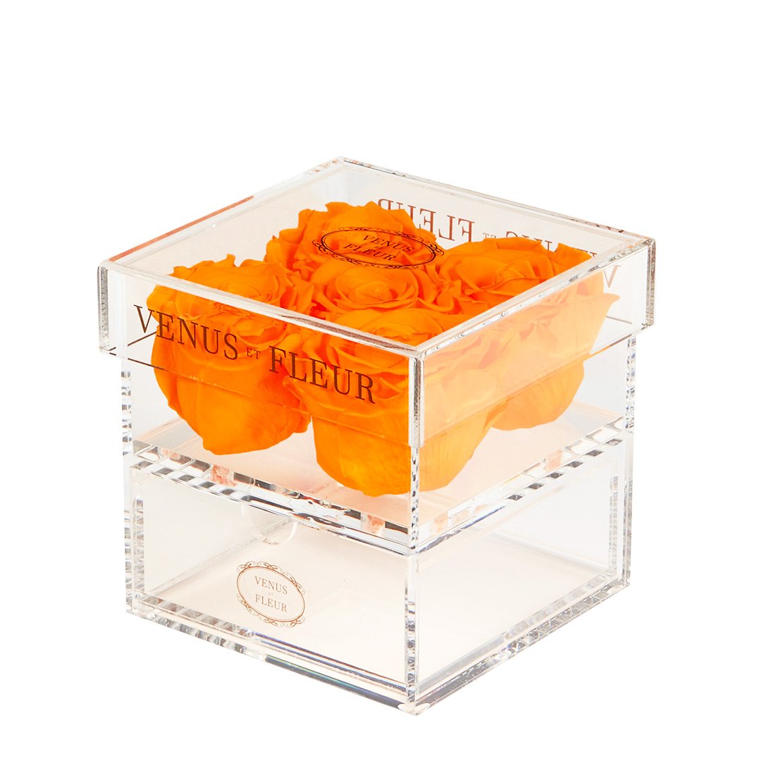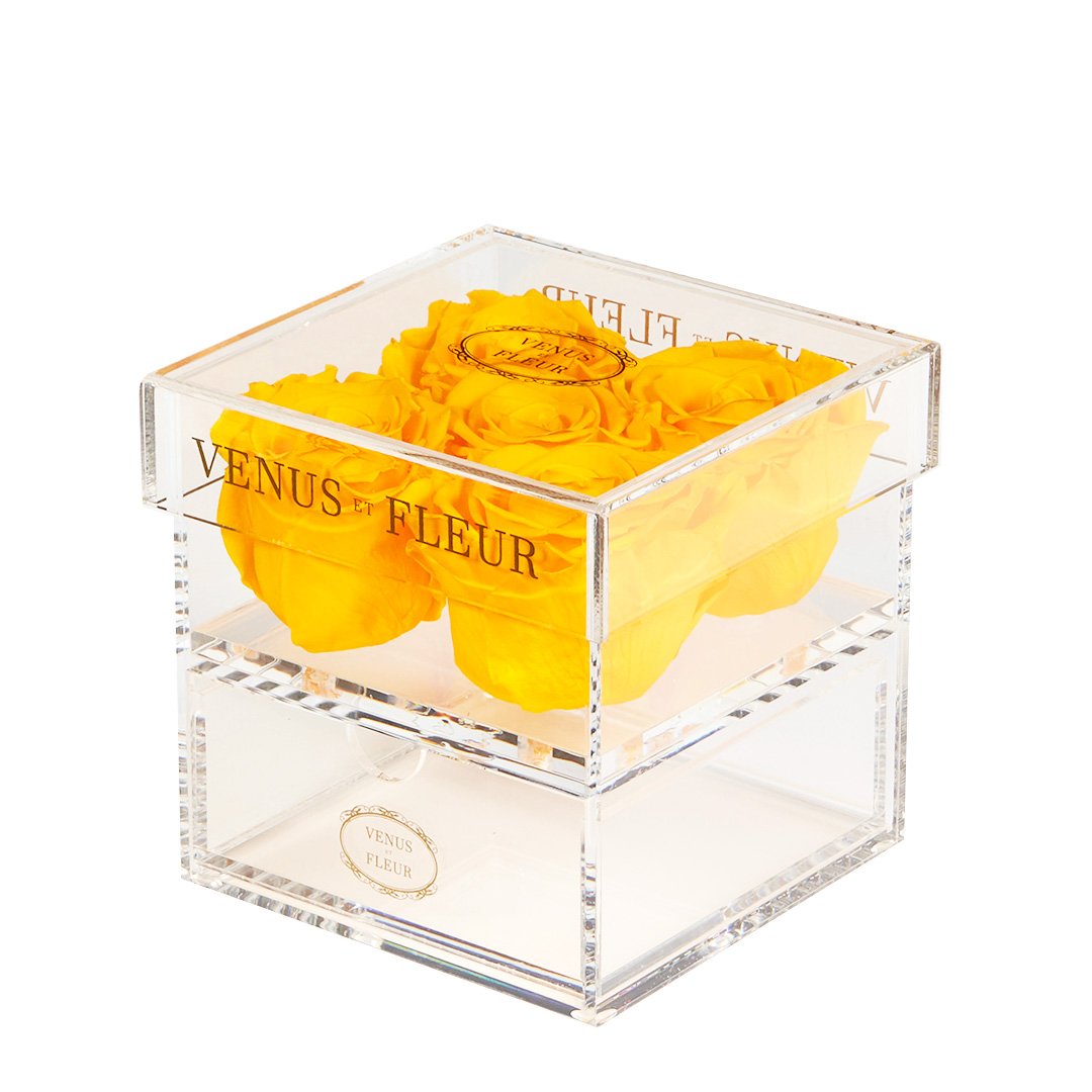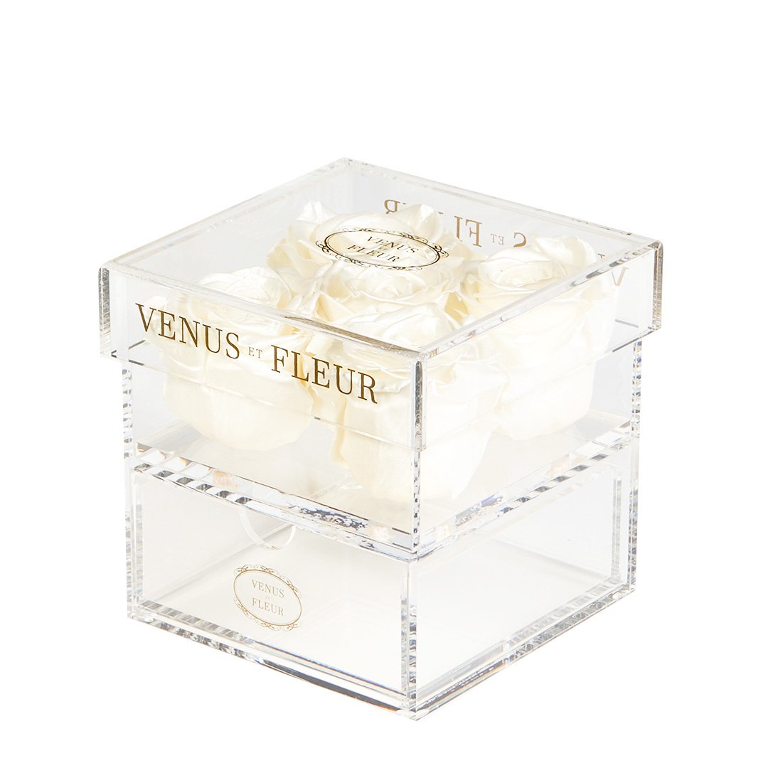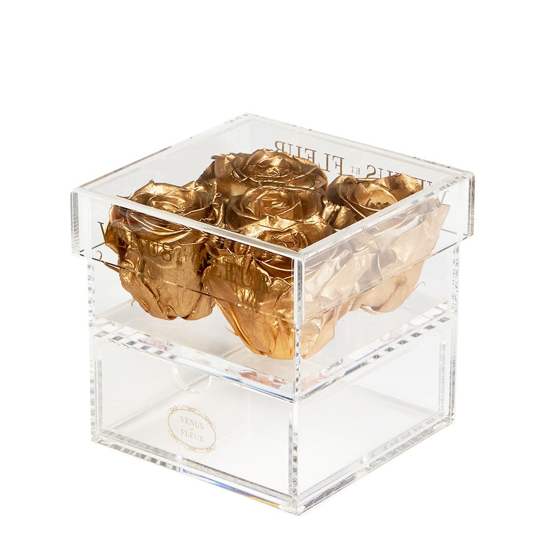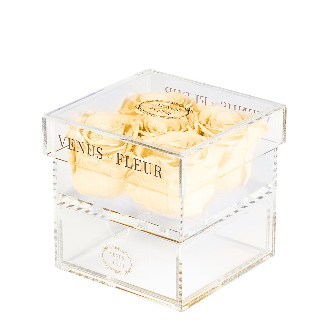 The Le Clair Cinq features five stunning Eternity® Roses encased in a sleek, clear acrylic case that protects the roses while displaying their true beauty. A hidden storage drawer beneath a top layer of roses makes this arrangement of boxed roses as functional as it is gorgeous.