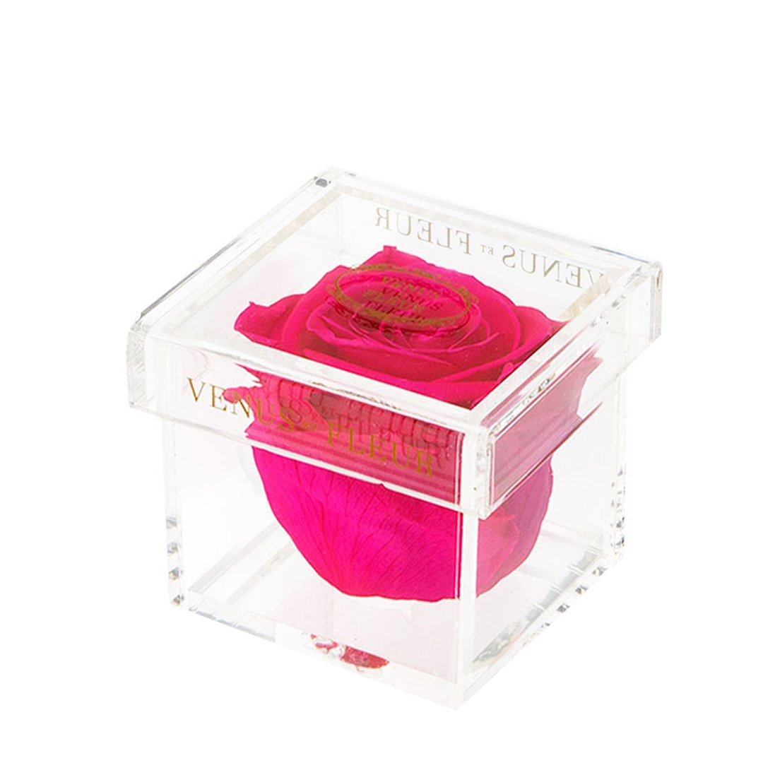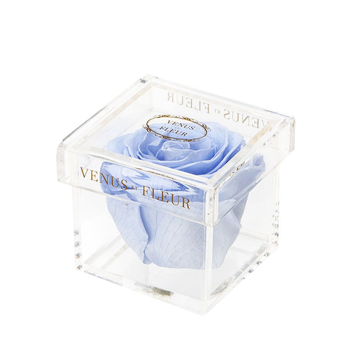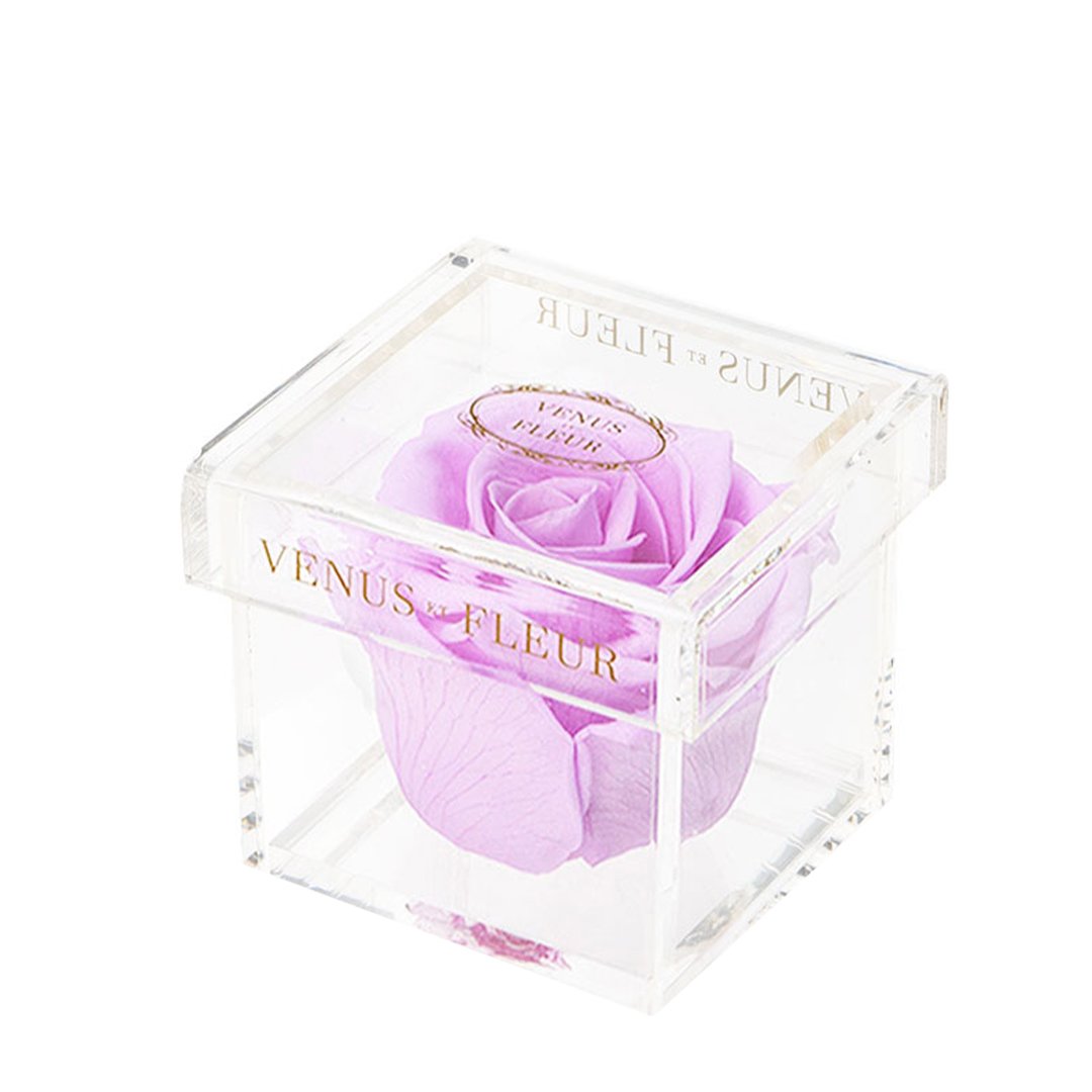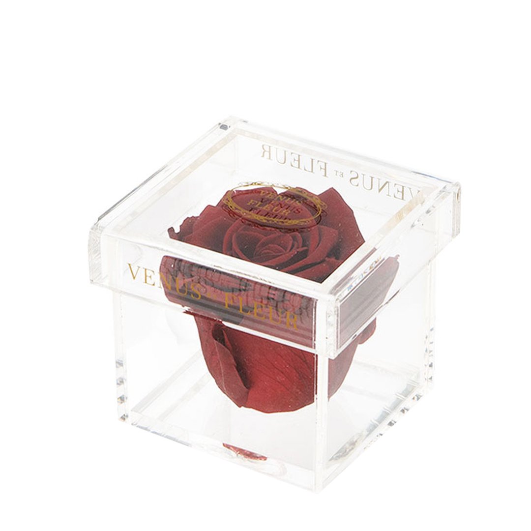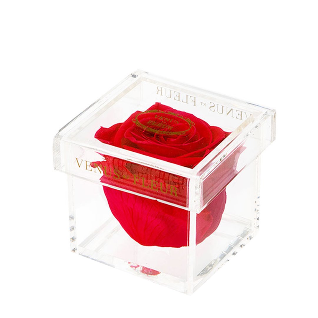 The Le Clair Un features a stunning Eternity® Rose encased in a sleek, clear acrylic case that protects the rose while displaying its true beauty.