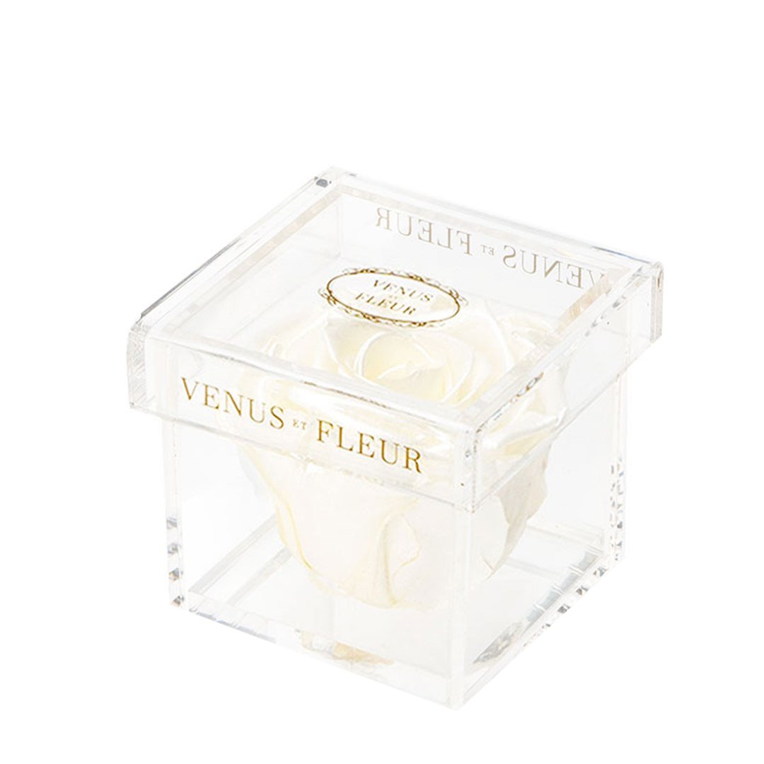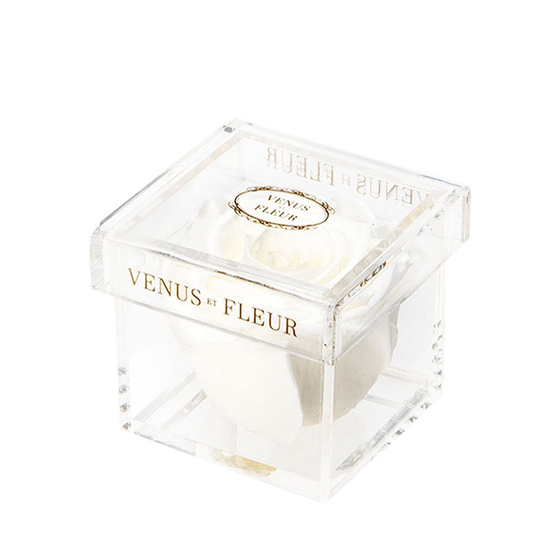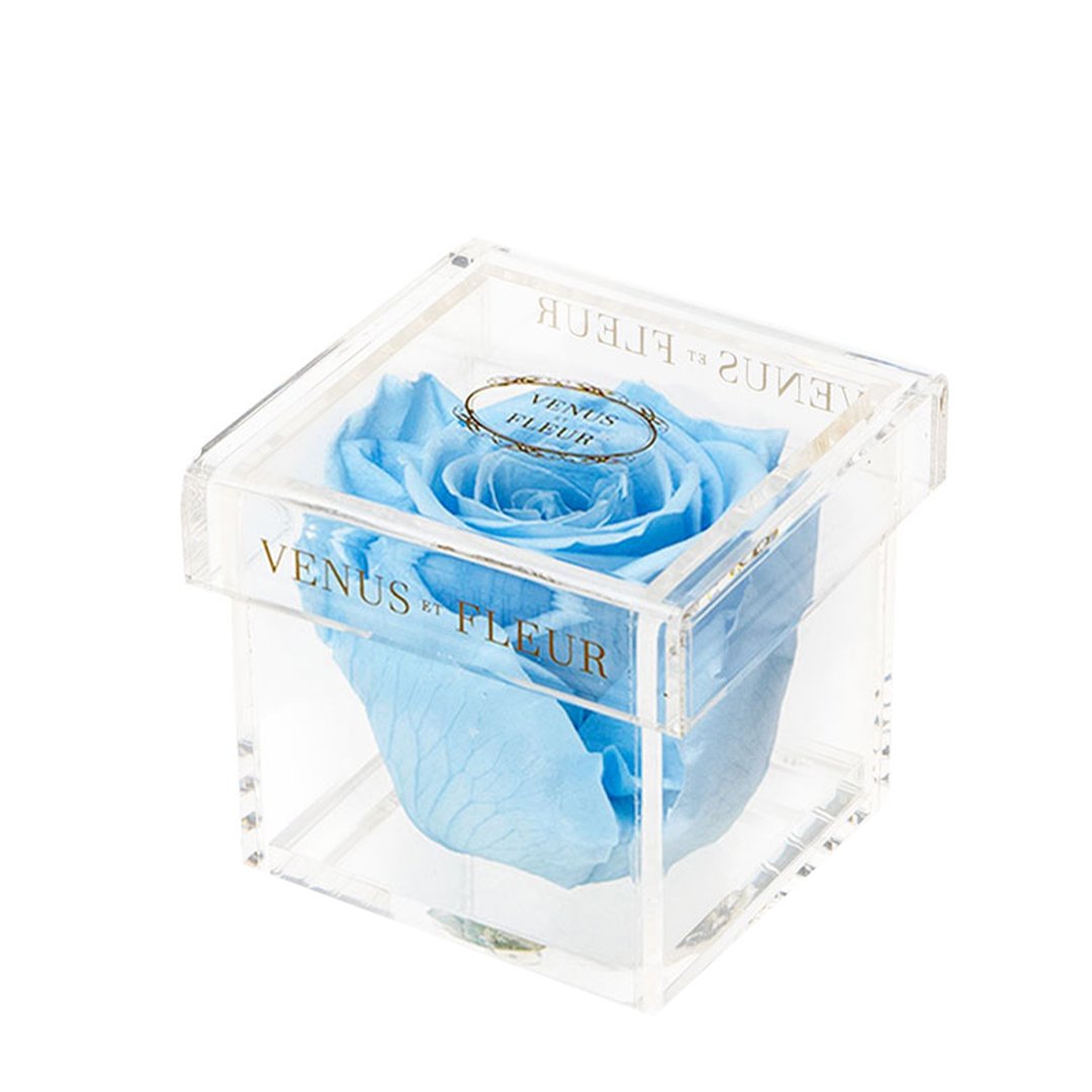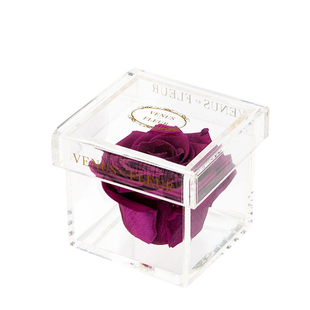 The Le Clair Un features a stunning Eternity® Rose encased in a sleek, clear acrylic case that protects the rose while displaying its true beauty.