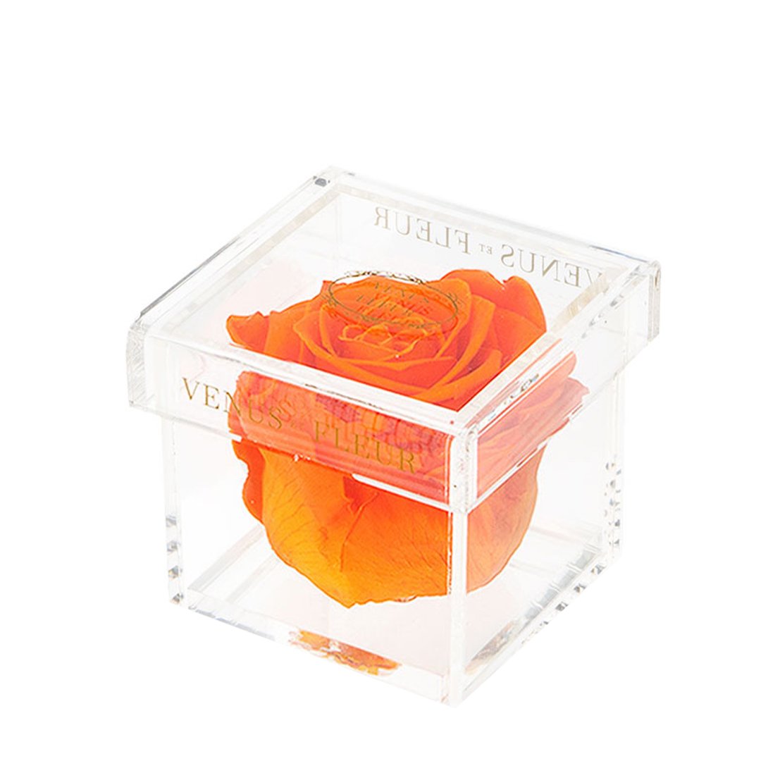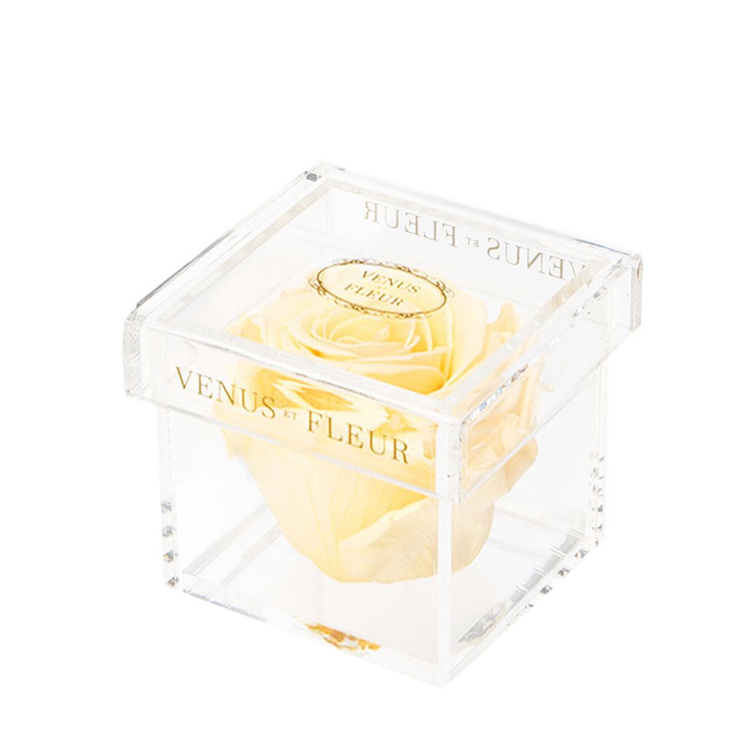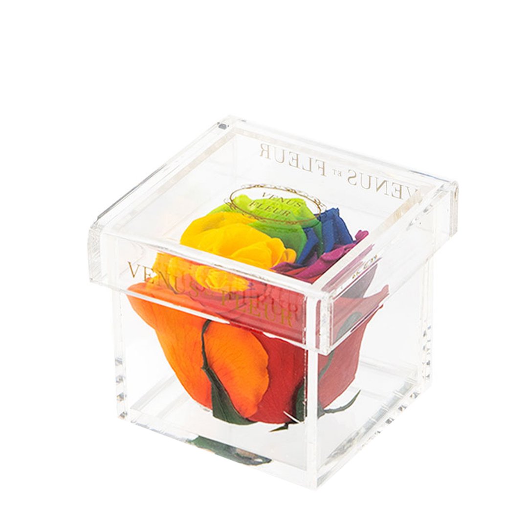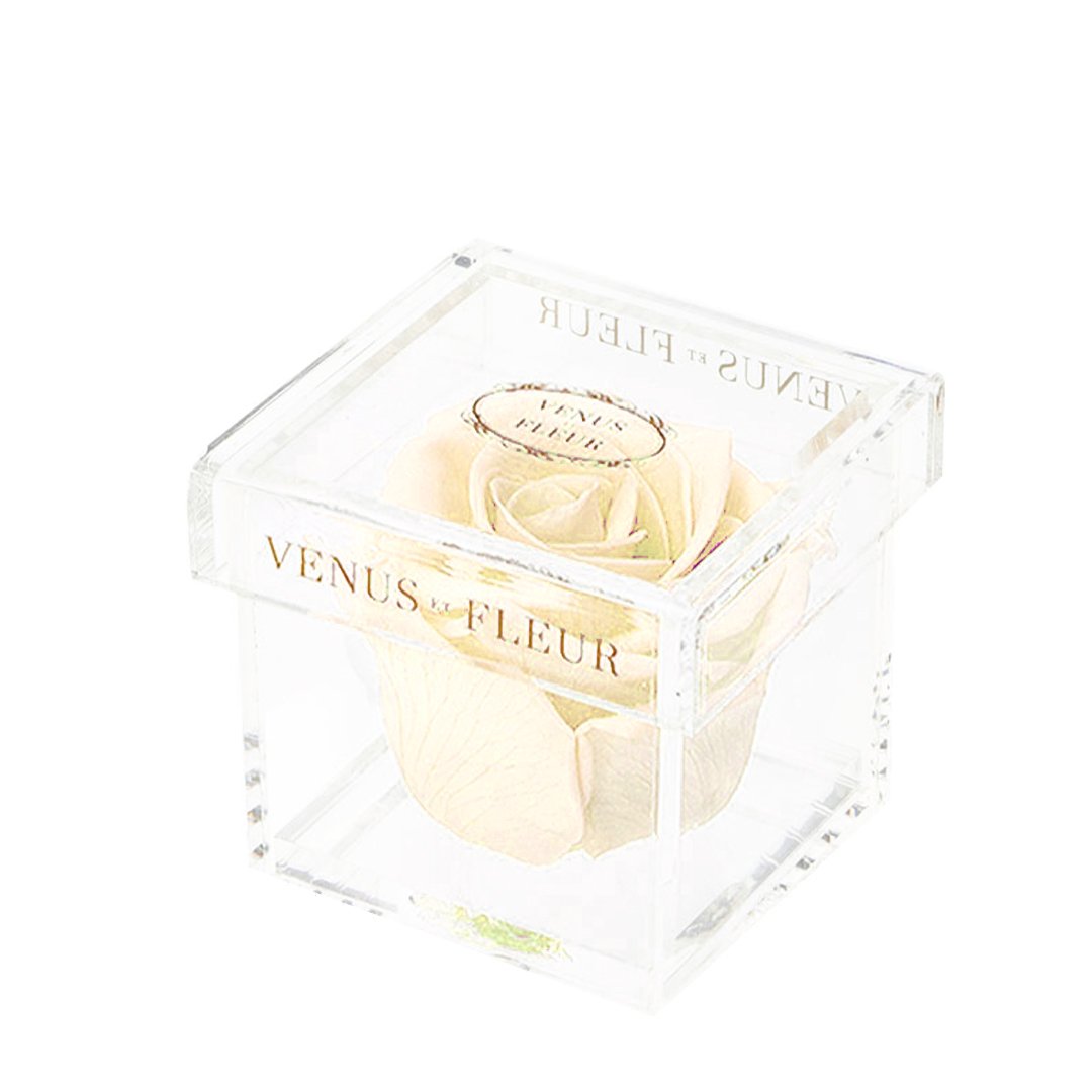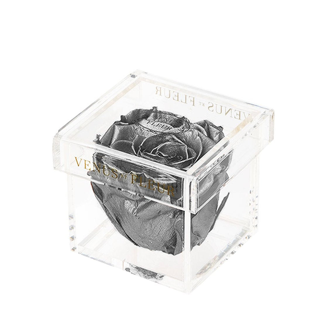 The Le Clair Un features a stunning Eternity® Rose encased in a sleek, clear acrylic case that protects the rose while displaying its true beauty.