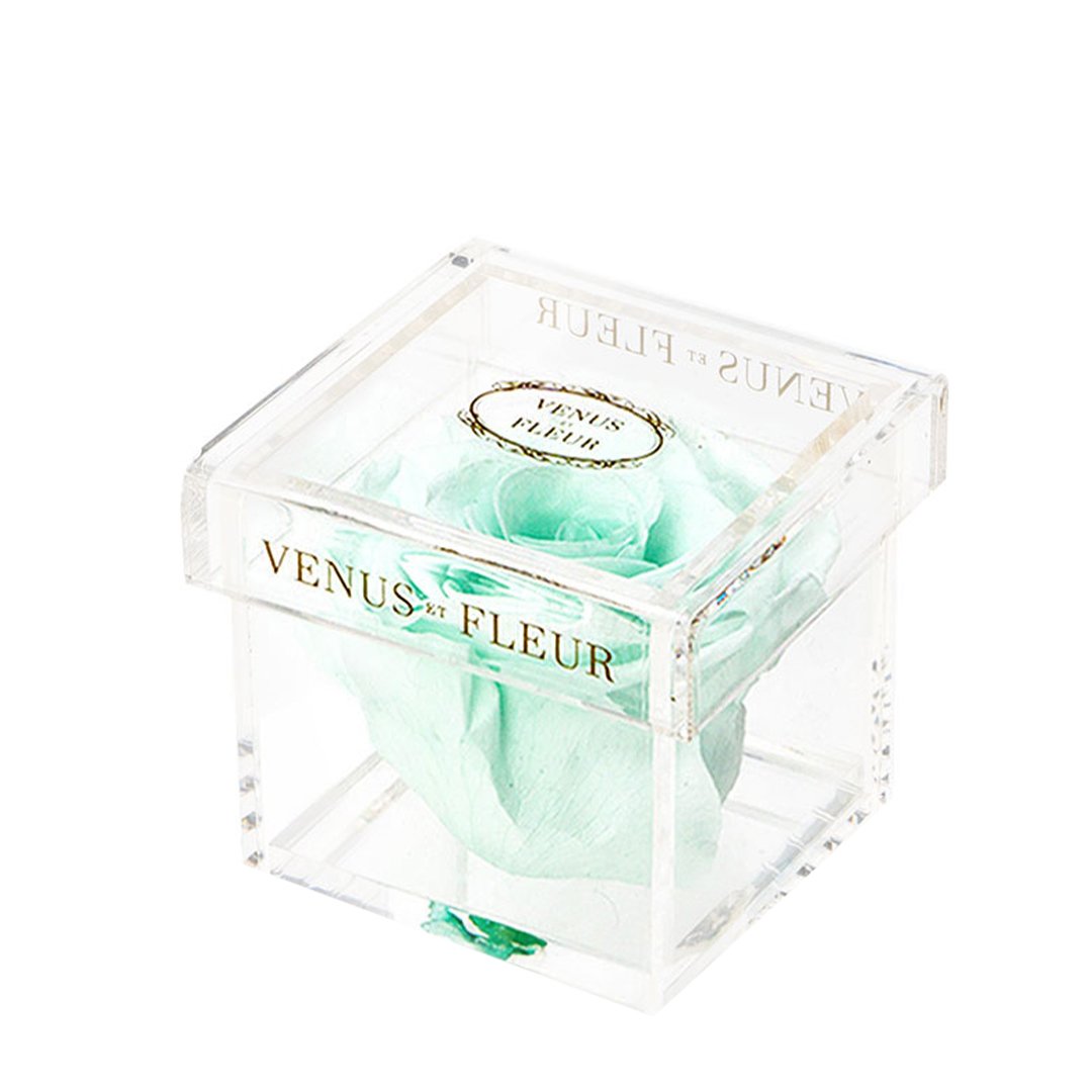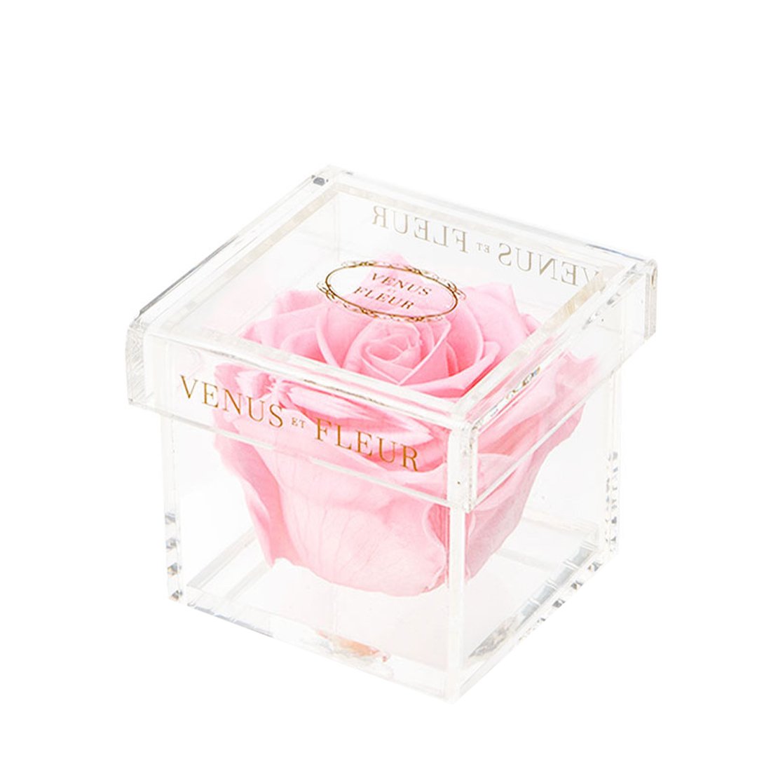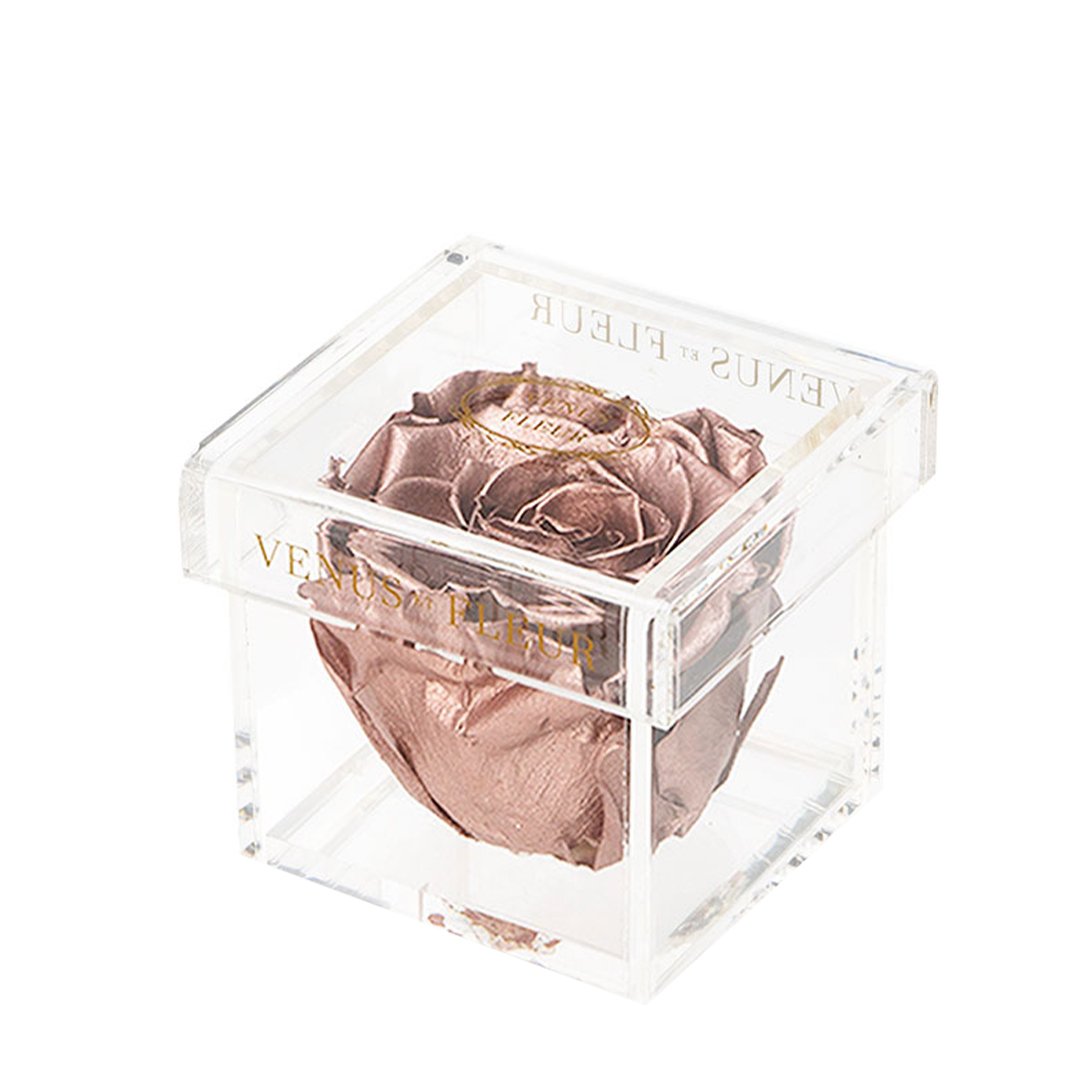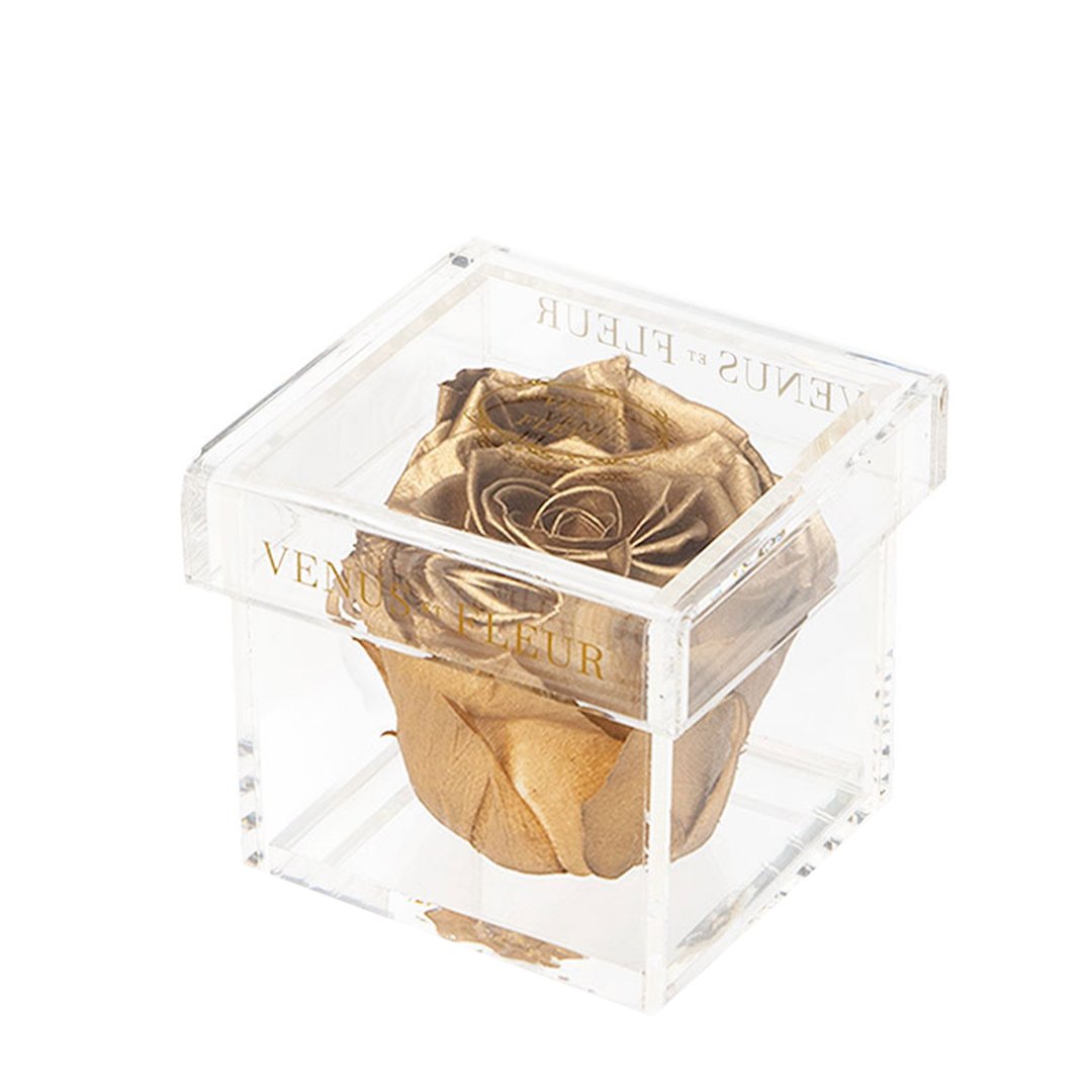 The Le Clair Un features a stunning Eternity® Rose encased in a sleek, clear acrylic case that protects the rose while displaying its true beauty.