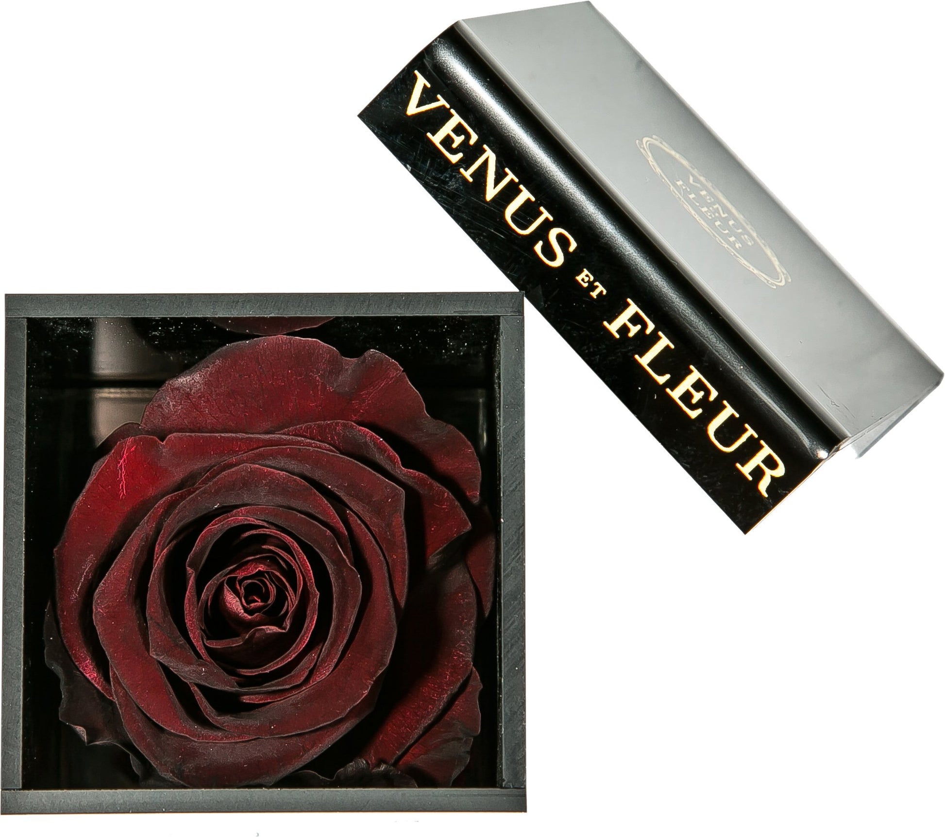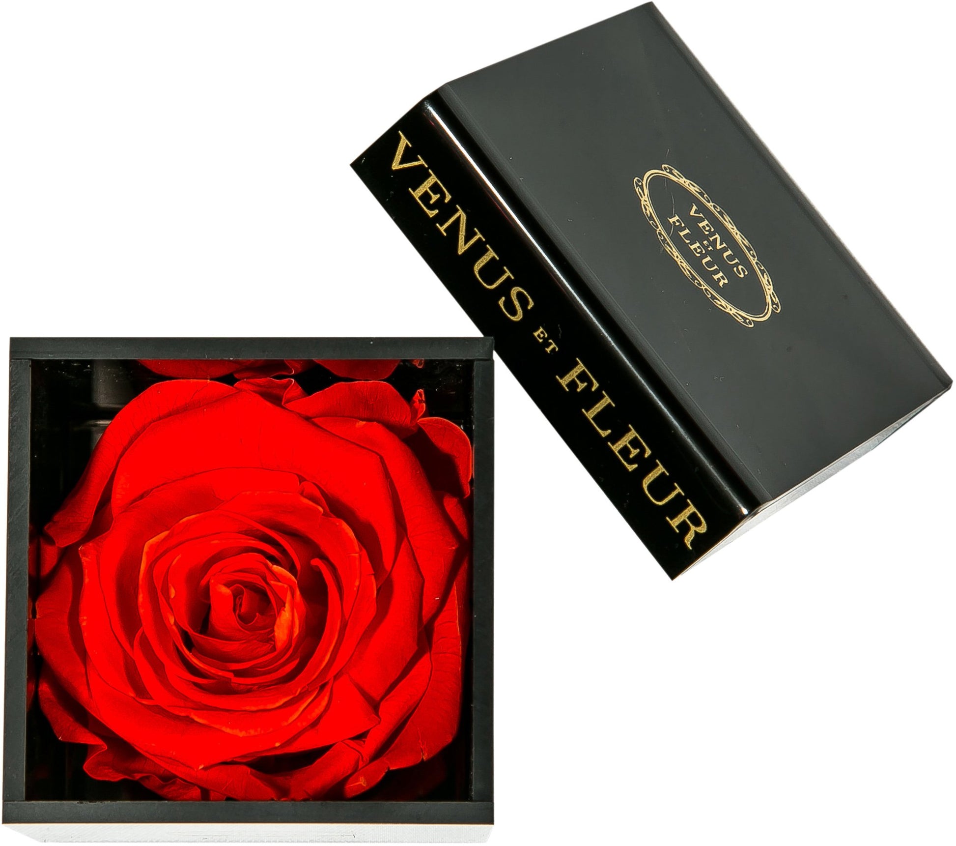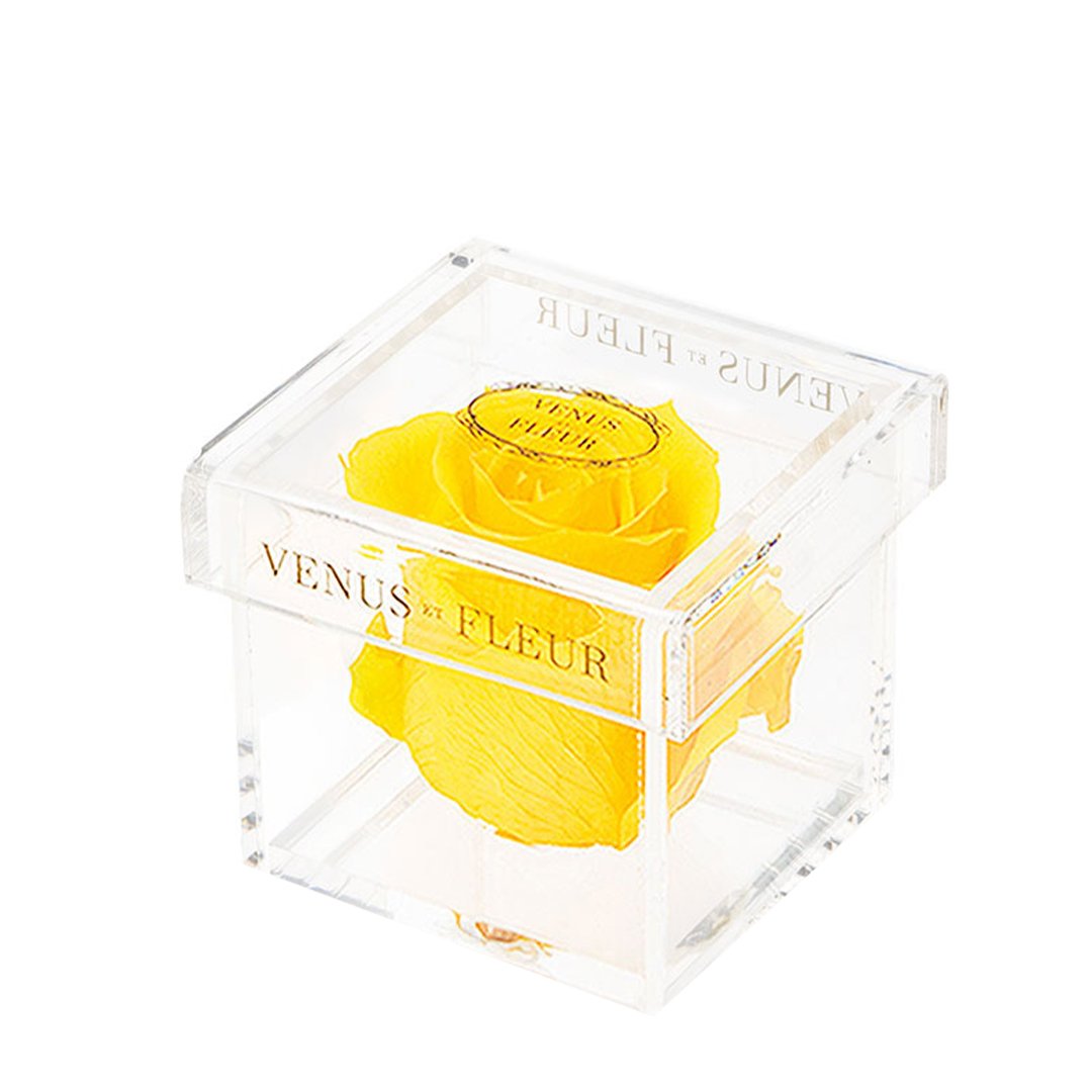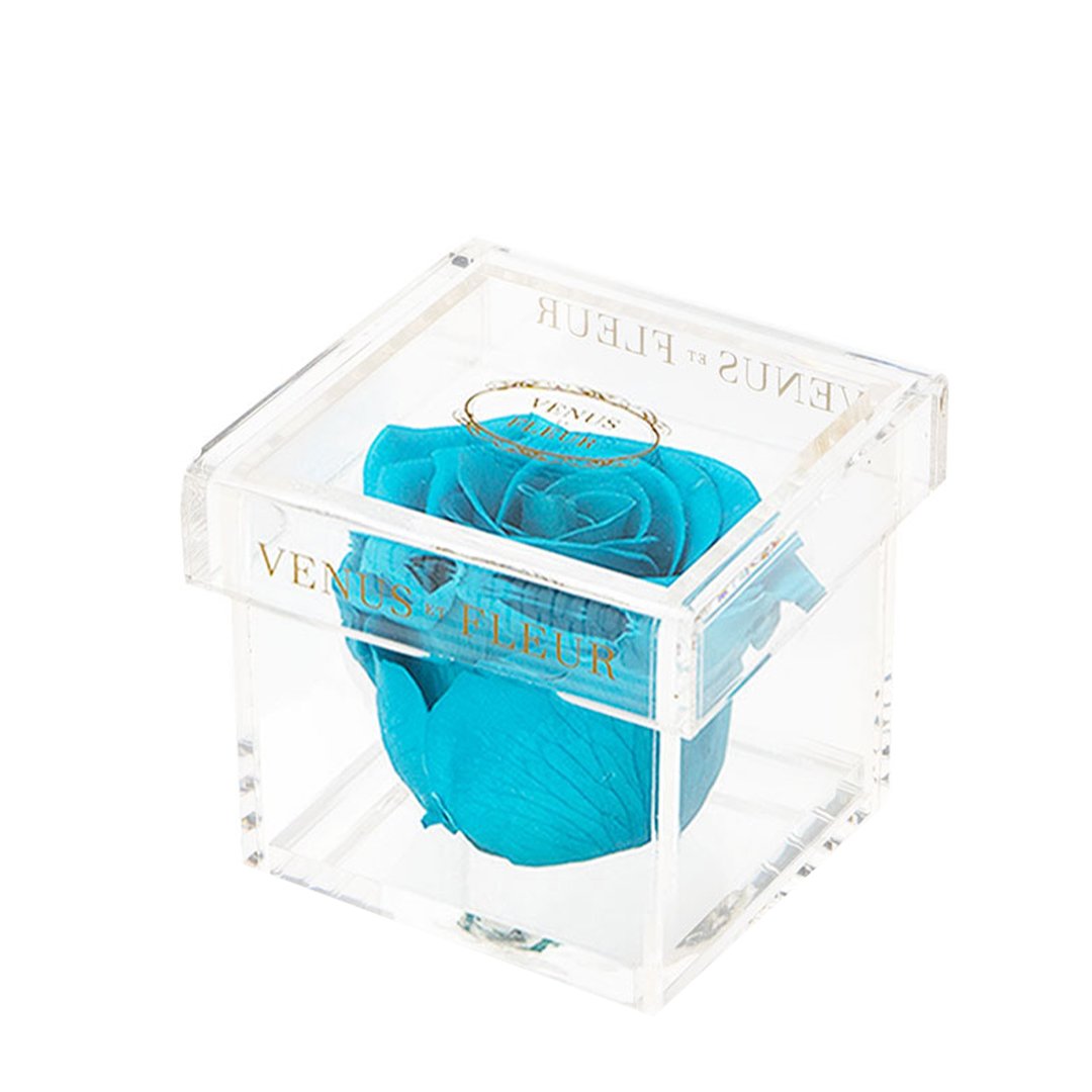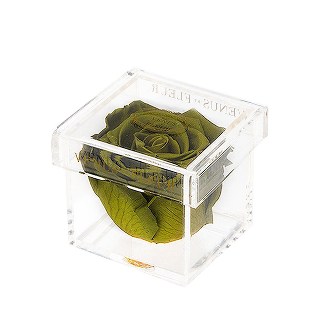 The Le Clair Un features a stunning Eternity® Rose encased in a sleek, clear acrylic case that protects the rose while displaying its true beauty.