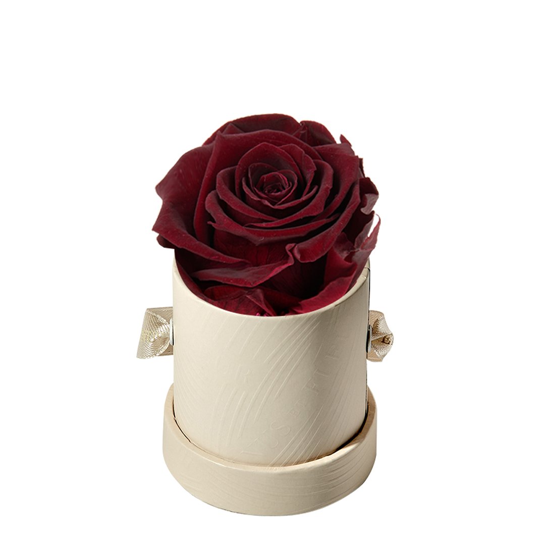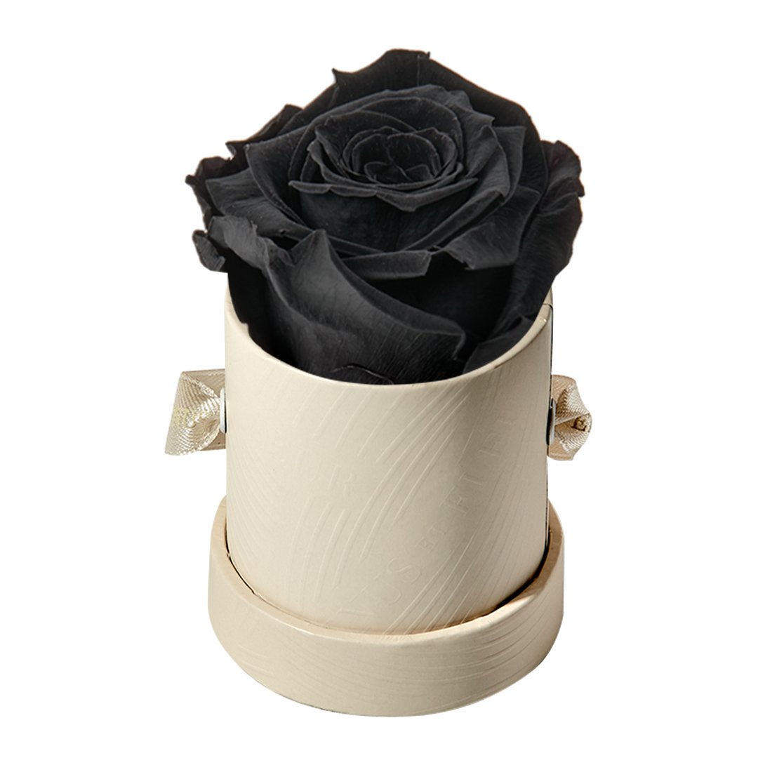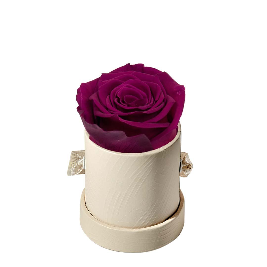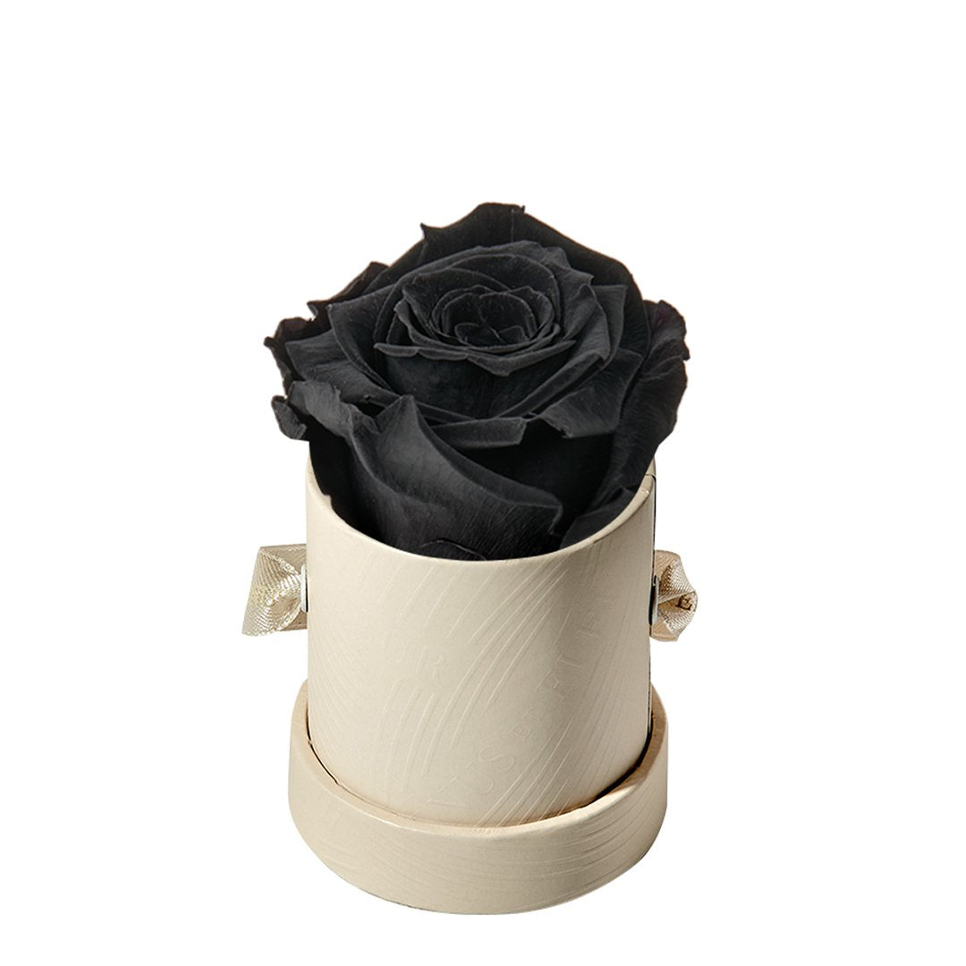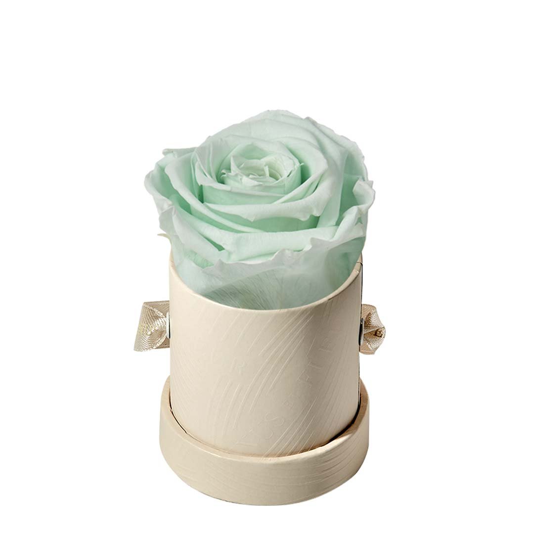 Our Le Mini arrangements feature a stunning, singular Eternity Rose®, set in our luxurious suede Parisian-hat box inspired round boxes. The Le Minis are ideal arrangements for elevating any small space, and serve as perfect gifts **Please note that variations will occur since all of our arrangements are uniquely handmade by our in-house designers.**