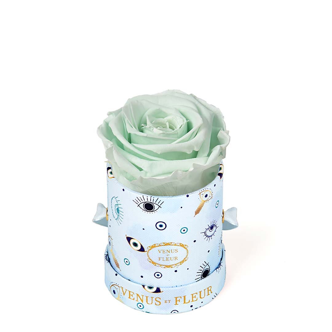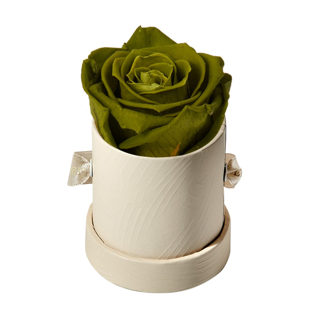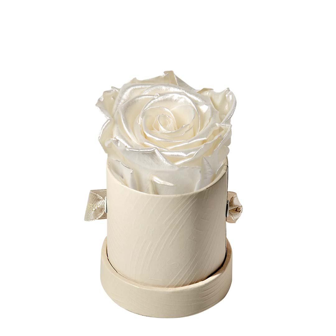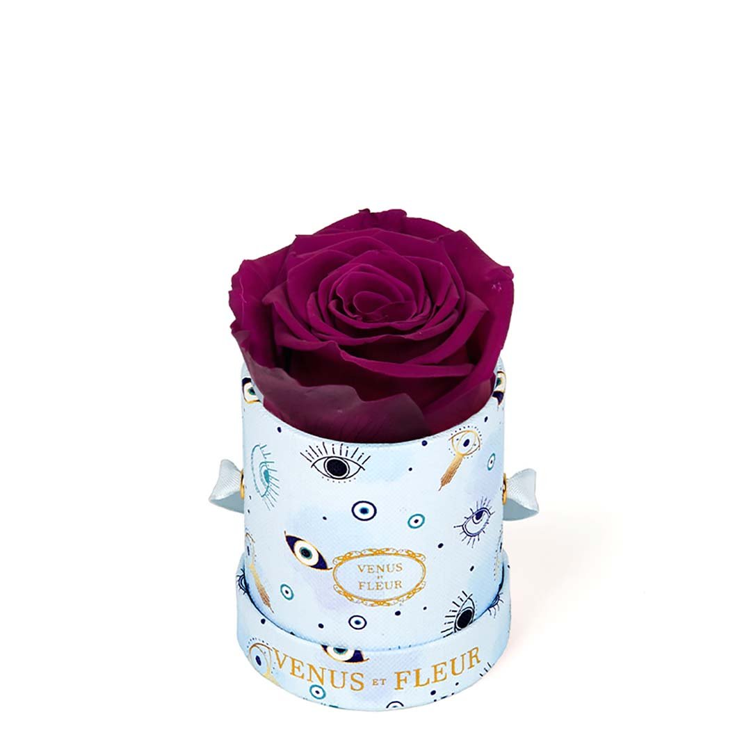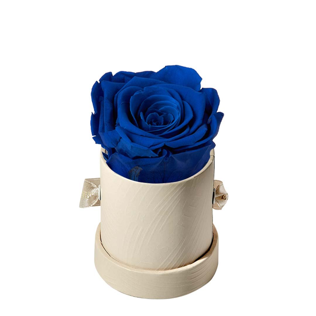 Our Le Mini arrangements feature a stunning, singular Eternity Rose®, set in our luxurious suede Parisian-hat box inspired round boxes. The Le Minis are ideal arrangements for elevating any small space, and serve as perfect gifts **Please note that variations will occur since all of our arrangements are uniquely handmade by our in-house designers.**