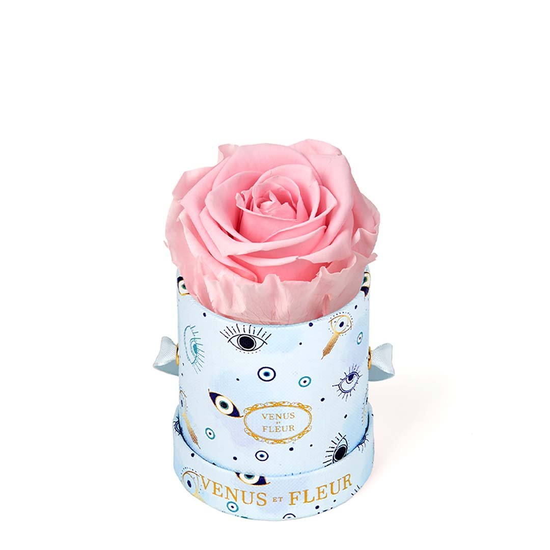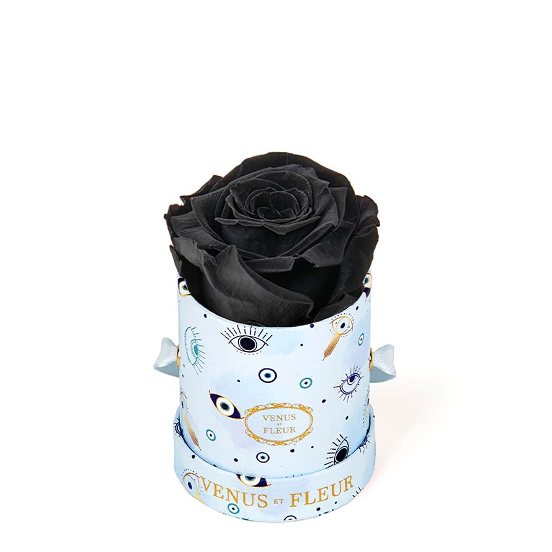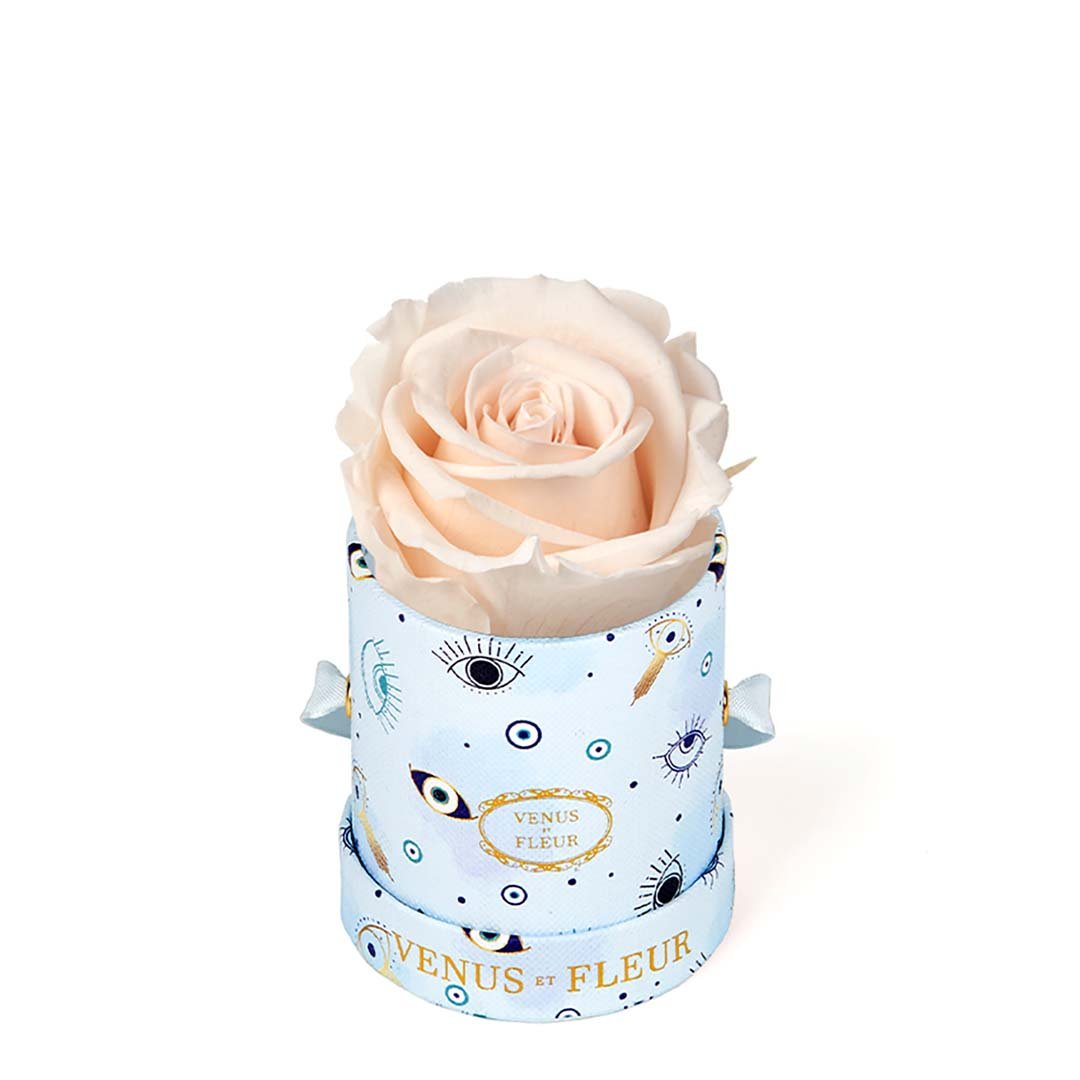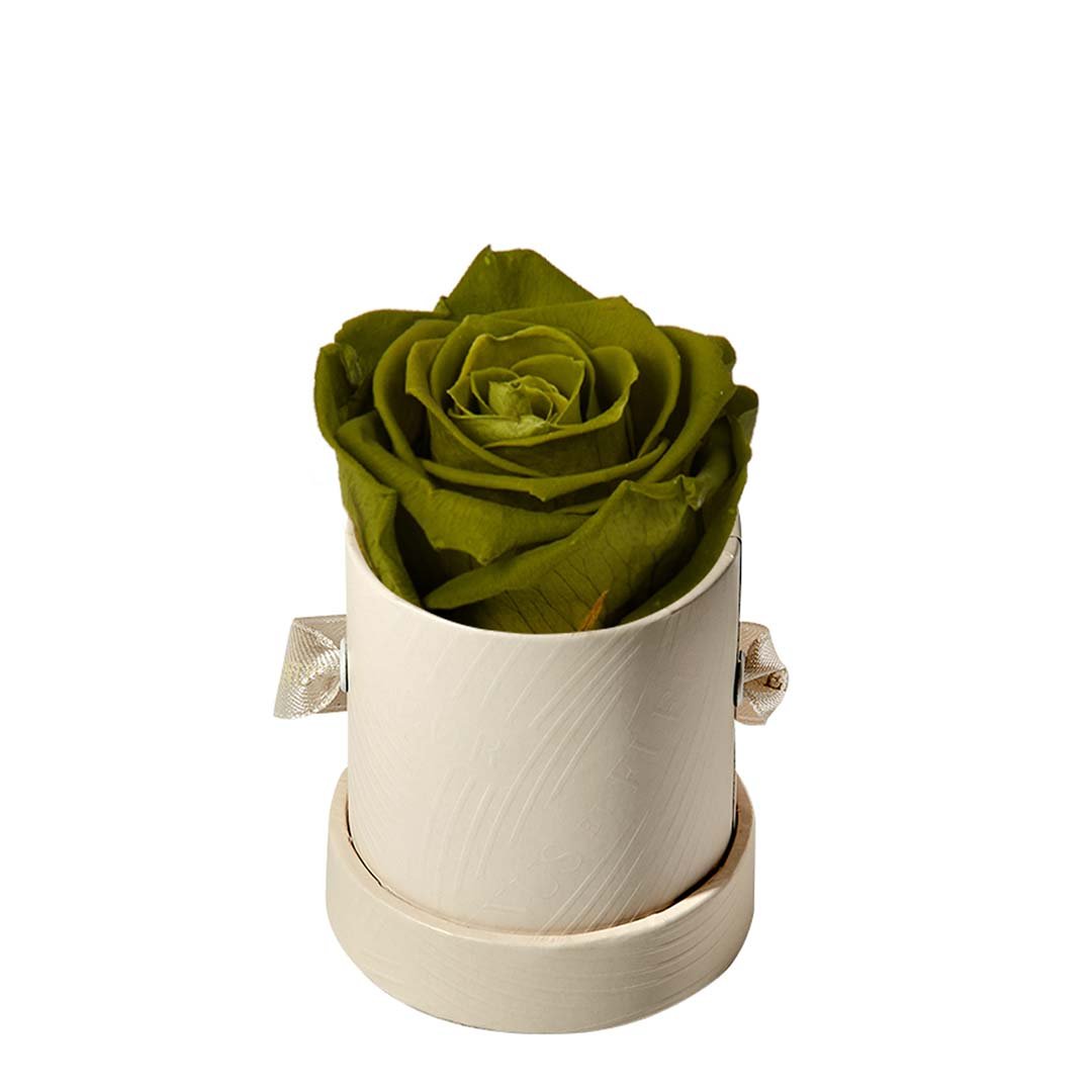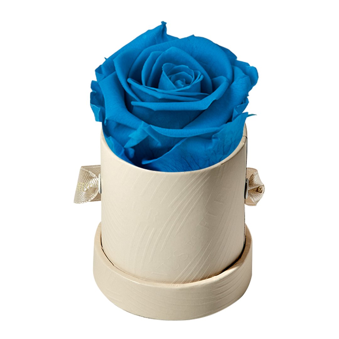 Our Le Mini arrangements feature a stunning, singular Eternity Rose®, set in our luxurious suede Parisian-hat box inspired round boxes. The Le Minis are ideal arrangements for elevating any small space, and serve as perfect gifts **Please note that variations will occur since all of our arrangements are uniquely handmade by our in-house designers.**