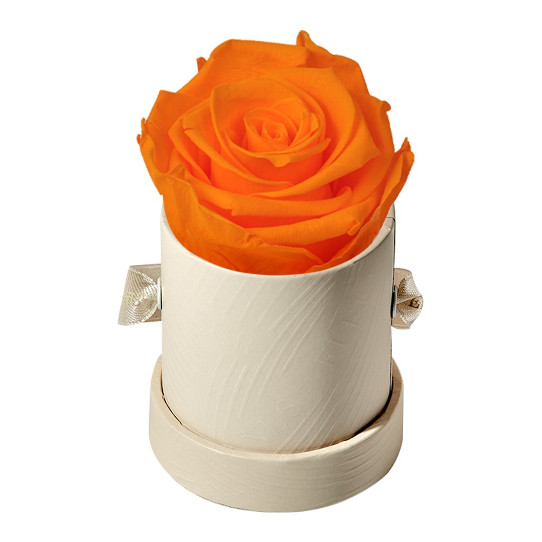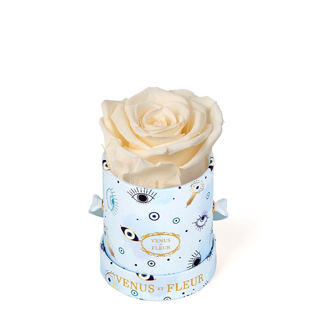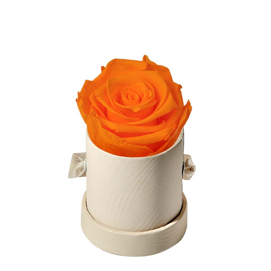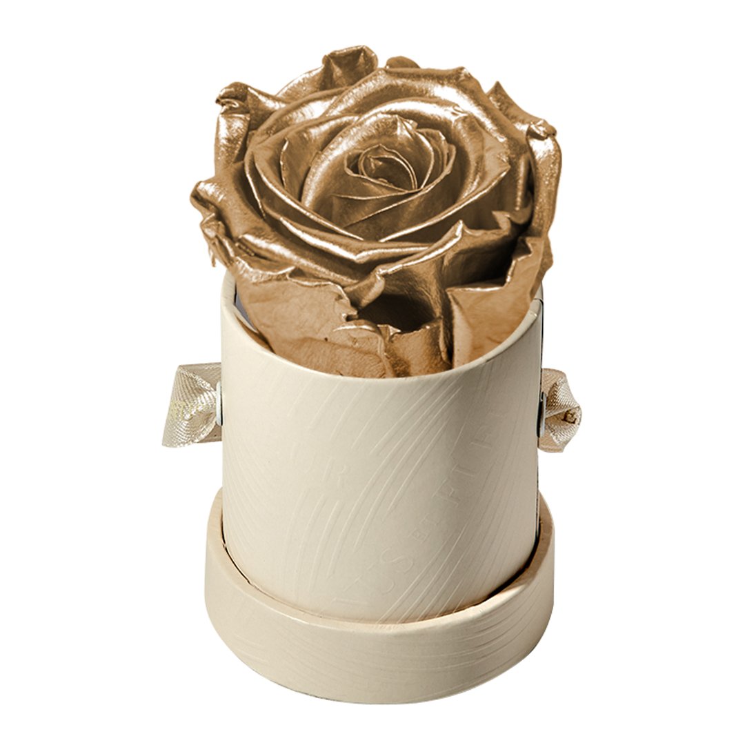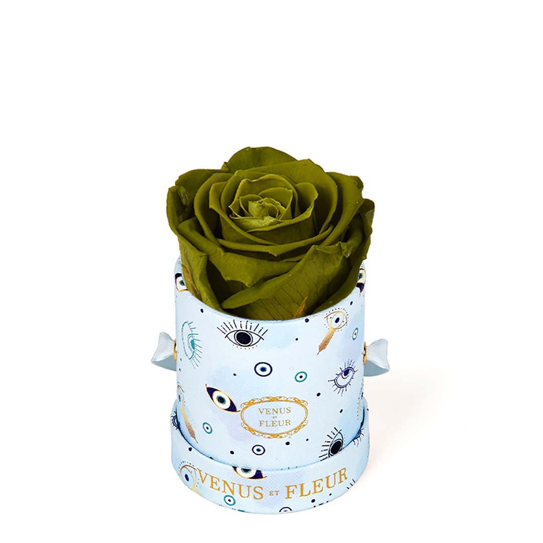 Our Le Mini arrangements feature a stunning, singular Eternity Rose®, set in our luxurious suede Parisian-hat box inspired round boxes. The Le Minis are ideal arrangements for elevating any small space, and serve as perfect gifts **Please note that variations will occur since all of our arrangements are uniquely handmade by our in-house designers.**