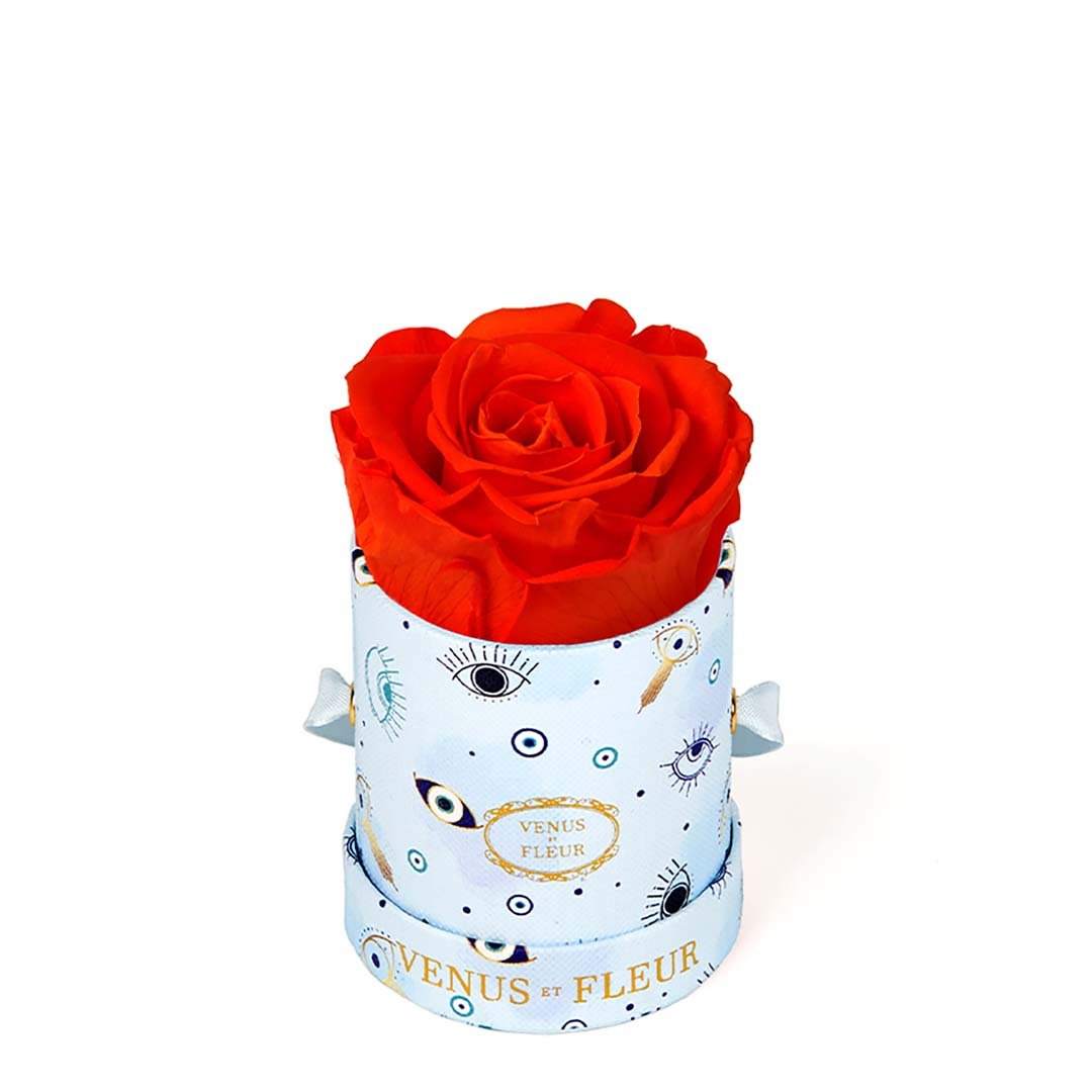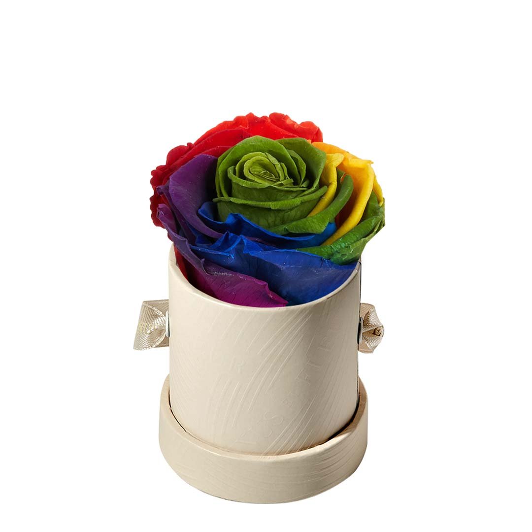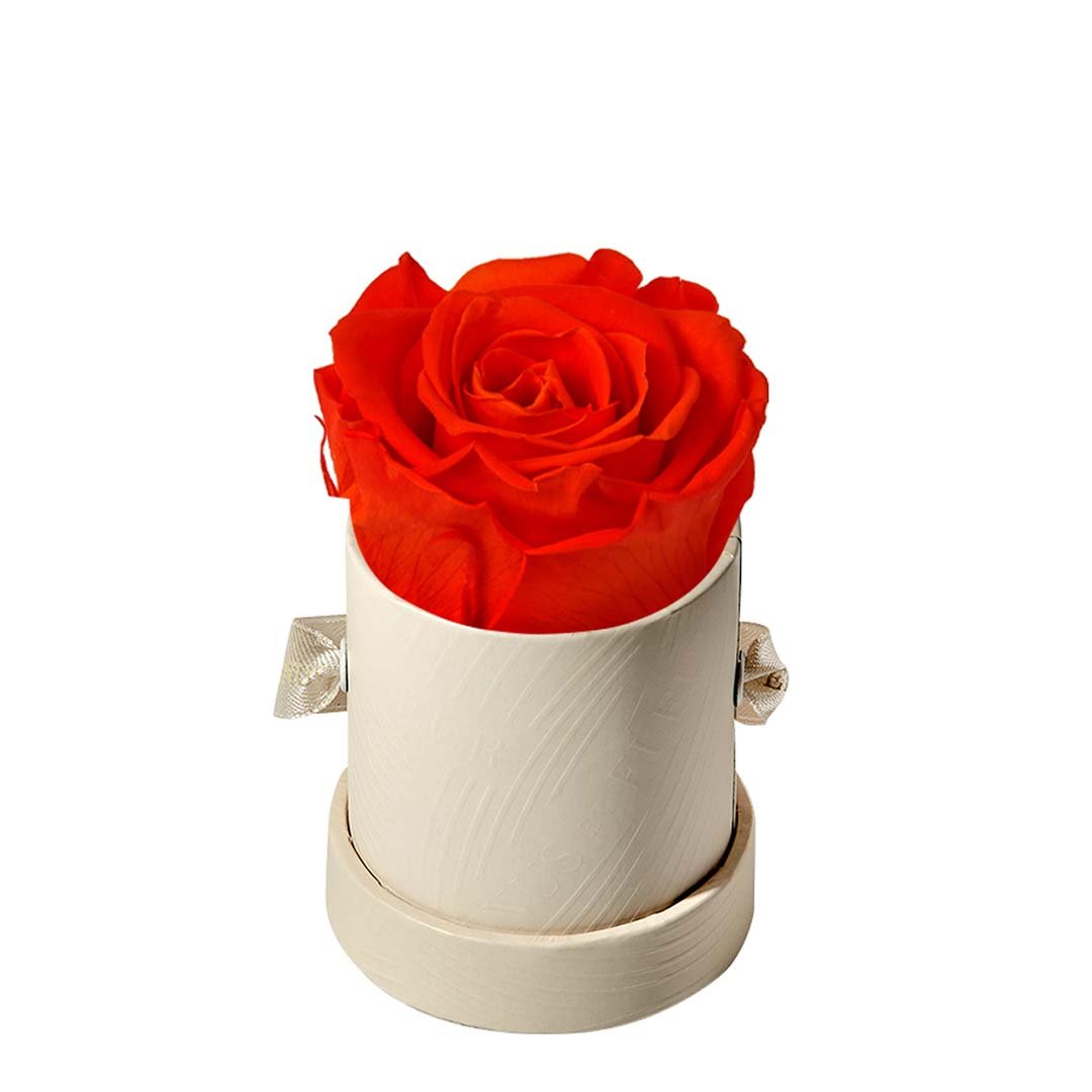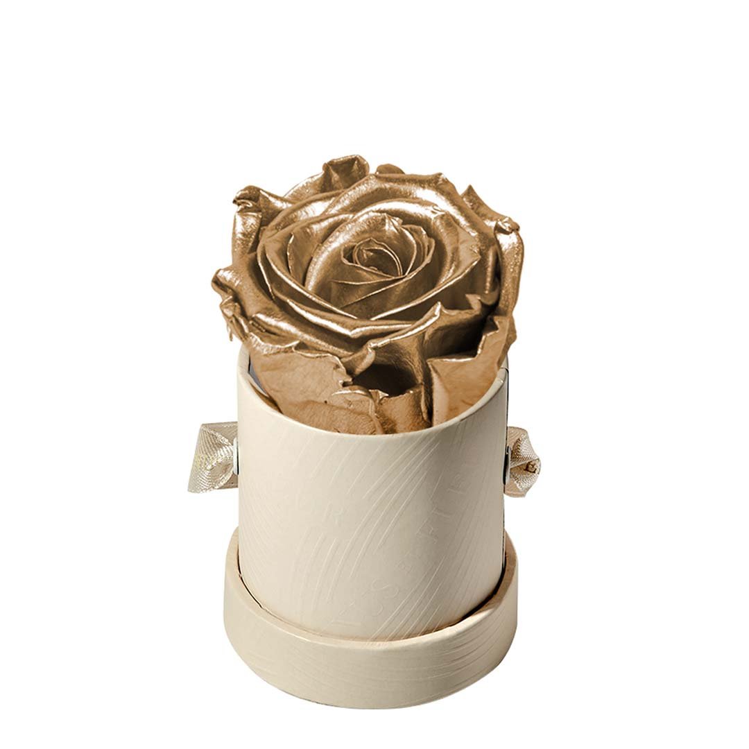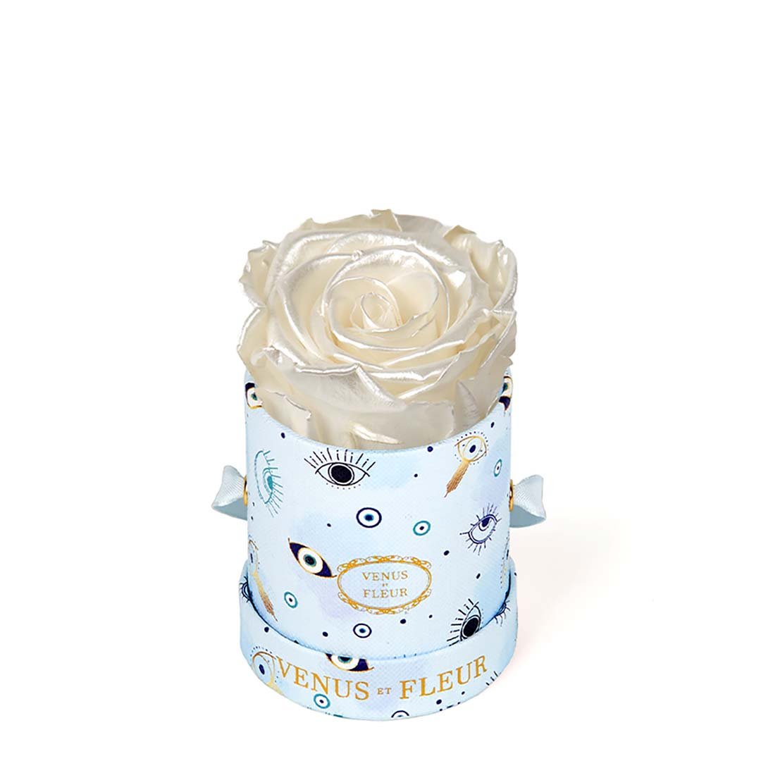Our Le Mini arrangements feature a stunning, singular Eternity Rose®, set in our luxurious suede Parisian-hat box inspired round boxes. The Le Minis are ideal arrangements for elevating any small space, and serve as perfect gifts **Please note that variations will occur since all of our arrangements are uniquely handmade by our in-house designers.**