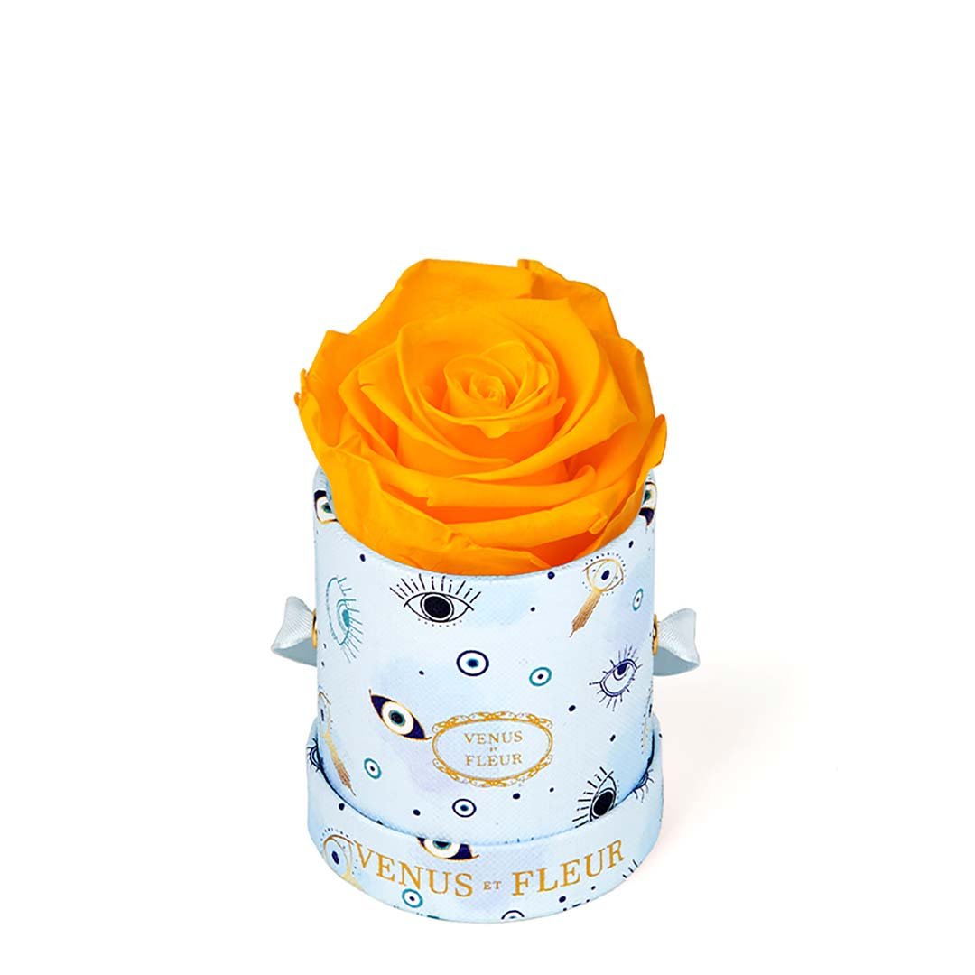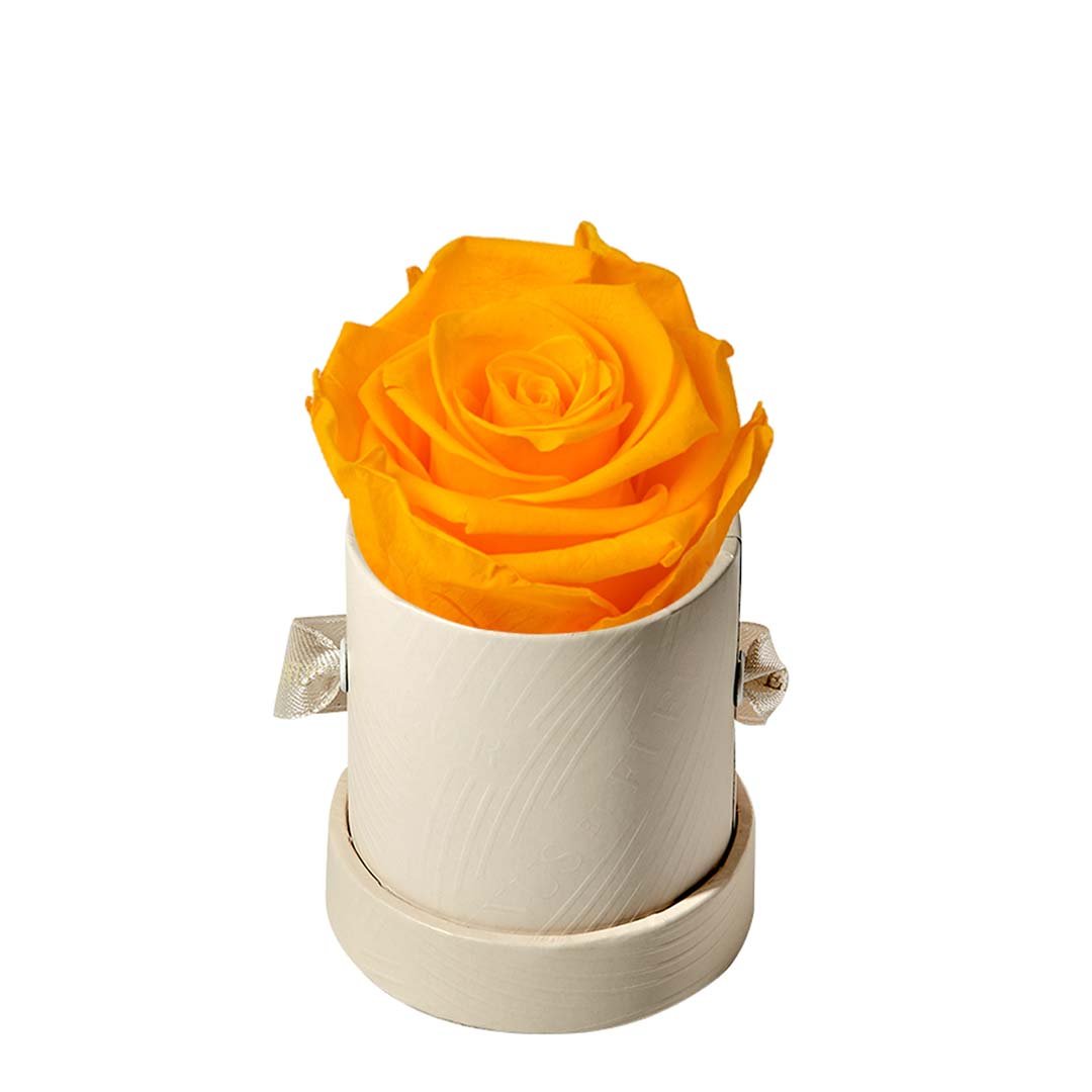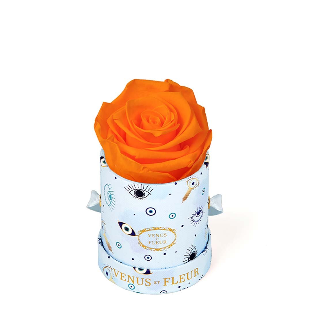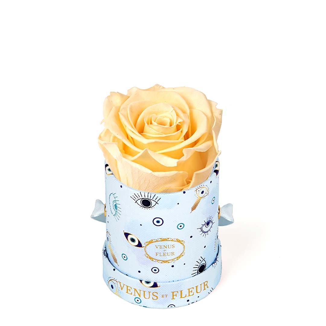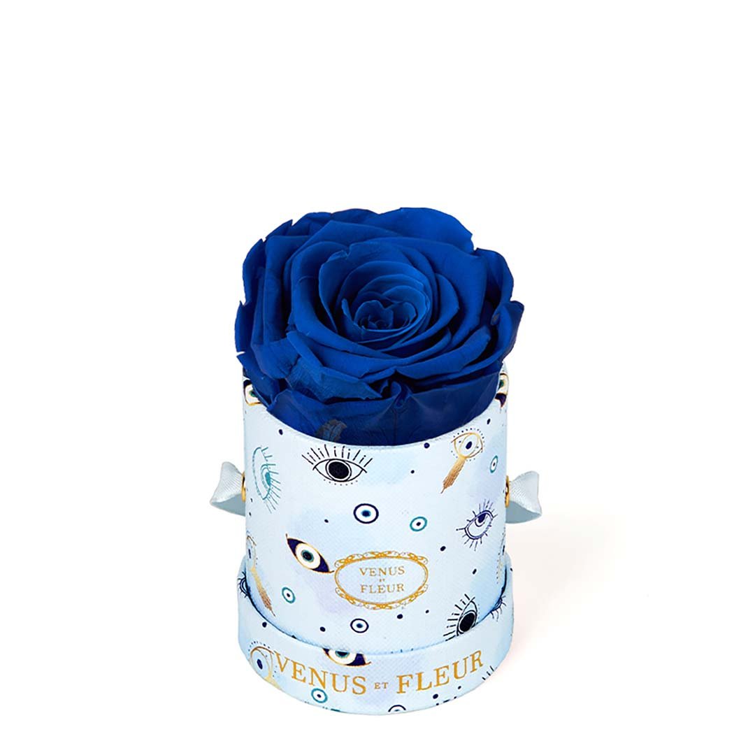 Our Le Mini arrangements feature a stunning, singular Eternity Rose®, set in our luxurious suede Parisian-hat box inspired round boxes. The Le Minis are ideal arrangements for elevating any small space, and serve as perfect gifts **Please note that variations will occur since all of our arrangements are uniquely handmade by our in-house designers.**
