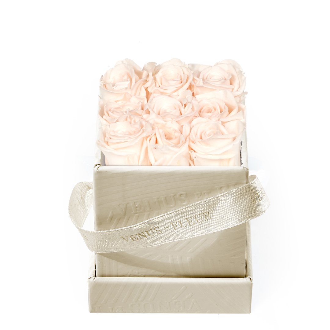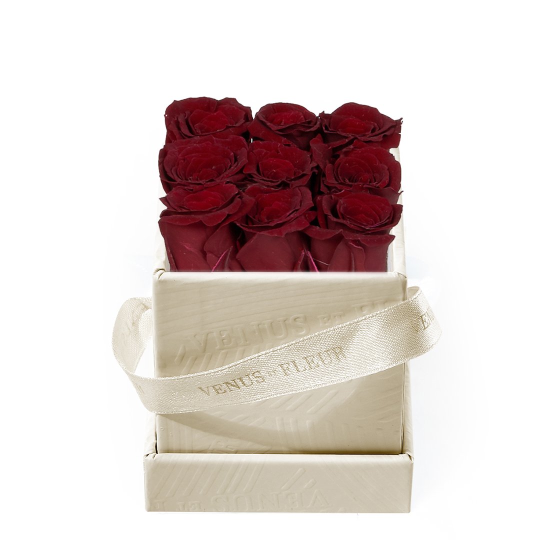 Our Le Mini™ Square classic arrangements feature 9 stunning mini roses, set in our classic Parisian-hat box inspired square boxes. The Le Minis are ideal arrangements for elevating any small space, and serve as perfect gifts.