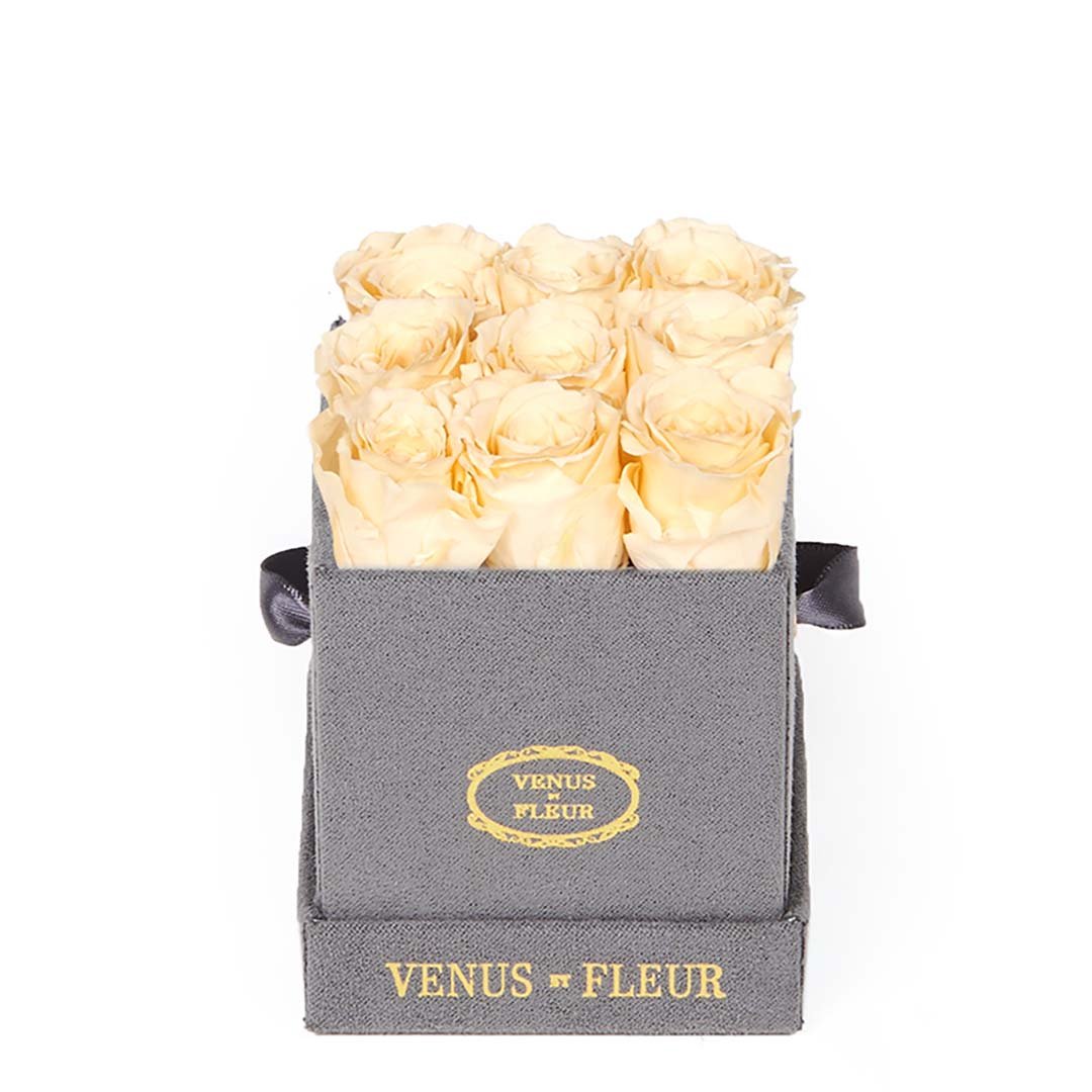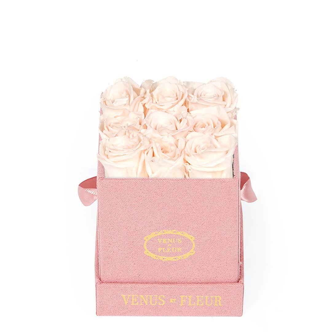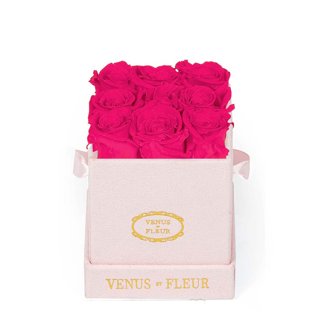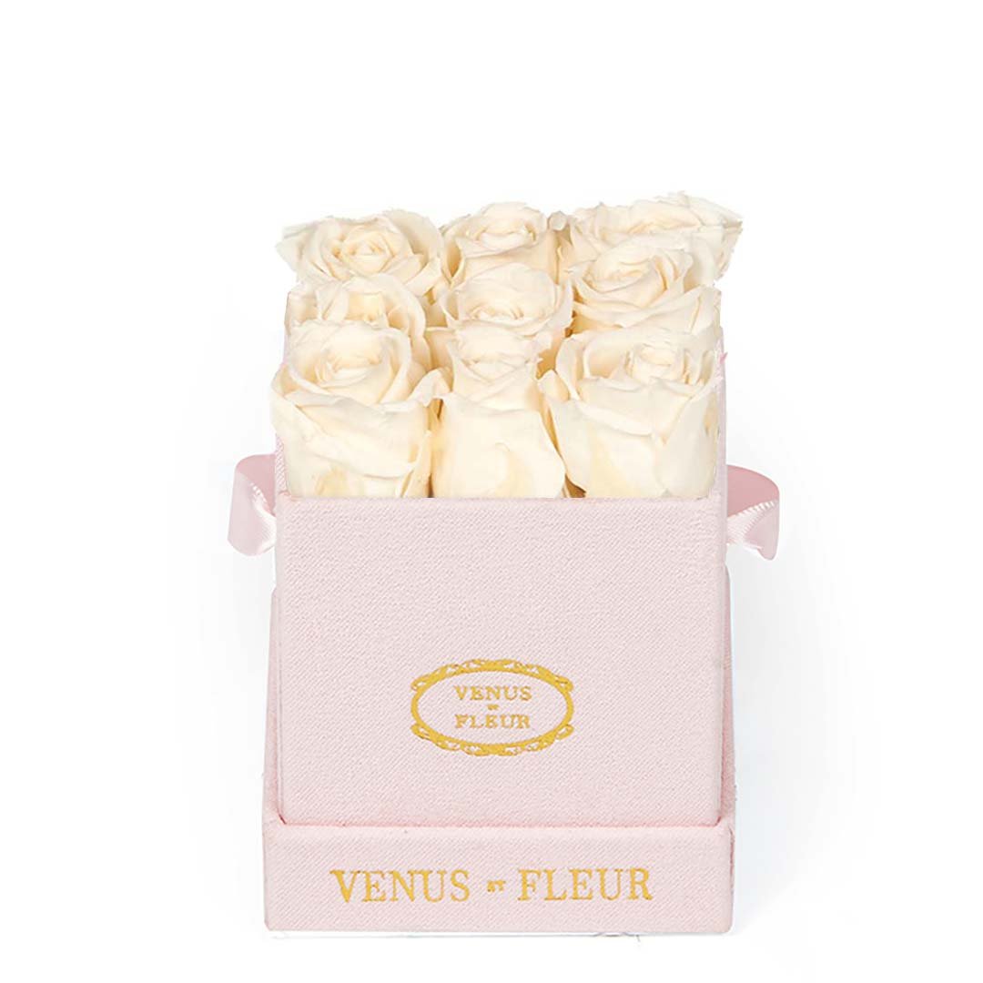 Our Le Mini™ Square classic arrangements feature 9 stunning mini roses, set in our classic Parisian-hat box inspired square boxes. The Le Minis are ideal arrangements for elevating any small space, and serve as perfect gifts.