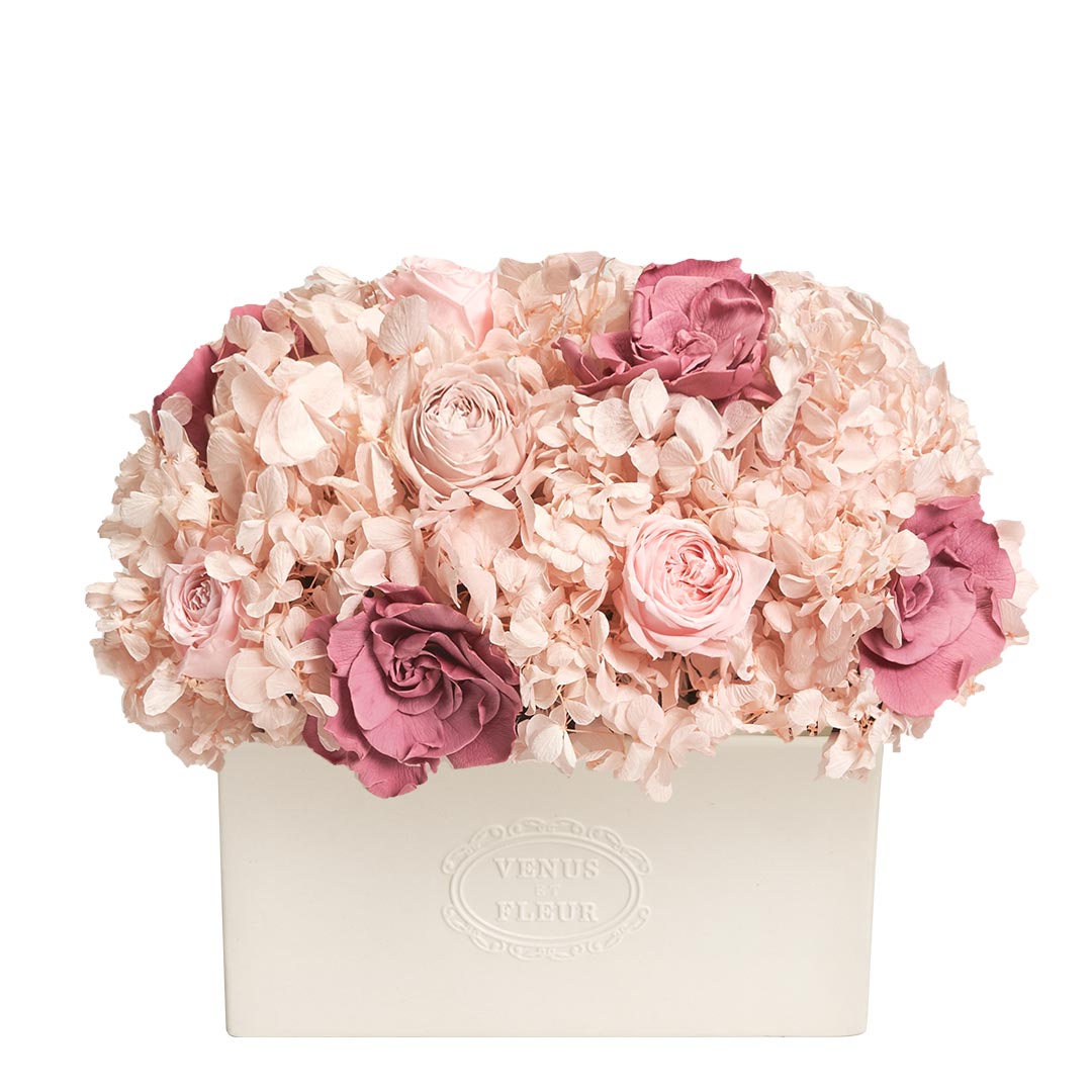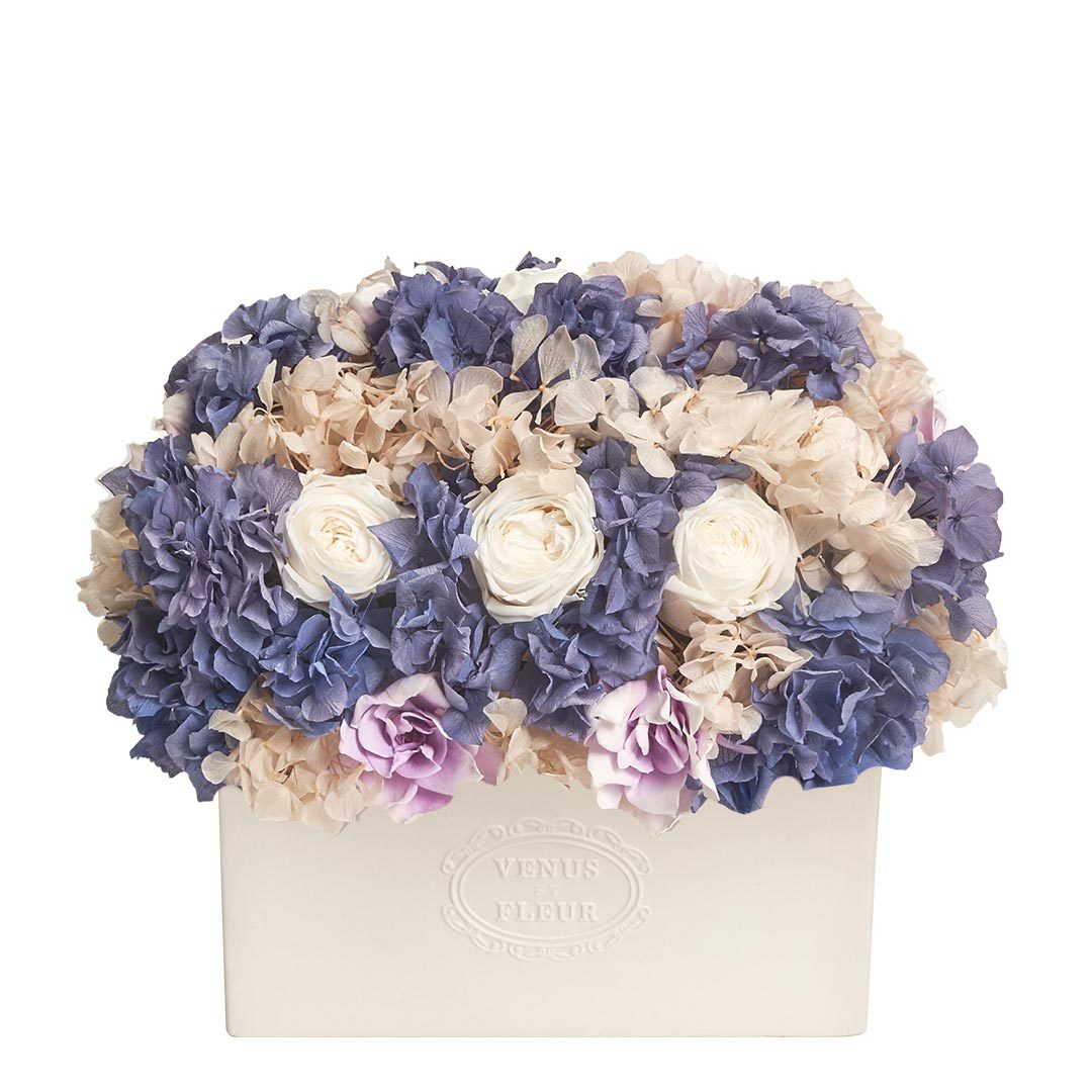 Overflowing with roses, hydrangeas and gardenias, the decadent energy of this Serene Vase will radiate through every corner of your home, allowing your life to be more filled with gratitude and positivity. Every arrangement is meticulously arranged by our skilled floral designer into our exclusive handcrafted porcelain vases.