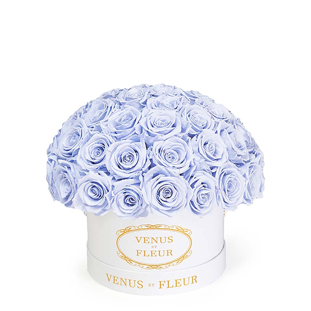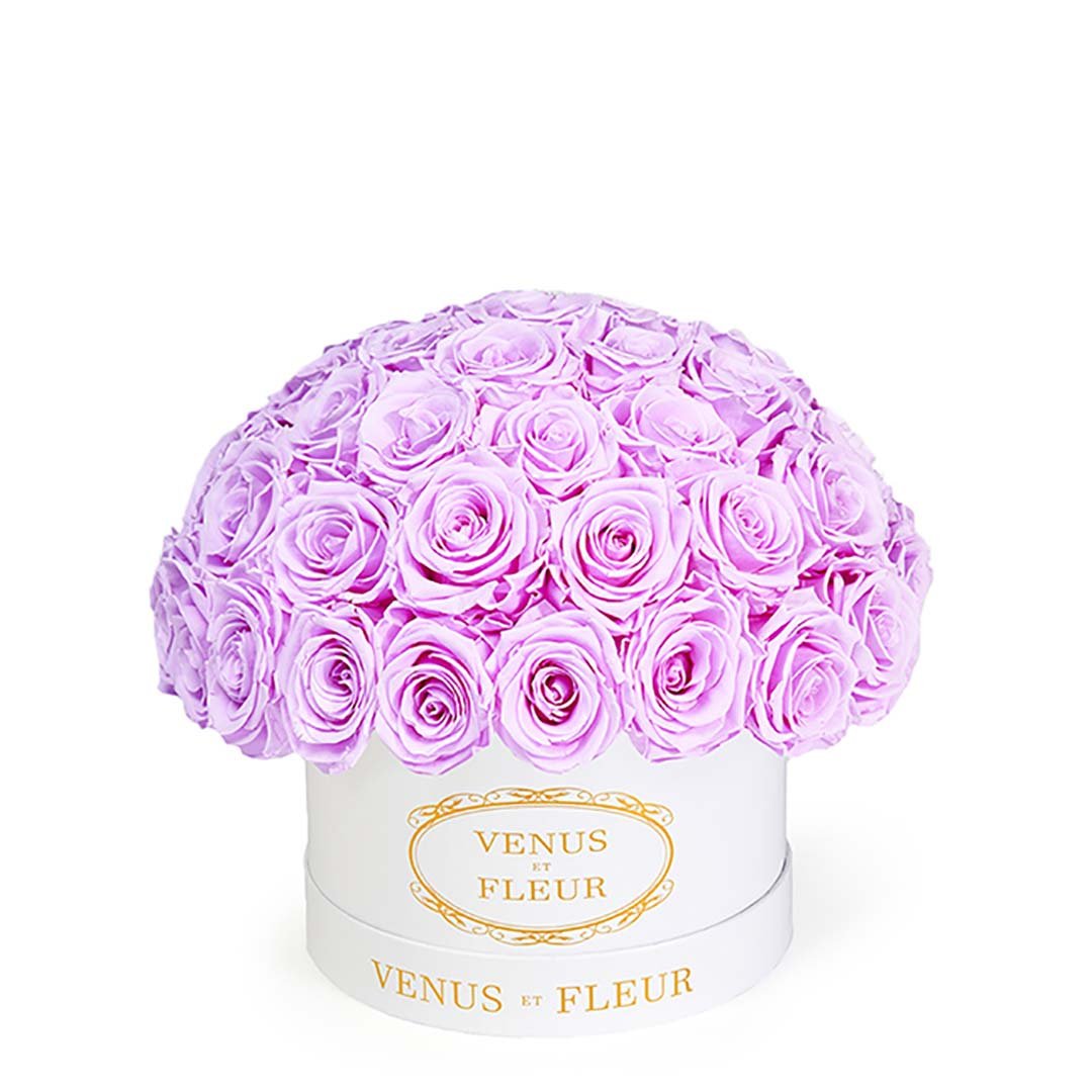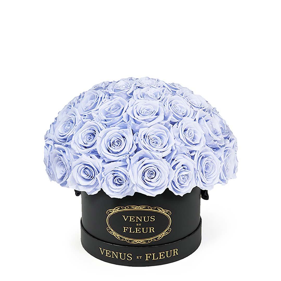Our Le Plein arrangements are classic and refined clusters of stunning Eternity Roses set in Parisian hat box-inspired boxes. Available in two different sizes, our Le Plein arrangements will make any space feel more elegant and refined. They're magnificent in their simplicity.