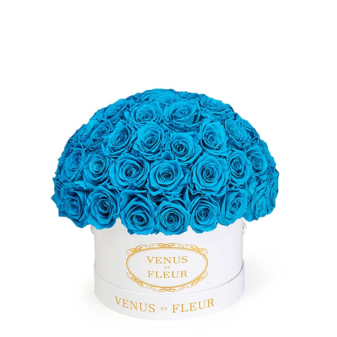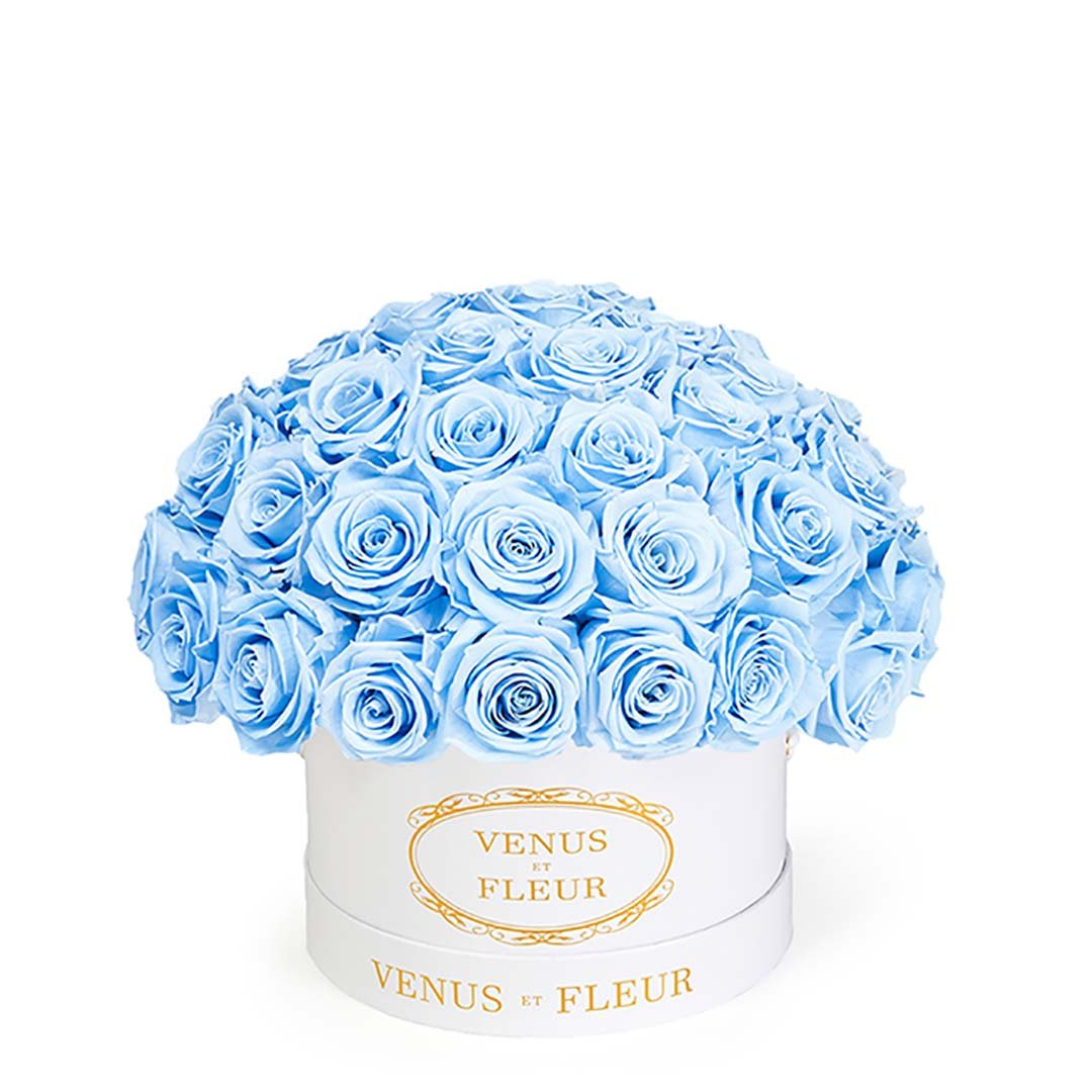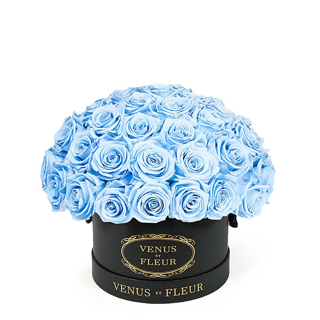 Our Le Plein arrangements are classic and refined clusters of stunning Eternity Roses set in Parisian hat box-inspired boxes. Available in two different sizes, our Le Plein arrangements will make any space feel more elegant and refined. They're magnificent in their simplicity.