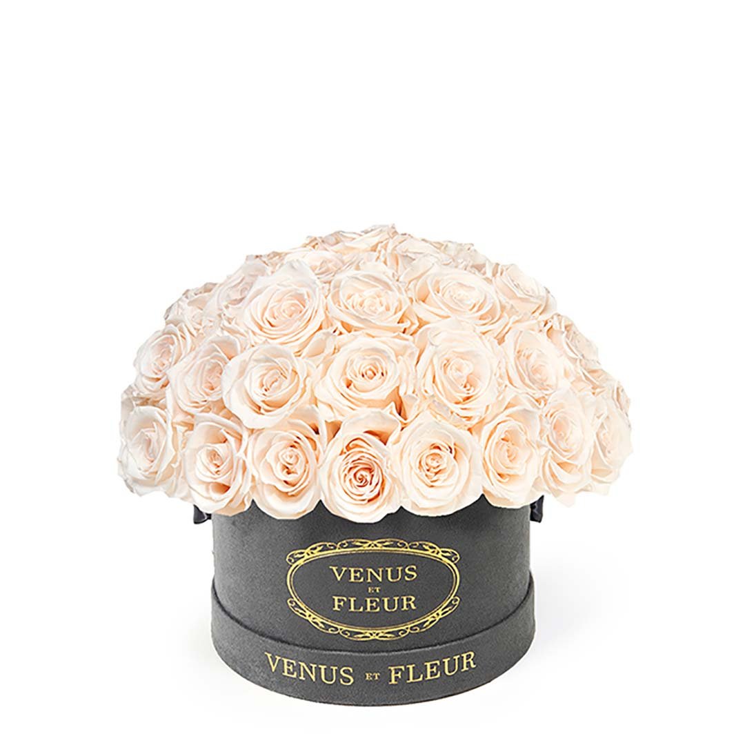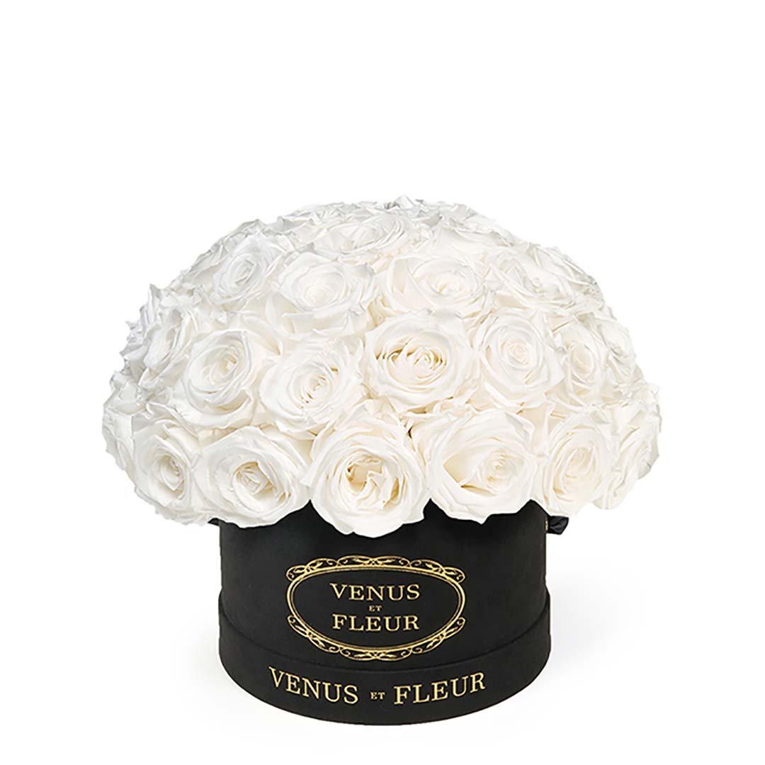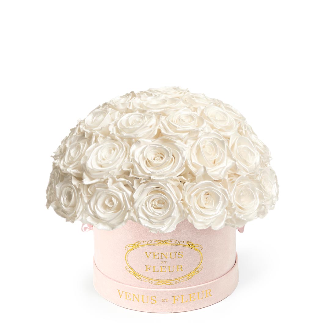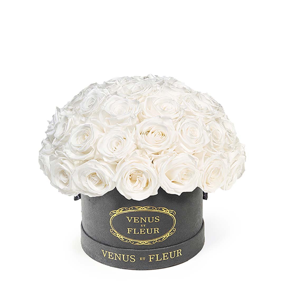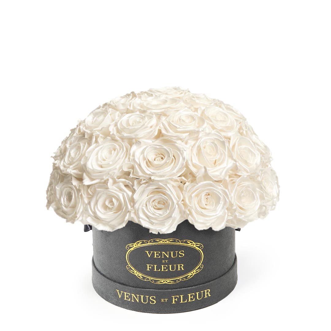 Our Le Plein arrangements are classic and refined clusters of stunning Eternity Roses set in Parisian hat box-inspired boxes. Available in two different sizes, our Le Plein arrangements will make any space feel more elegant and refined. They're magnificent in their simplicity.