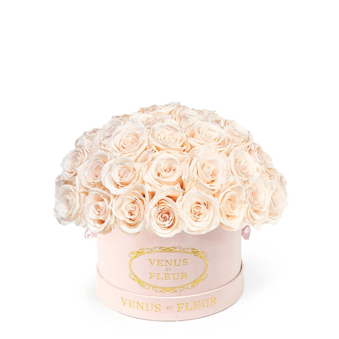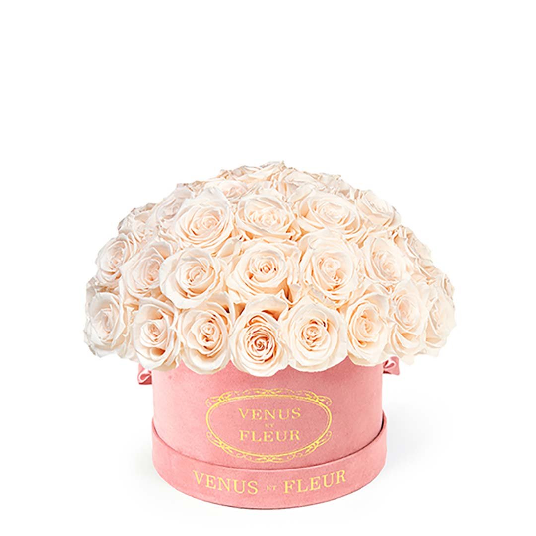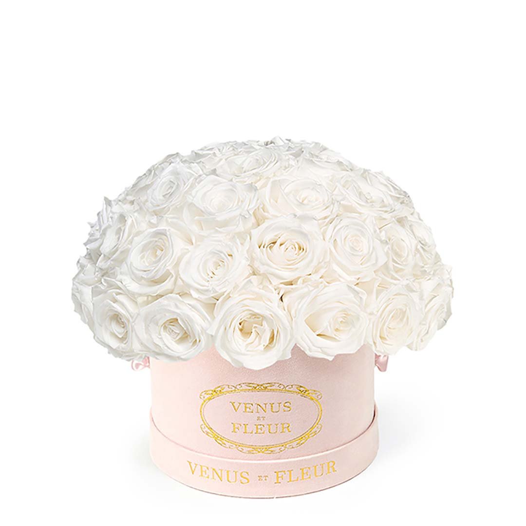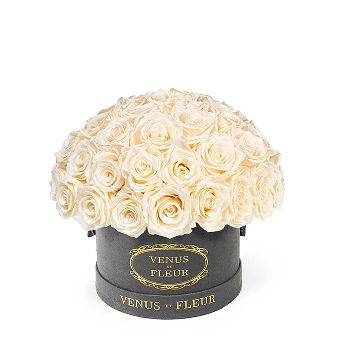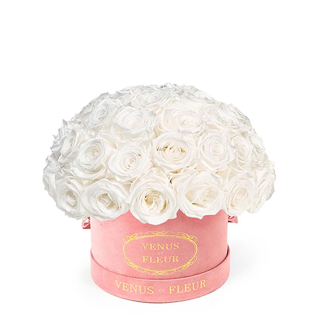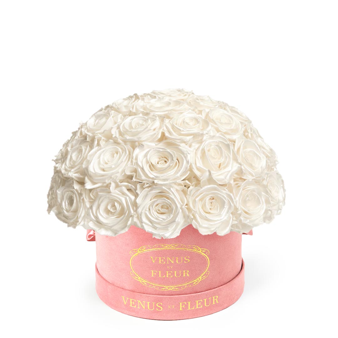 Our Le Plein arrangements are classic and refined clusters of stunning Eternity Roses set in Parisian hat box-inspired boxes. Available in two different sizes, our Le Plein arrangements will make any space feel more elegant and refined. They're magnificent in their simplicity.