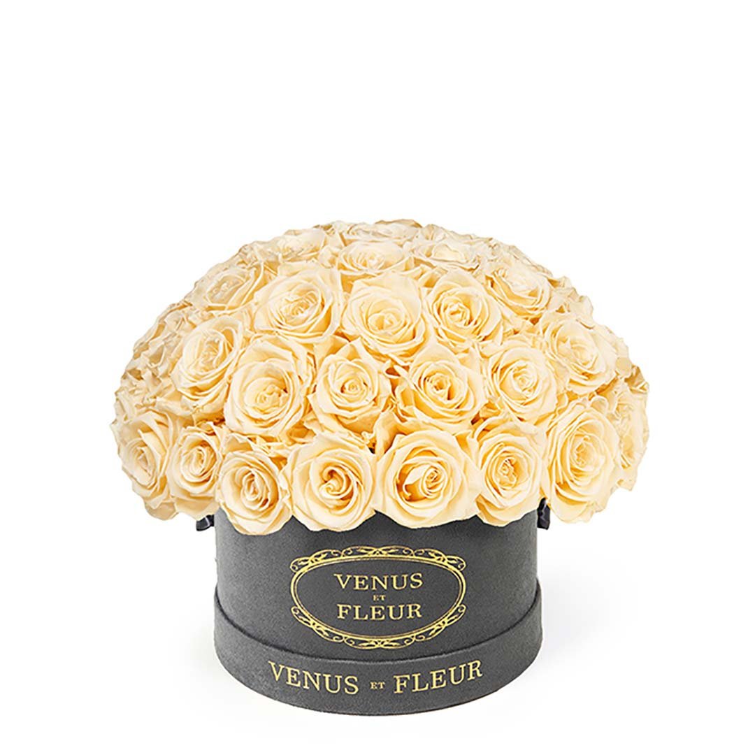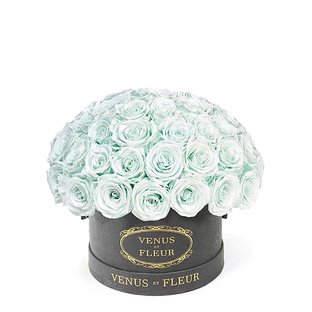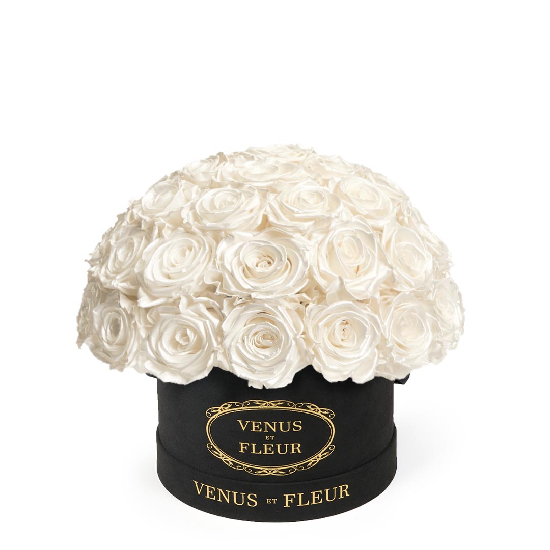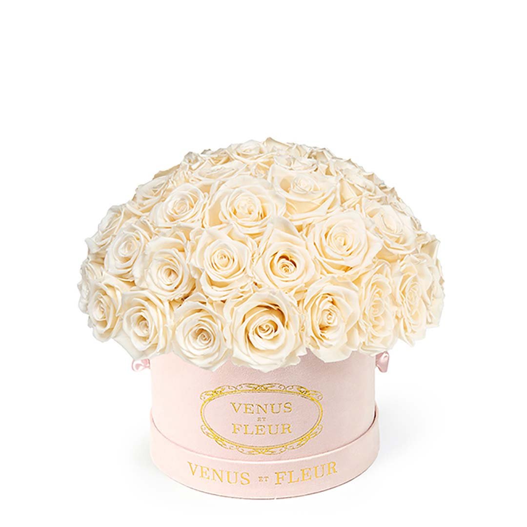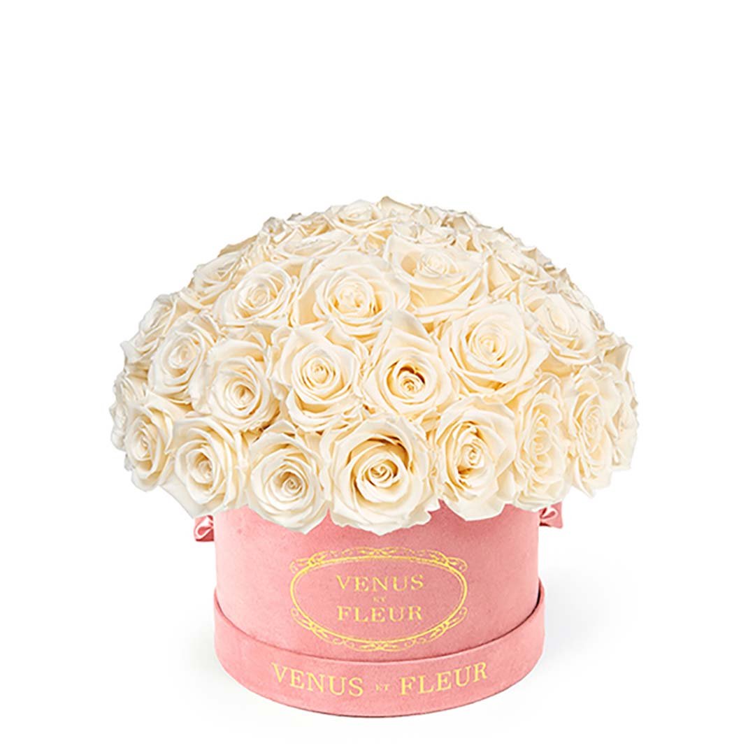 Our Le Plein arrangements are classic and refined clusters of stunning Eternity Roses set in Parisian hat box-inspired boxes. Available in two different sizes, our Le Plein arrangements will make any space feel more elegant and refined. They're magnificent in their simplicity.