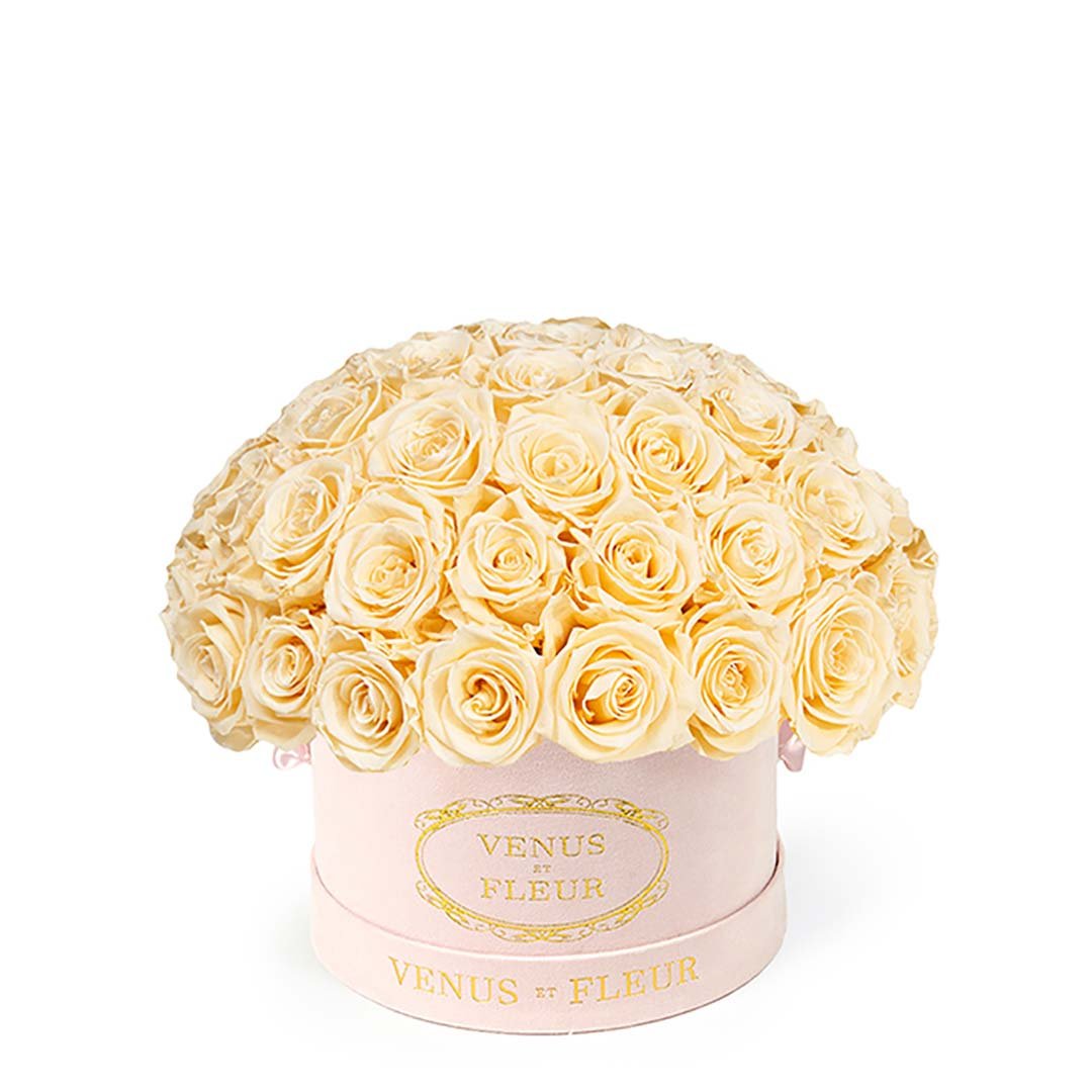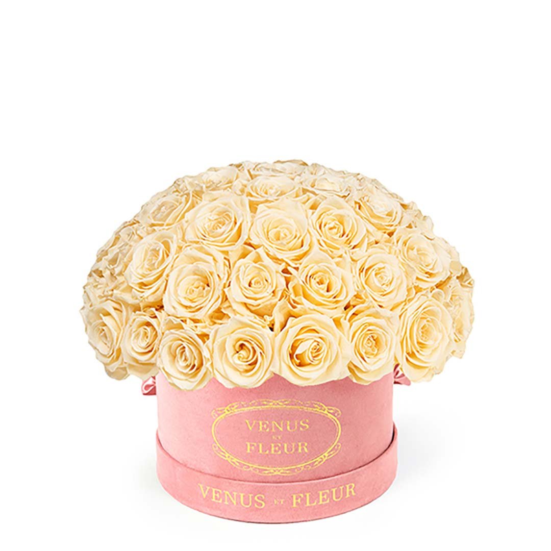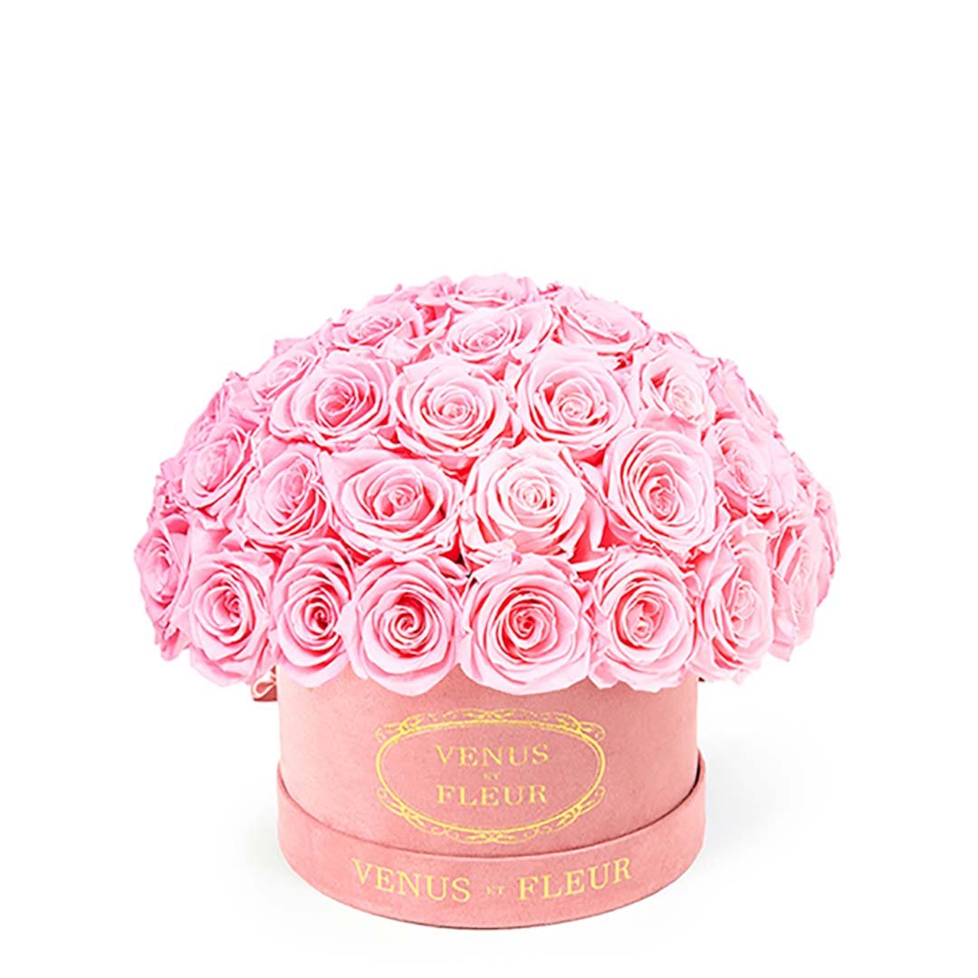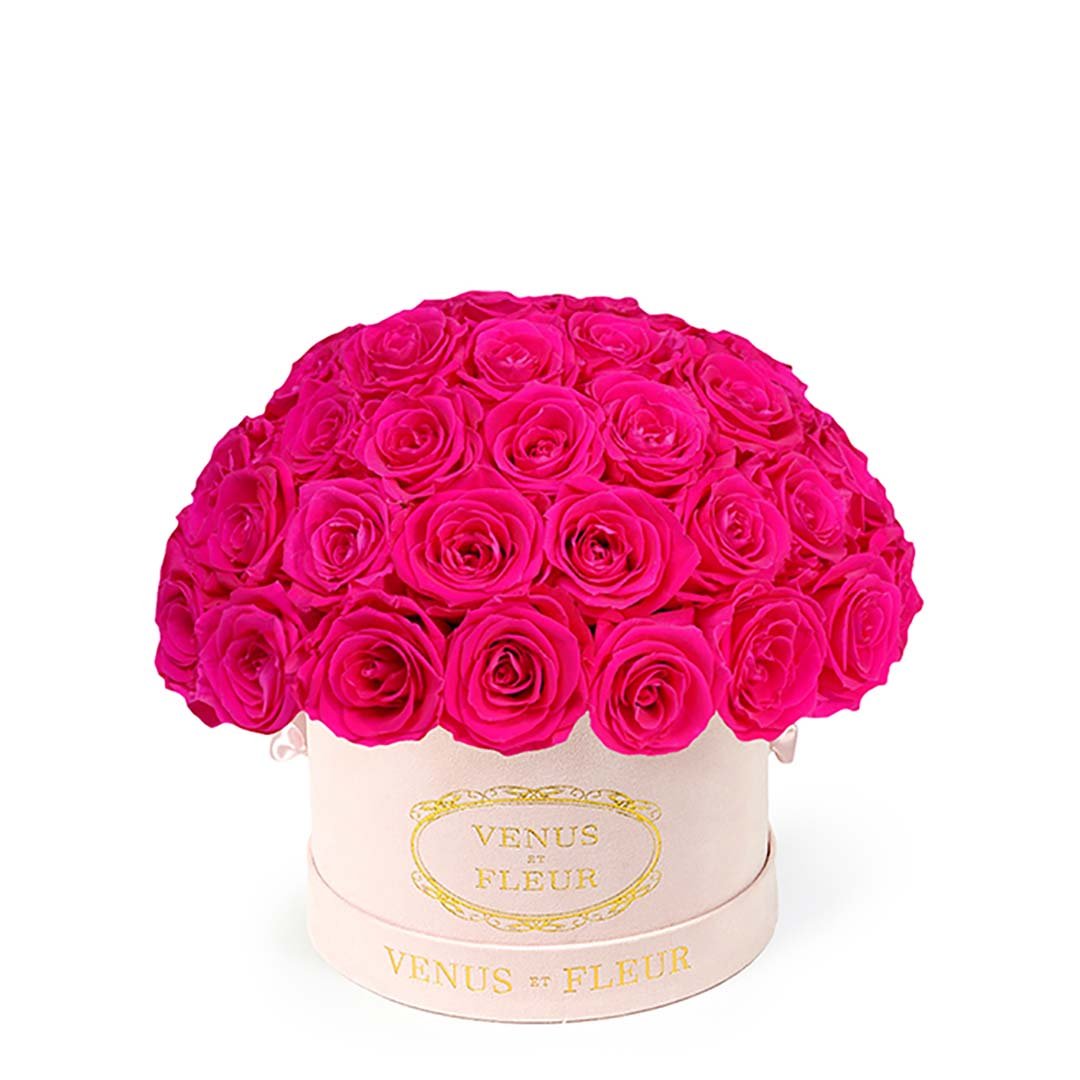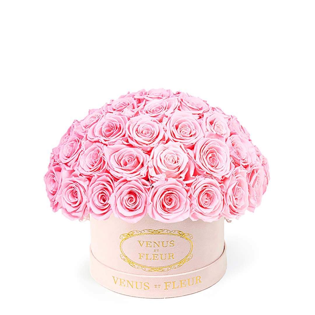 Our Le Plein arrangements are classic and refined clusters of stunning Eternity Roses set in Parisian hat box-inspired boxes. Available in two different sizes, our Le Plein arrangements will make any space feel more elegant and refined. They're magnificent in their simplicity.
