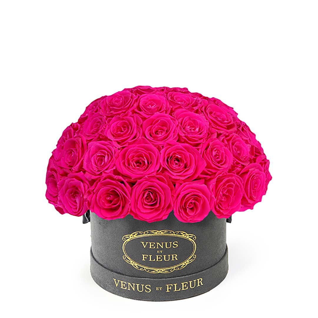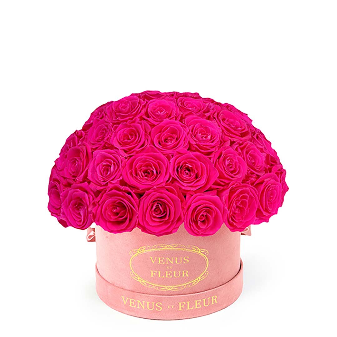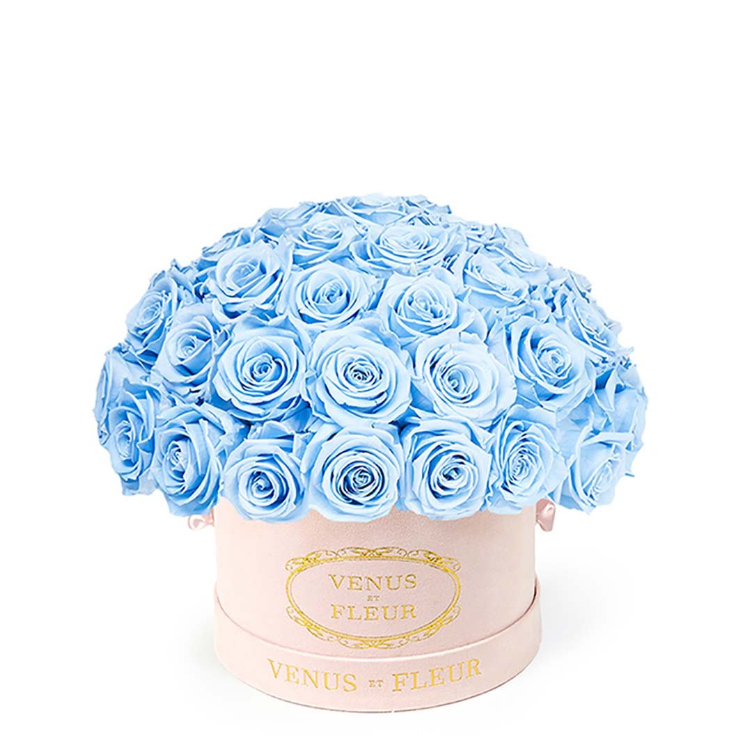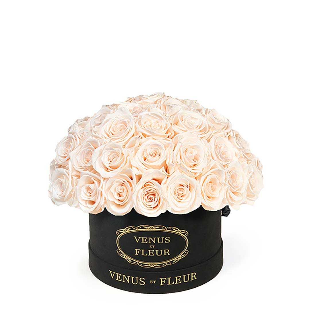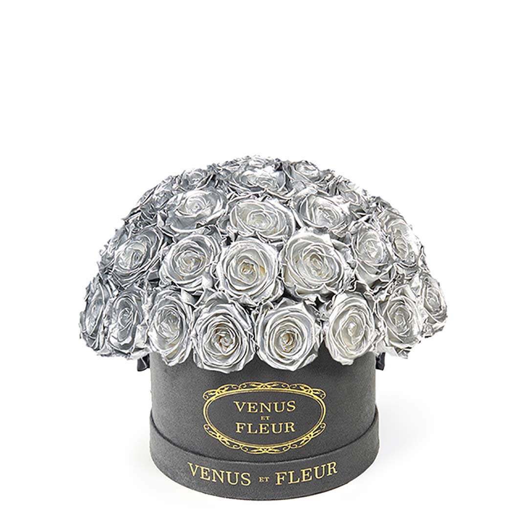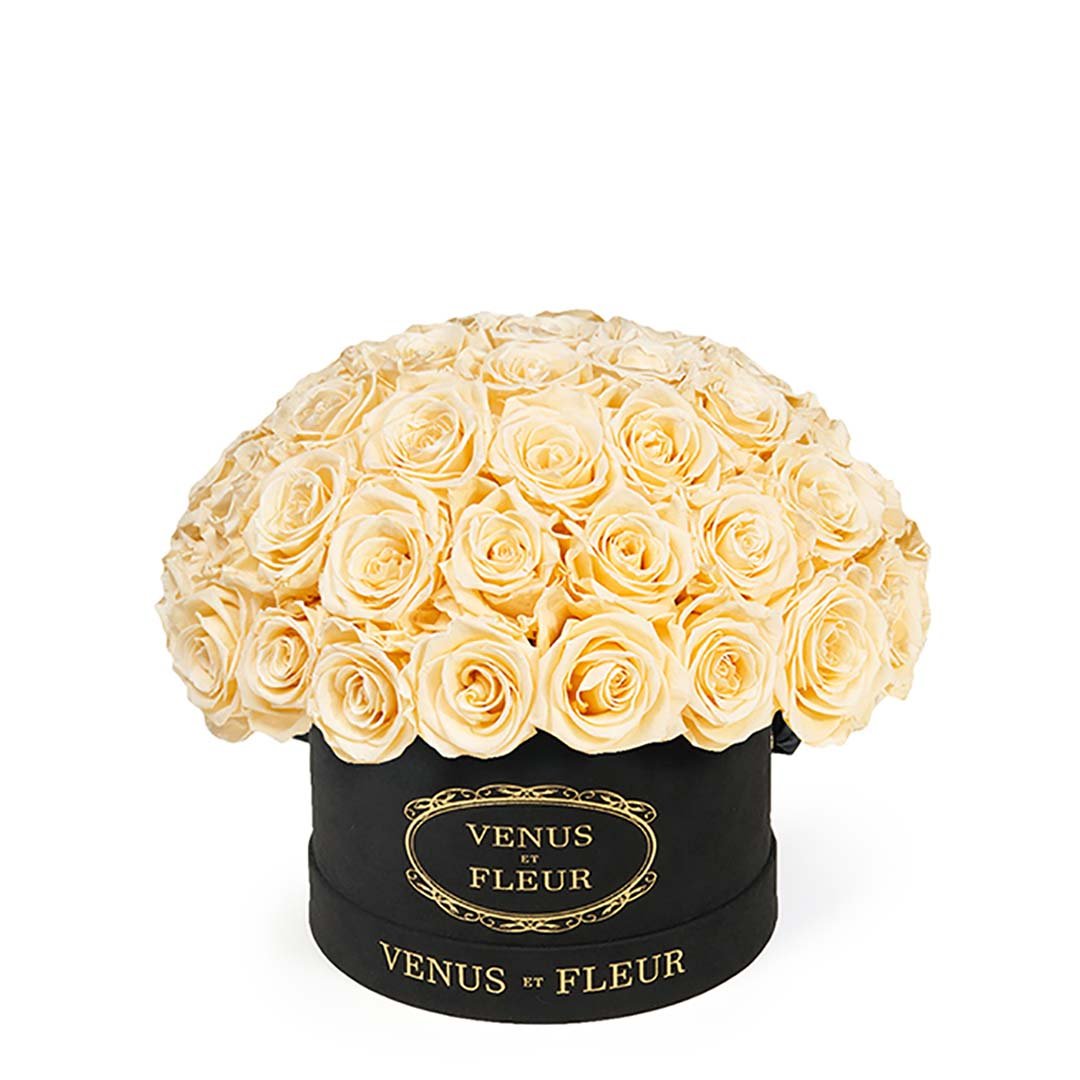 Our Le Plein arrangements are classic and refined clusters of stunning Eternity Roses set in Parisian hat box-inspired boxes. Available in two different sizes, our Le Plein arrangements will make any space feel more elegant and refined. They're magnificent in their simplicity.