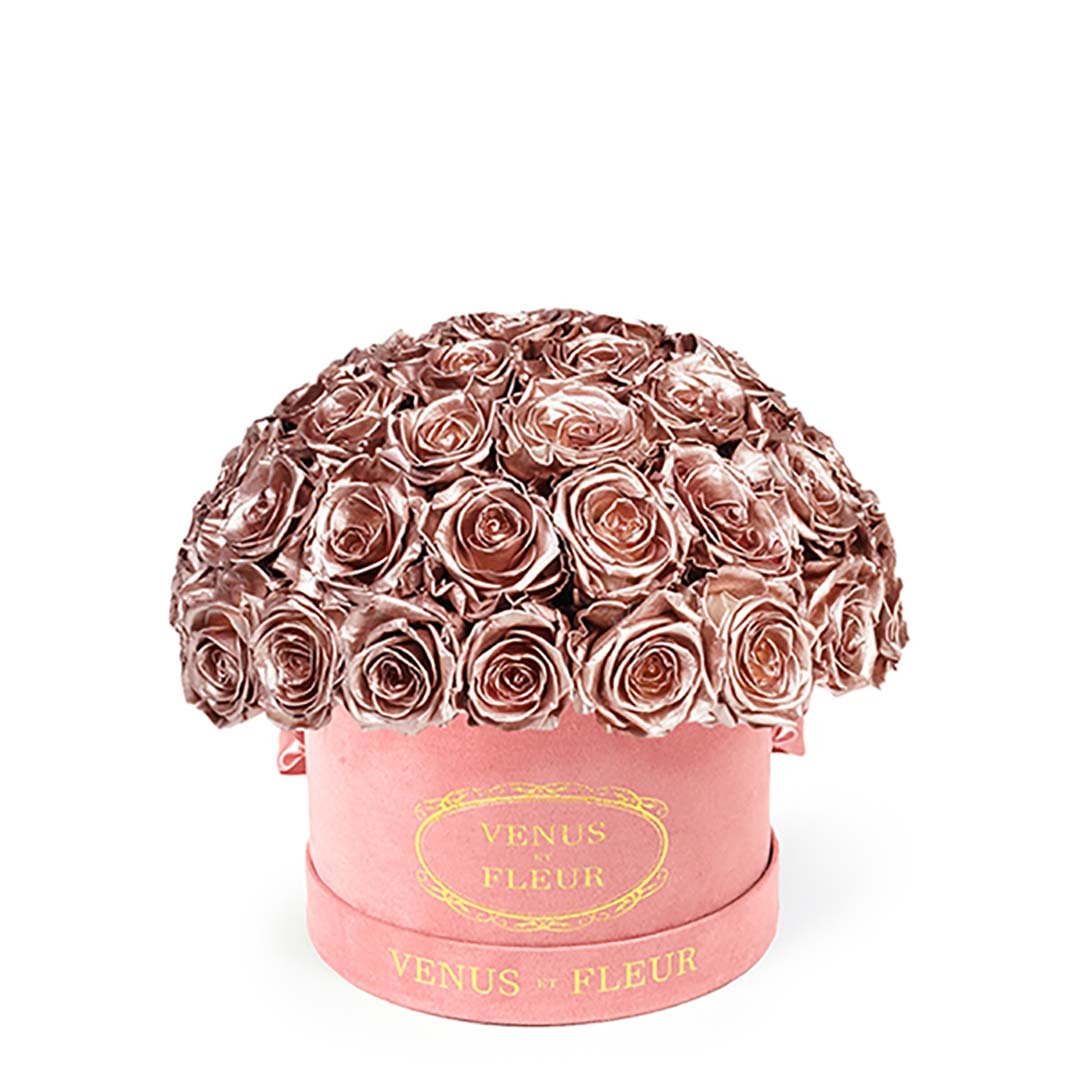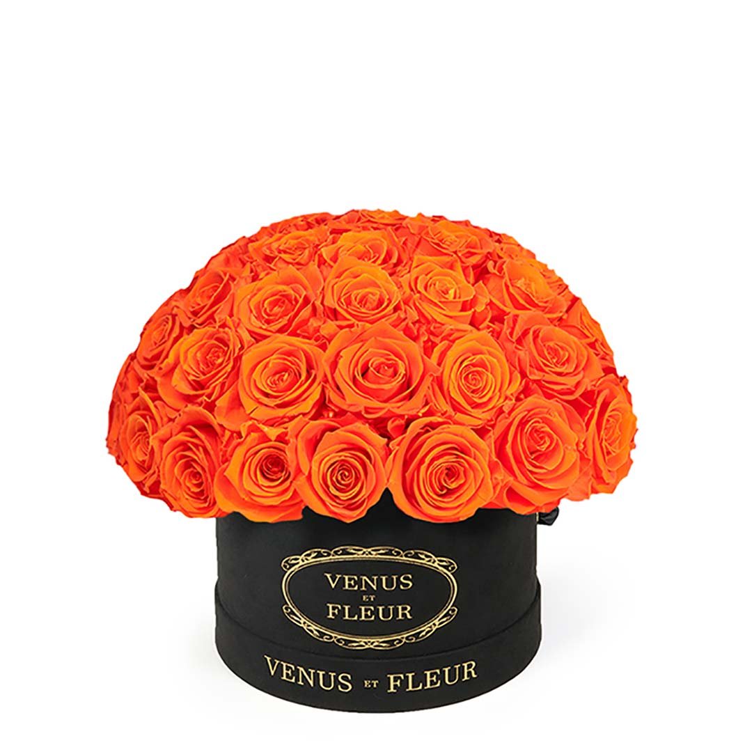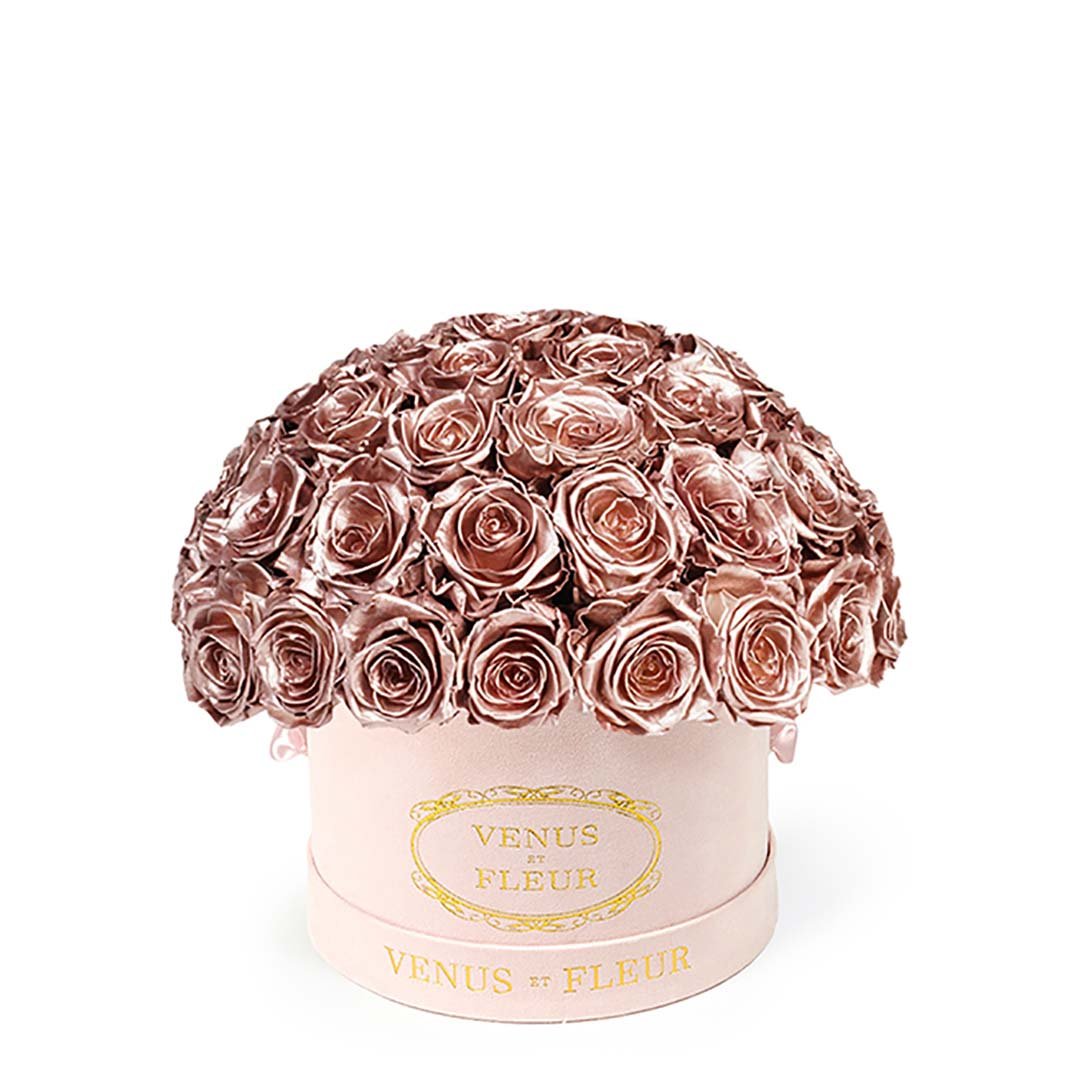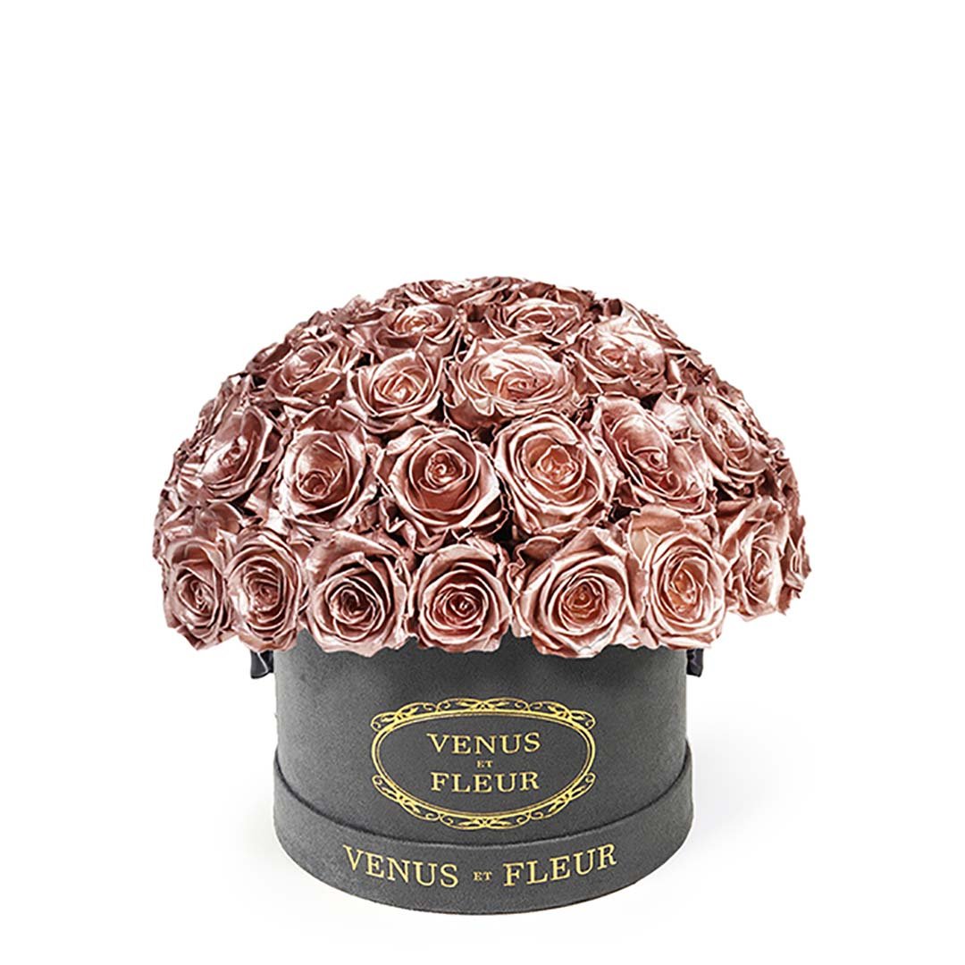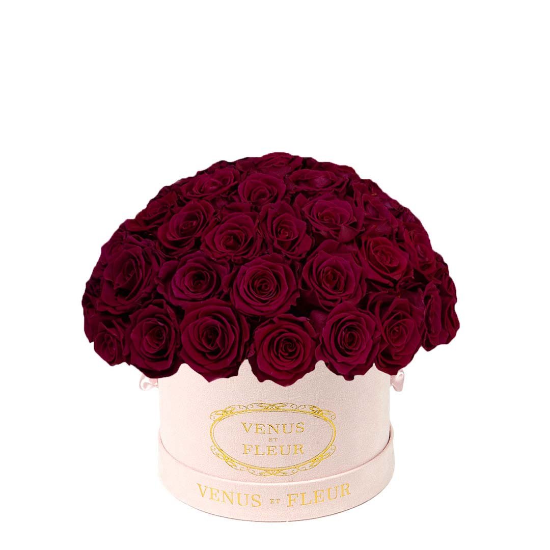 Our Le Plein arrangements are classic and refined clusters of stunning Eternity Roses set in Parisian hat box-inspired boxes. Available in two different sizes, our Le Plein arrangements will make any space feel more elegant and refined. They're magnificent in their simplicity.