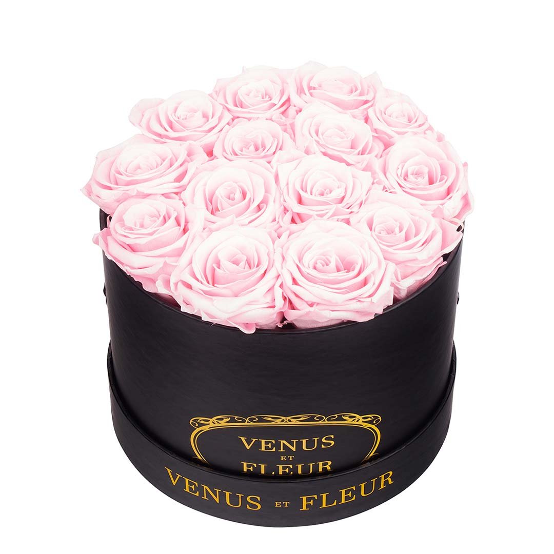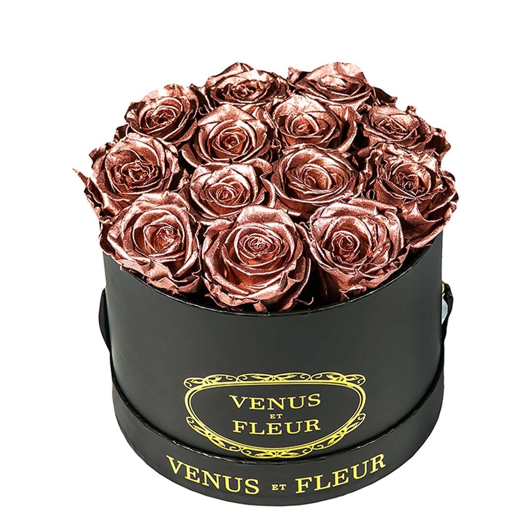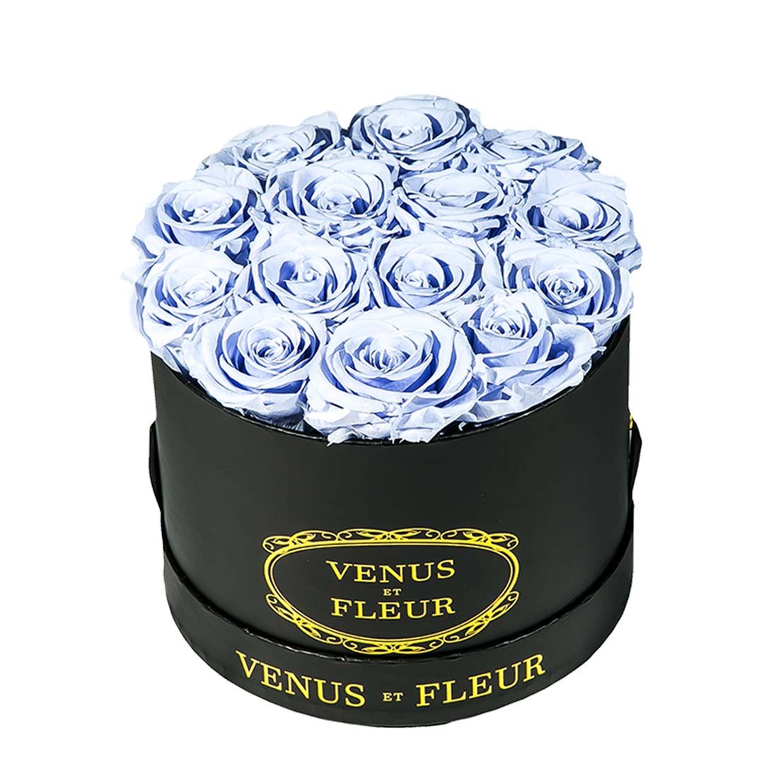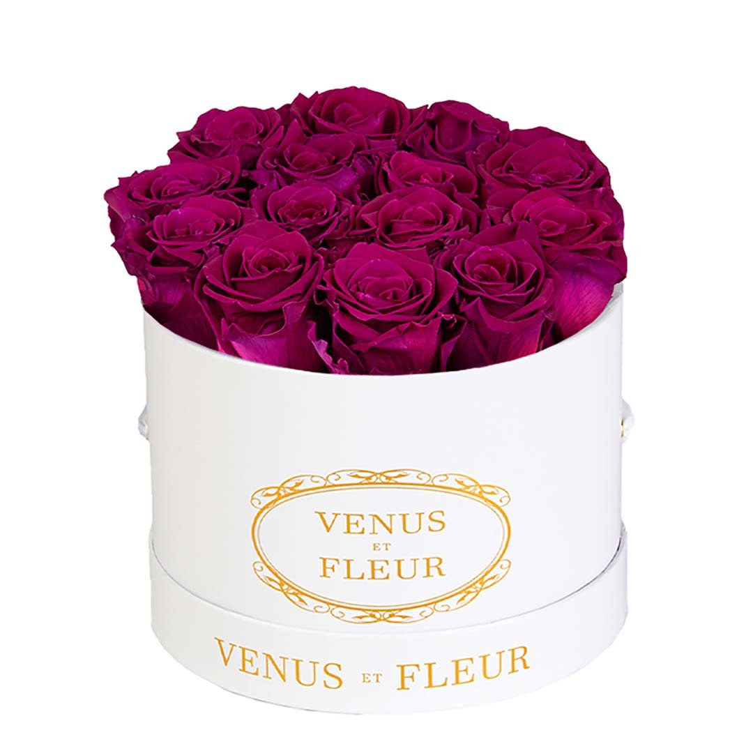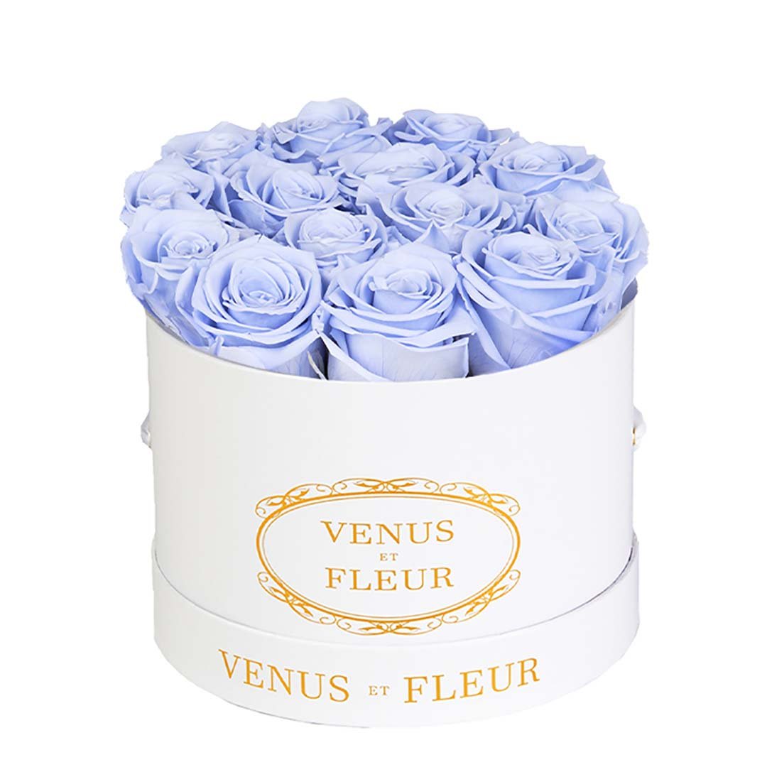 Our timeless Small Round arrangements are comprised of 13-15 exquisite Eternity Roses set in Parisian hat box-inspired vases. The classic arrangements will elevate any space with grace and simplicity.