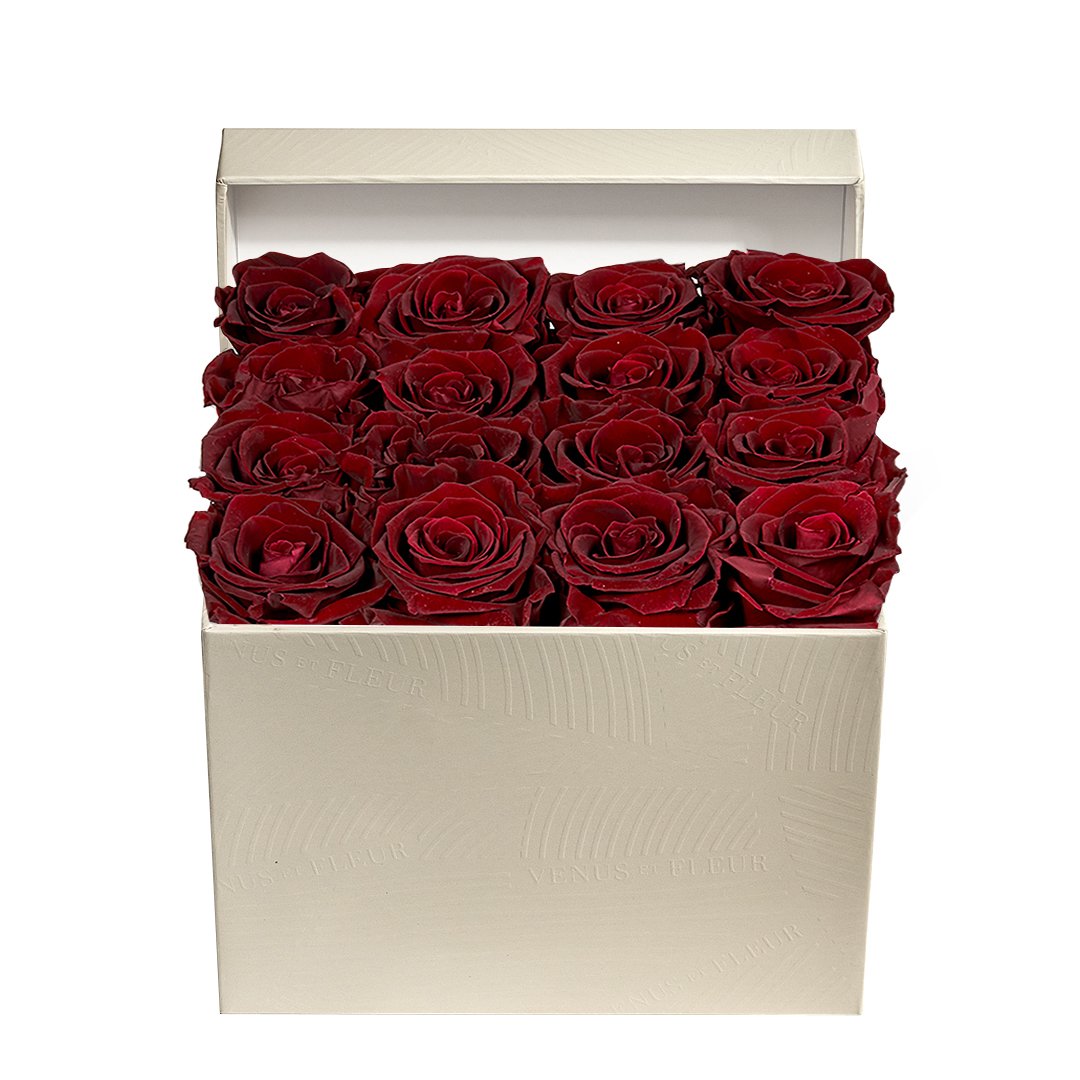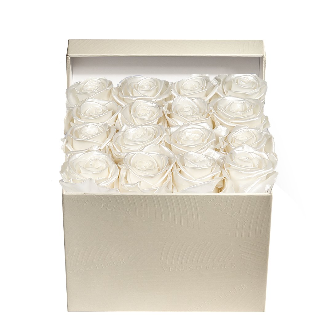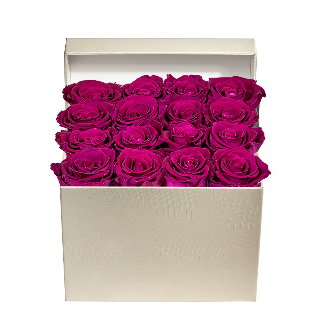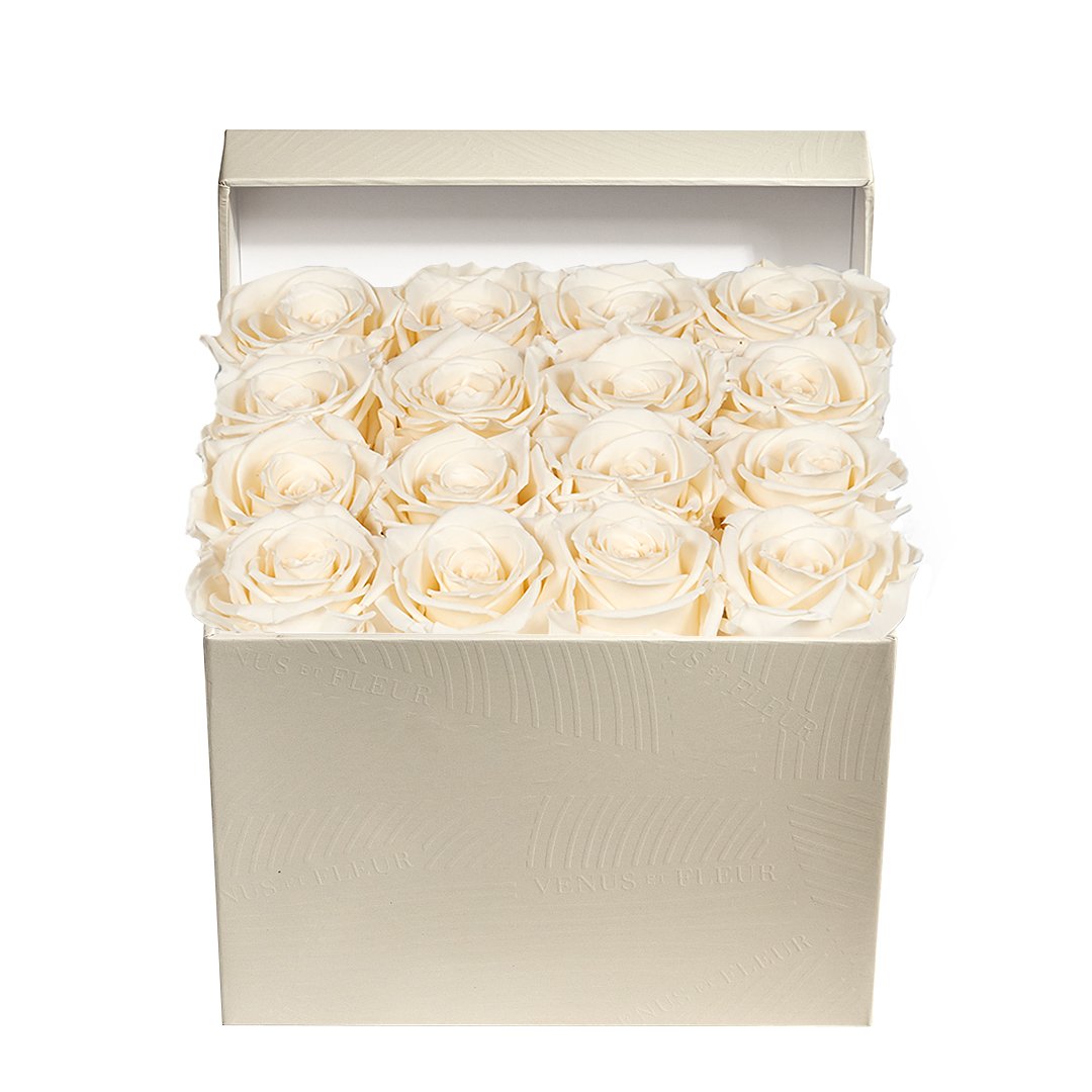 Our timeless Small Square arrangements are comprised of 16 exquisite Eternity Roses set in elegant square vases. The classic arrangements will elevate any space with their classic design