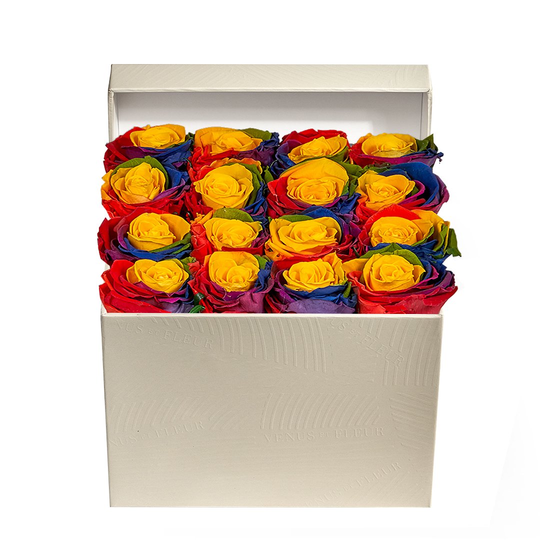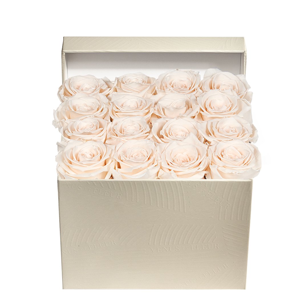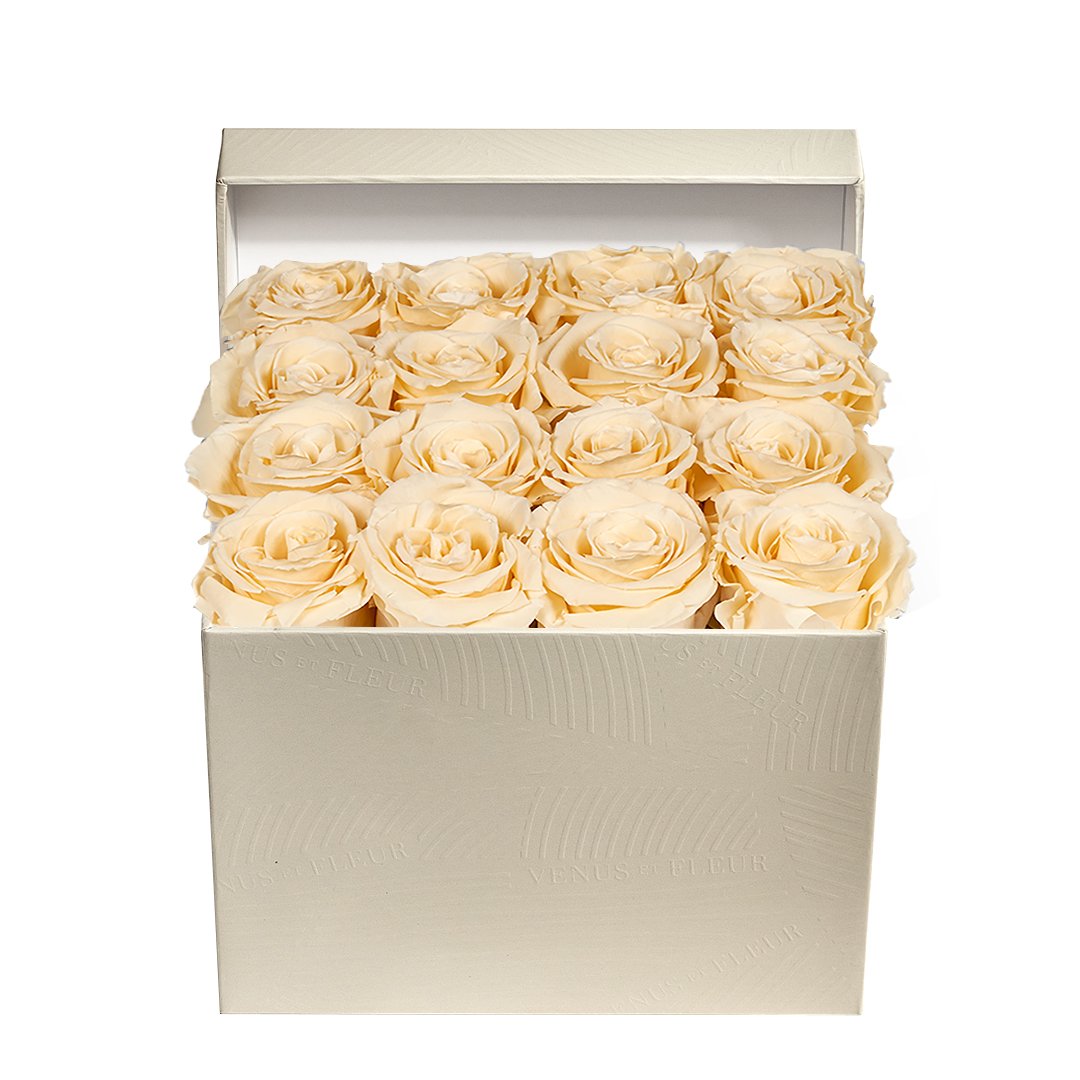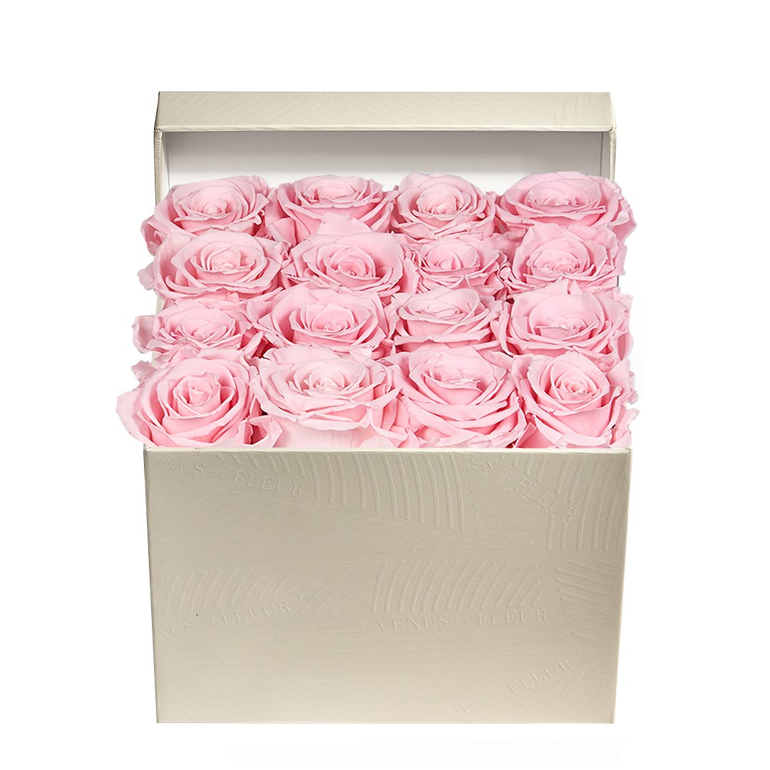 Our timeless Small Square arrangements are comprised of 16 exquisite Eternity Roses set in elegant square vases. The classic arrangements will elevate any space with their classic design